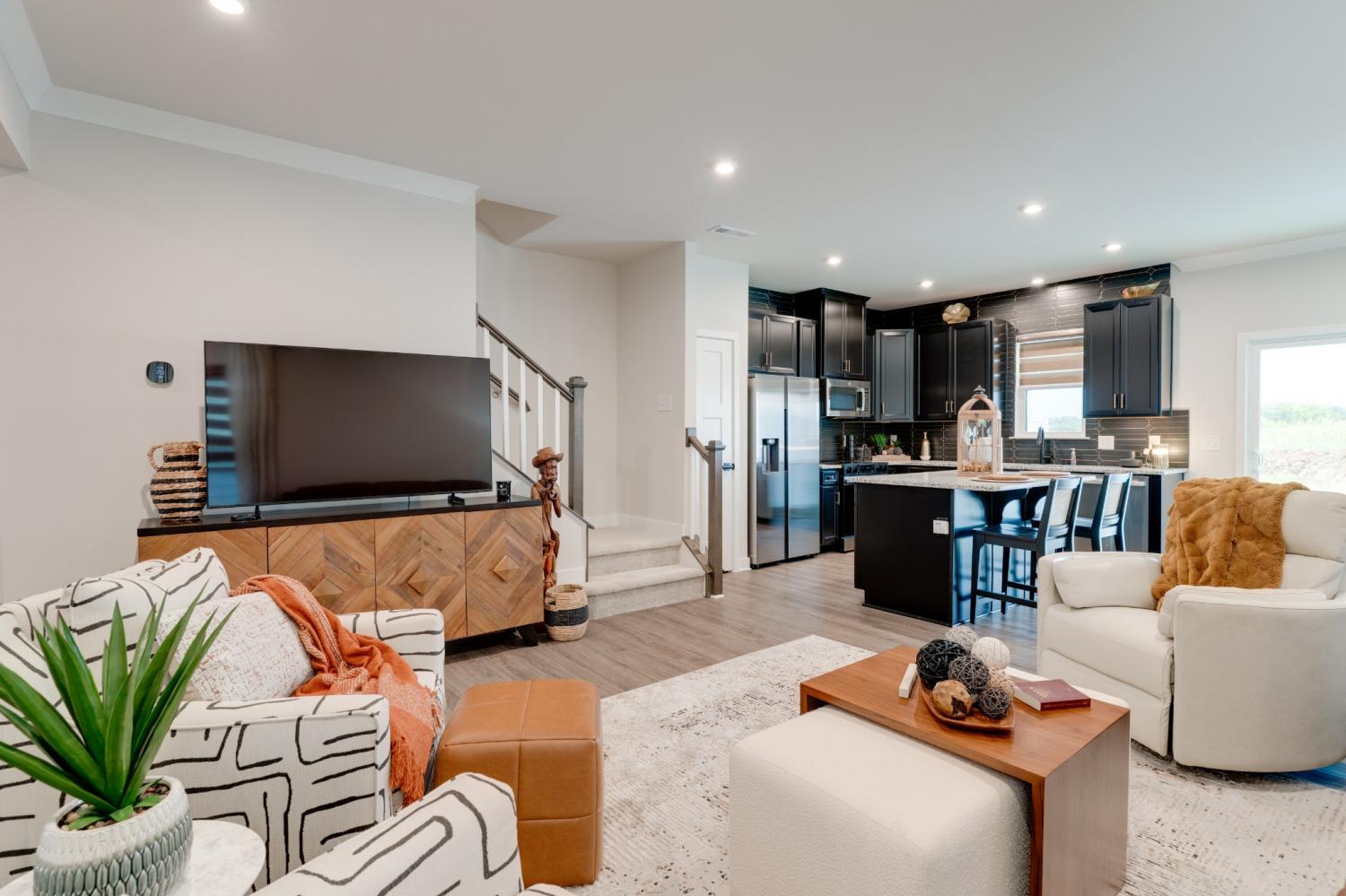 Seller is offering $3,000 TOWARDS BUYER'S CLOSING COSTS AND/OR HOA DUES!! Step into modern elegance and comfort in this better-than-new END UNIT townhome with designer finishes you will not find elsewhere in this price range. Sleek black, gold, leather and wood finishes make this a showplace you will want to call home -- or possibly a spectacular second home. The Nexus community amenities are also second to none, and the HOA includes your internet service. Take a look today. You're going to like what you see.UPGRADES TO 1089 RIVERBROOK BASE PACKAGE INCLUDE: End Unit ($12,000 upgrade that gives many more windows/daylight) Garage walls and floor - finish & paint Expanded patio LVP flooring throughout main level (no carpet on main level) Black hardware throughout Black faucets & bathroom hardware throughout Custom zebra blinds throughout Drapery hardware and curtains Crown molding on main level Special order black and gold tile in kitchen to ceiling Replace appliances immediately after closing with upgraded appliances. Additional LED lights Upgraded light fixtures Guest Bath Upgrades - mirror, wallpaper