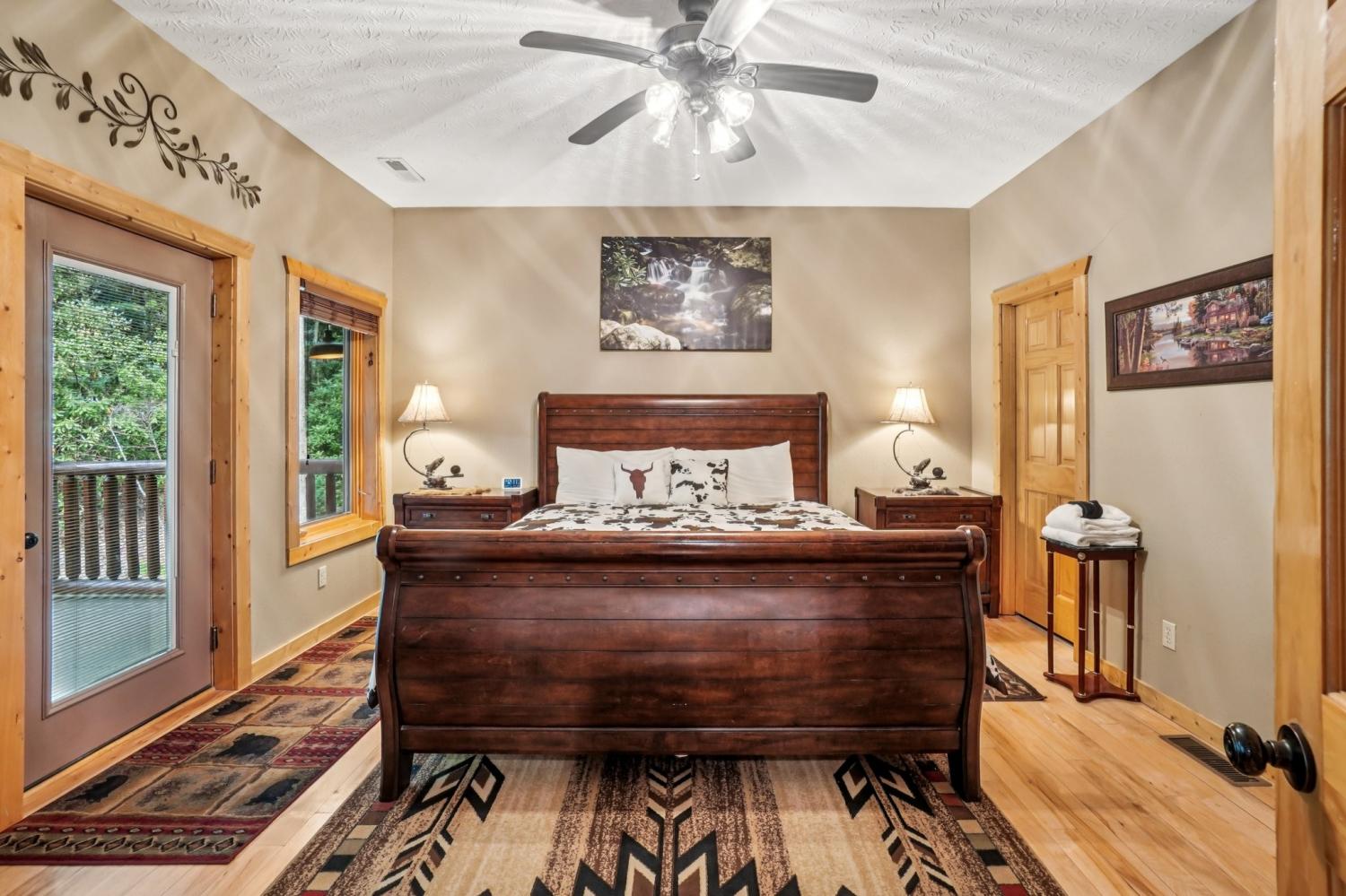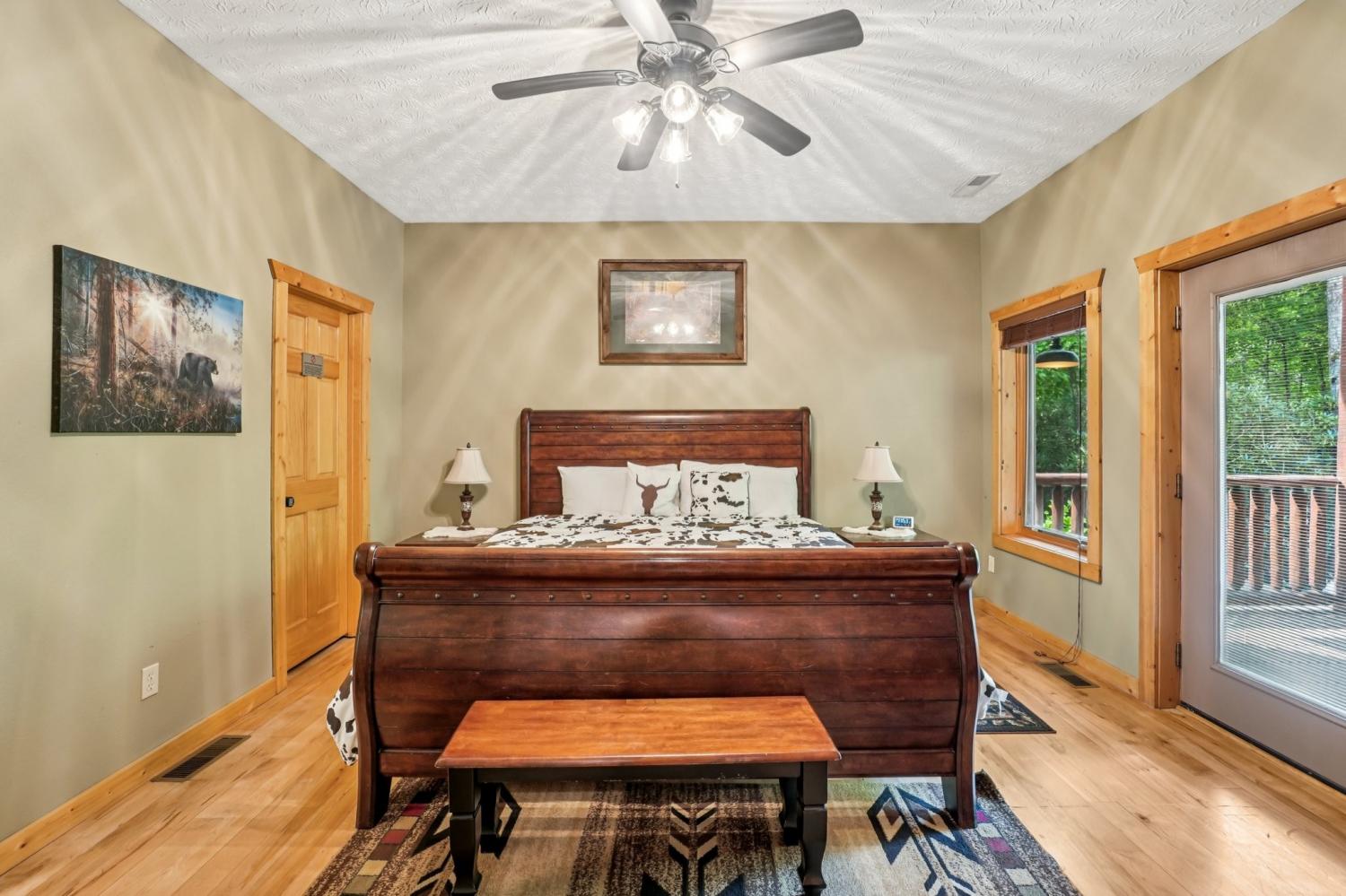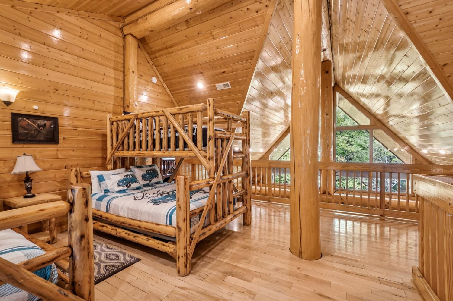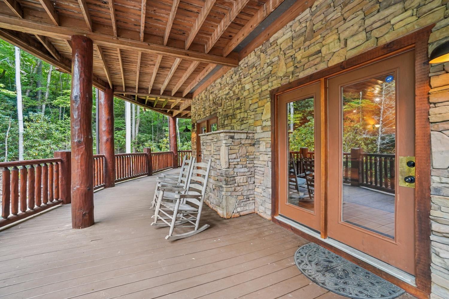 Luxury meets mountain charm in this stunning 4,500+ sq ft log cabin retreat, nestled on over 2 private acres in highly sought-after Pittman Center. Crafted from hand-peeled lodge pole pine logs, this 5-bedroom, 6-bathroom estate offers a perfect blend of rustic elegance and modern comfort, along with impressive rental income. The property generates impressive rental income. ****New roof and other updates**** The main level features soaring vaulted ceilings, a dramatic stacked stone fireplace, and massive picture windows that frame peaceful forest views and a serene mountain stream. A chef’s kitchen includes custom hickory cabinets, high-end appliances, and a 14-foot log dining table. The spacious great room with four oversized sofas is ideal for entertaining. The primary suite offers a spa-like en-suite bath and walk-in closet. Step outside to the wraparound deck with outdoor dining, a hot tub, and wooded views. Upstairs you'll find two large en-suite bedrooms and a flexible loft area. The lower level is made for fun, complete with a large game room, second stone fireplace, pool table, Foosball, arcade games, and additional living space. Two more en-suite bedrooms, a bunk room with log beds, and four portable memory foam beds comfortably accommodate large groups. Each lower-level bedroom opens to its own private deck. Enjoy outdoor living with multiple decks, a fire pit, picnic areas, walking bridge, charcoal grills, and a streamside sitting area. An in-ground basketball goal and private gated driveway add even more appeal. Additional highlights include a whole-house security system, high-speed internet, city-maintained roads, and garbage pickup. There is no HOA. Located just minutes to downtown Gatlinburg, the Smokies, and Bent Creek Golf Course. Turnkey and income-producing, this lodge offers a rare opportunity for both a private retreat and a proven investment.
