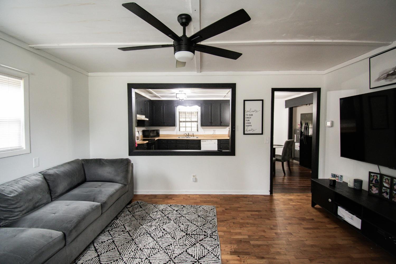 Move in ready. This 3 bedroom 1 bath home has fresh paint, large open kitchen and a fenced in back yard. Detached garage/workshop. Covered side and back porch.