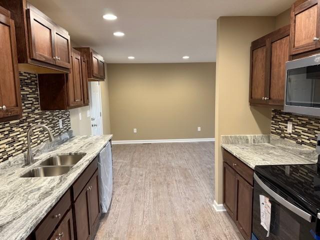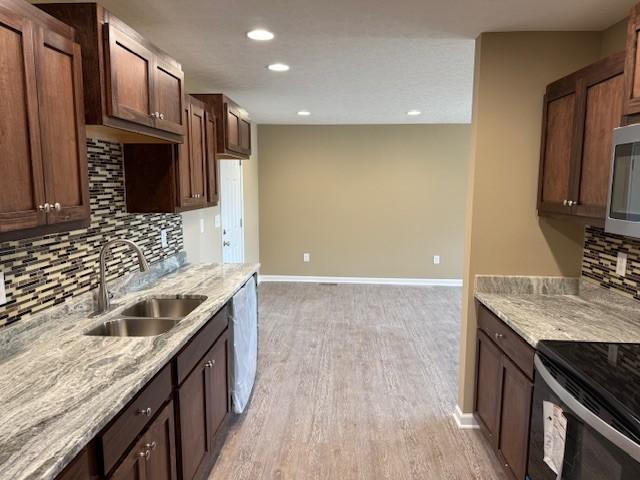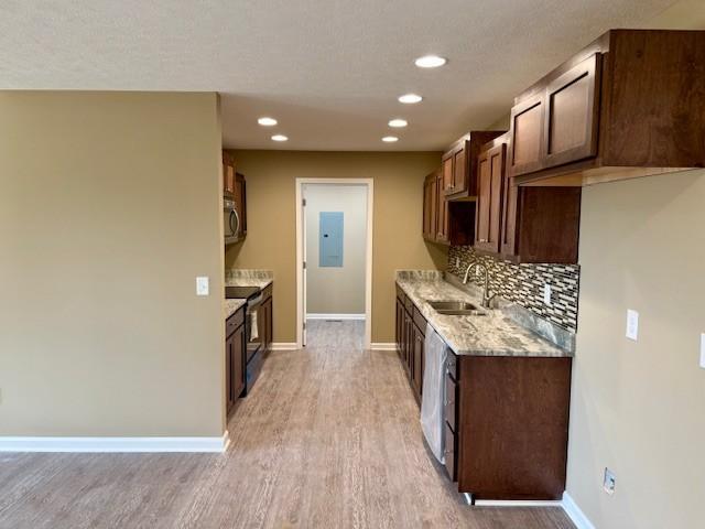 This beautifully crafted new construction home offers 3 spacious bedrooms and 2 full bathrooms, including a private primary suite with a trey ceiling, luxurious full bath, and closet space. The living room boasts a vaulted ceiling, creating an open, airy atmosphere perfect for relaxing or entertaining. You'll love the custom cabinetry and sleek stainless steel Whirlpool appliances (refrigerator not included)in the kitchen, which pairs beautifully with luxury vinyl plank (LVP) flooring that flows throughout the entire home—both stylish and durable. Step outside to enjoy a concrete patio ideal for grilling or relaxing, and a spacious yard that offers endless possibilities. The two-car garage and concrete driveway provide convenience and curb appeal.