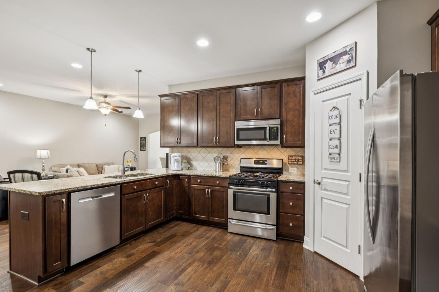Discover why this villa stands out among the rest in The Retreat at Fairvue. The sought-after Waverleigh floor plan delivers true single-level living and a seamless open design that’s both functional and inviting. Enjoy hardwood floors throughout—no carpet anywhere—plus a sunroom that fills the home with natural light and opens to your private courtyard for relaxing mornings or quiet evenings. Every detail has been thoughtfully maintained, from the 1-year-old roof and stainless-interior dishwasher to new blinds, updated bath fixtures, and appliances that all remain. The kitchen’s smart layout offers pull-out drawers, a lazy Susan, and abundant cabinet space. The oversized utility room and built-in garage shelving add convenience rarely found at this price point. Enjoy a low-maintenance lifestyle inside a community surrounded by walking trails, nearby parks, and everyday conveniences—restaurants, coffee shops, golf and shopping just minutes away. This is the perfect blend of comfort, value, and easy living in one of Gallatin’s most desirable communities. Attractive buyer incentive available! Ask about special savings on closing costs when using the seller’s preferred lender.