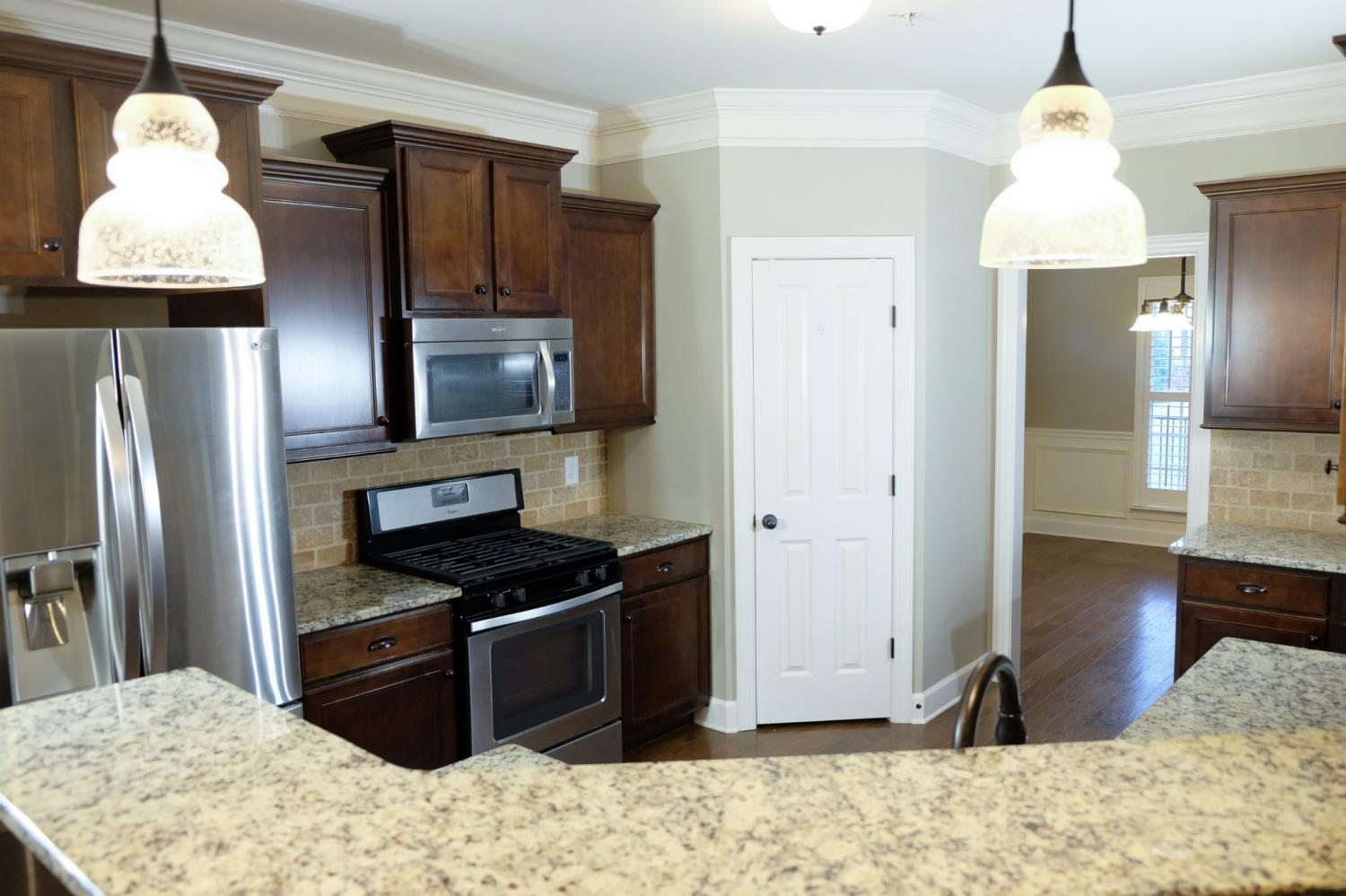 Beautiful 4 bedroom, 3.5 bath home in Burkitt Place. Very open, spacious and livable floor plan with master down, formal dining, breakfast area, large great room with fireplace, and huge rec room upstairs. Large covered deck overlooking wooded common area in back. 3 car garage, covered front porch, mud room, and separate laundry room. New carpet in bedrooms and rec room. No pets allowed.