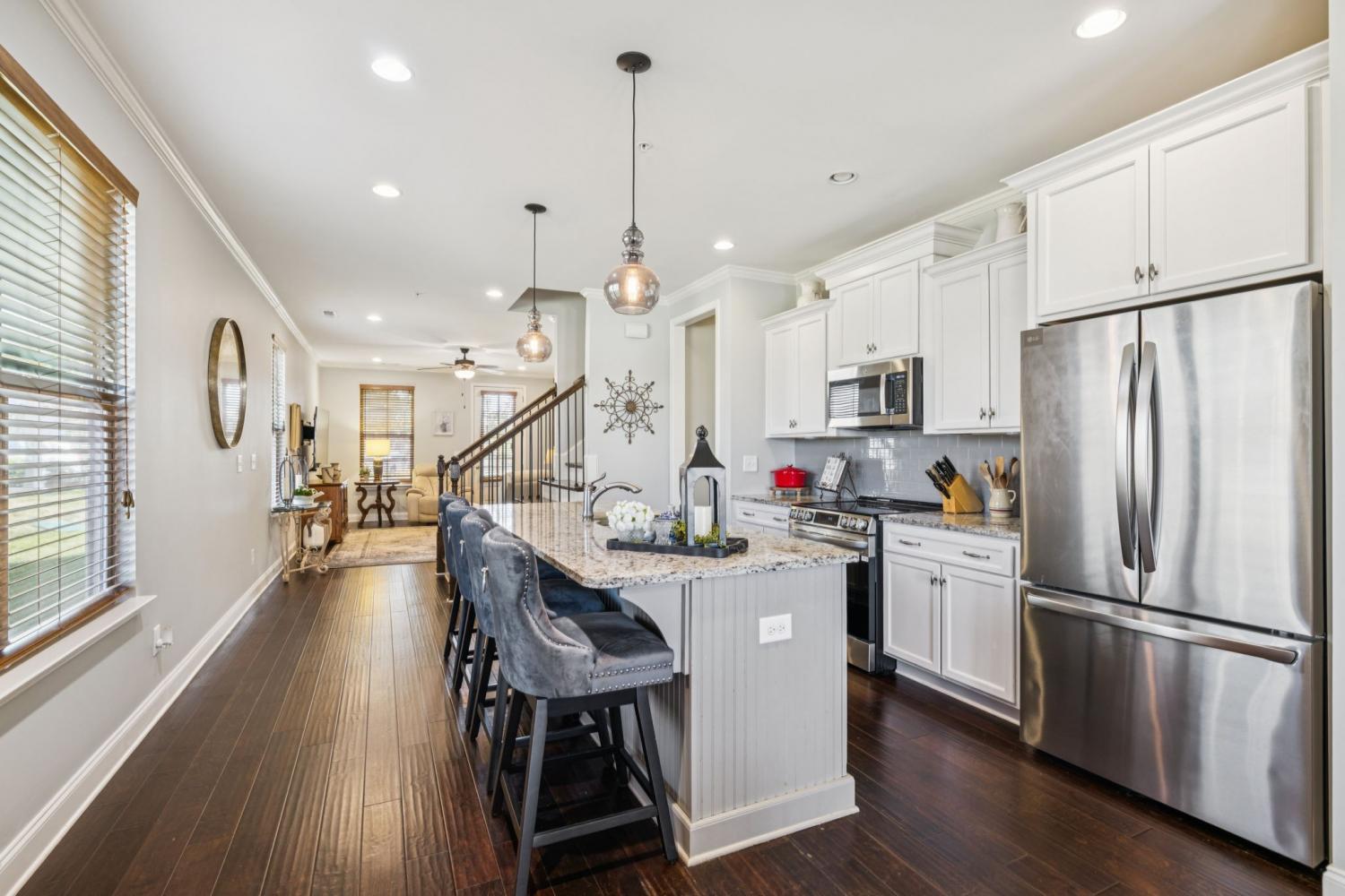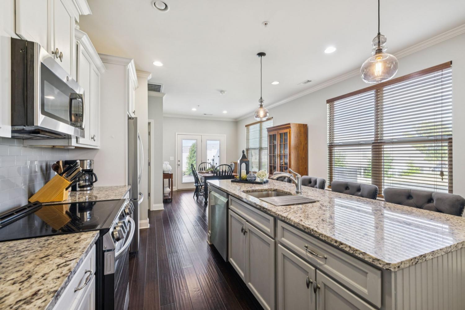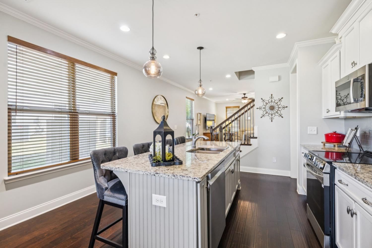 Beautifully updated end-unit townhome in the desirable Fields of Canterbury! This 3 bed, 2.5 bath home features all brand new kitchen appliances, fresh interior paint, and brand-new carpet in the main-level primary bedroom. Spacious open-concept living with abundant natural light, hardwood floors, and upgraded finishes. Main level primary suite includes walk-in closet with custom built-ins. Laundry located on main level. Upstairs offers two additional bedrooms, full bath, and a versatile bonus area. Enjoy the private, newly fenced-in backyard with covered patio—perfect for entertaining or relaxing. One-car garage and guest parking directly across. Walkable neighborhood with community pool, clubhouse, playground, and green spaces. Zoned for top-rated Williamson County schools and move-in ready!