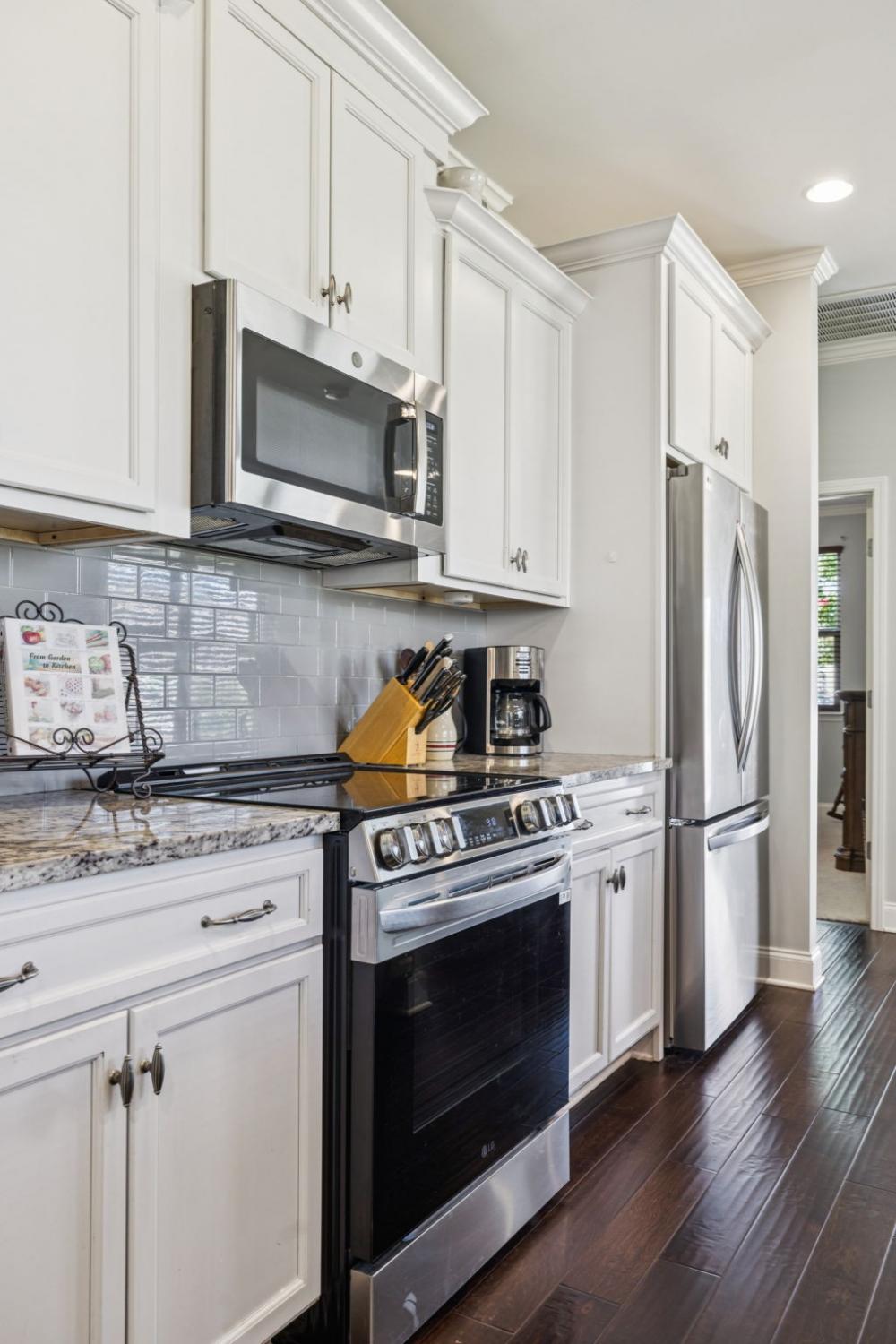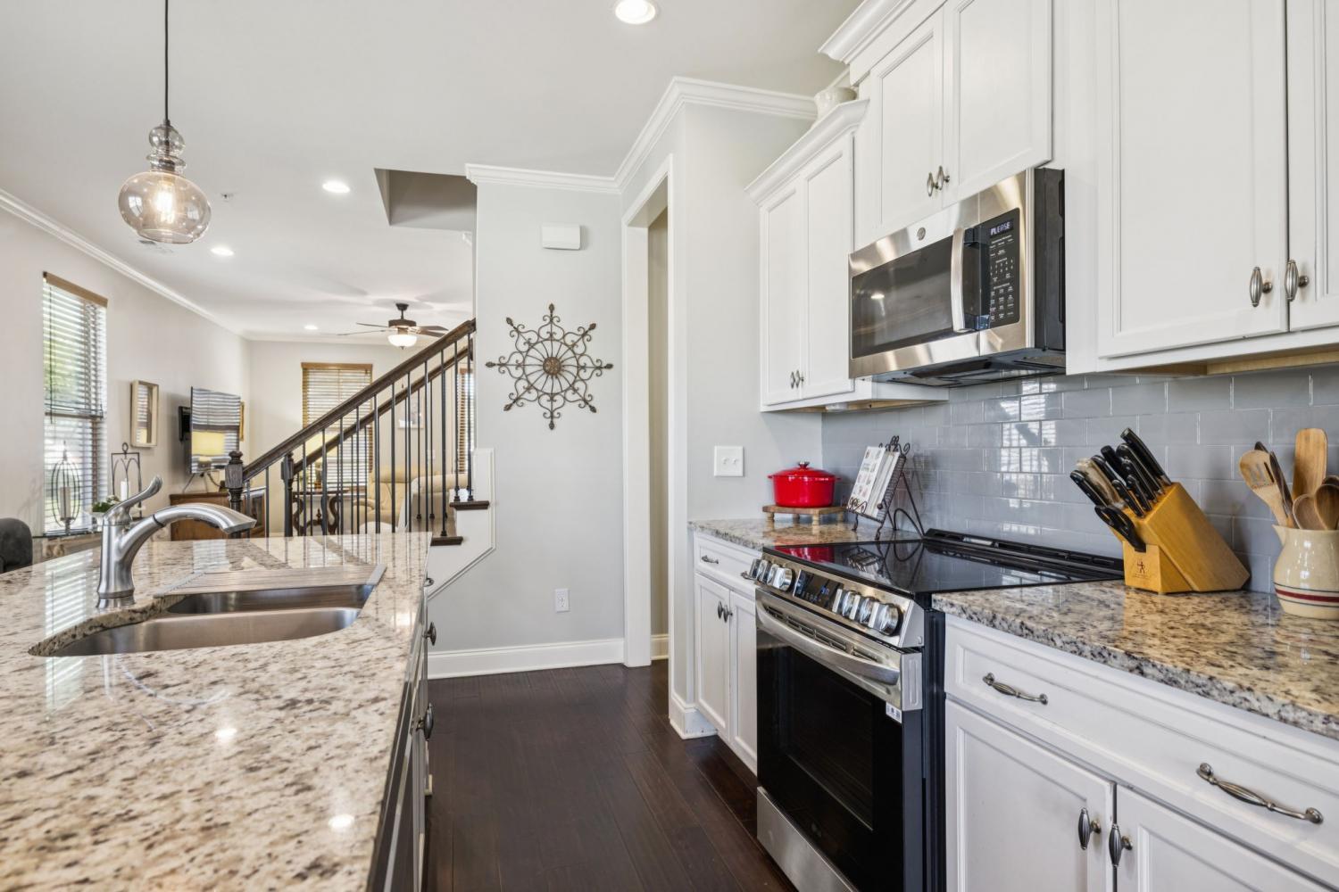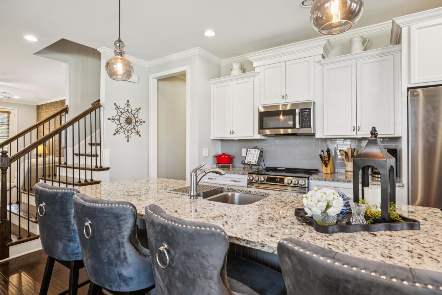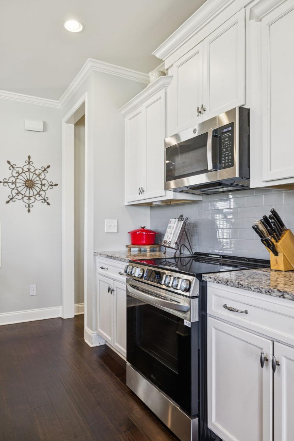 Beautifully updated end-unit townhome in the desirable Fields of Canterbury! This 3 bed, 2.5 bath home features all brand new kitchen appliances, fresh interior paint, and brand-new carpet in the main-level primary bedroom. Spacious open-concept living with abundant natural light, hardwood floors, and upgraded finishes. Main level primary suite includes walk-in closet with custom built-ins. Laundry located on main level. Upstairs offers two additional bedrooms, full bath, and a versatile bonus area. Enjoy the private, newly fenced-in backyard with covered patio—perfect for entertaining or relaxing. One-car garage and guest parking directly across. Walkable neighborhood with community pool, clubhouse, playground, and green spaces. Zoned for top-rated Williamson County schools and move-in ready!