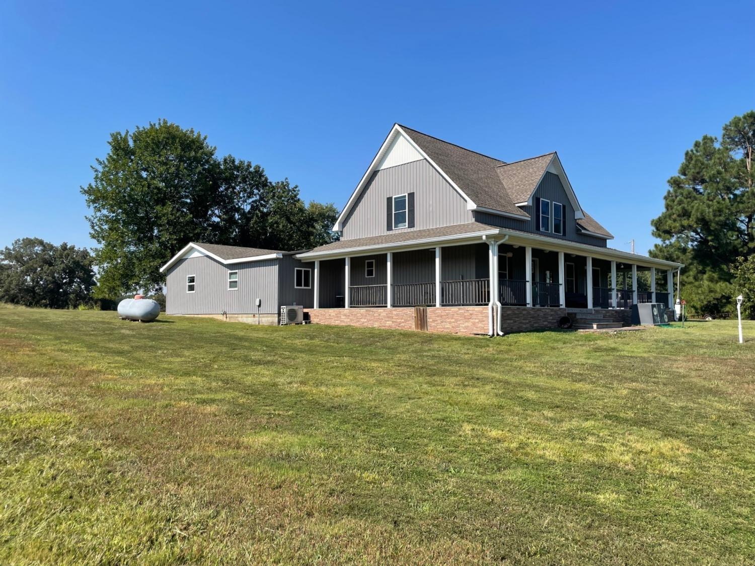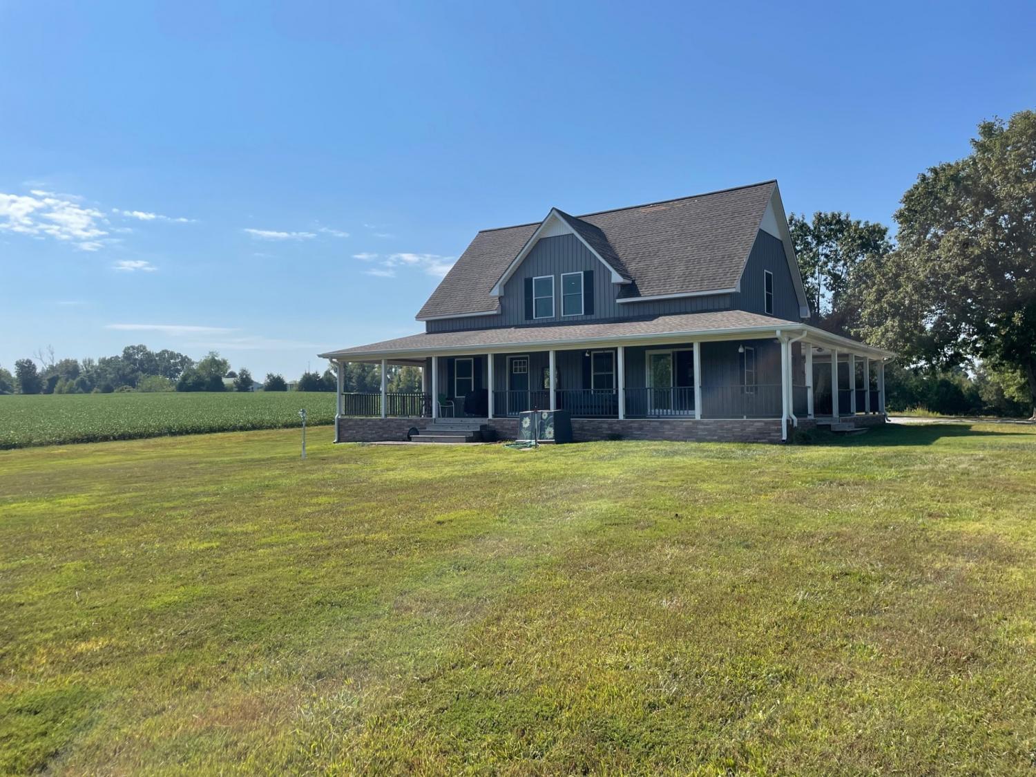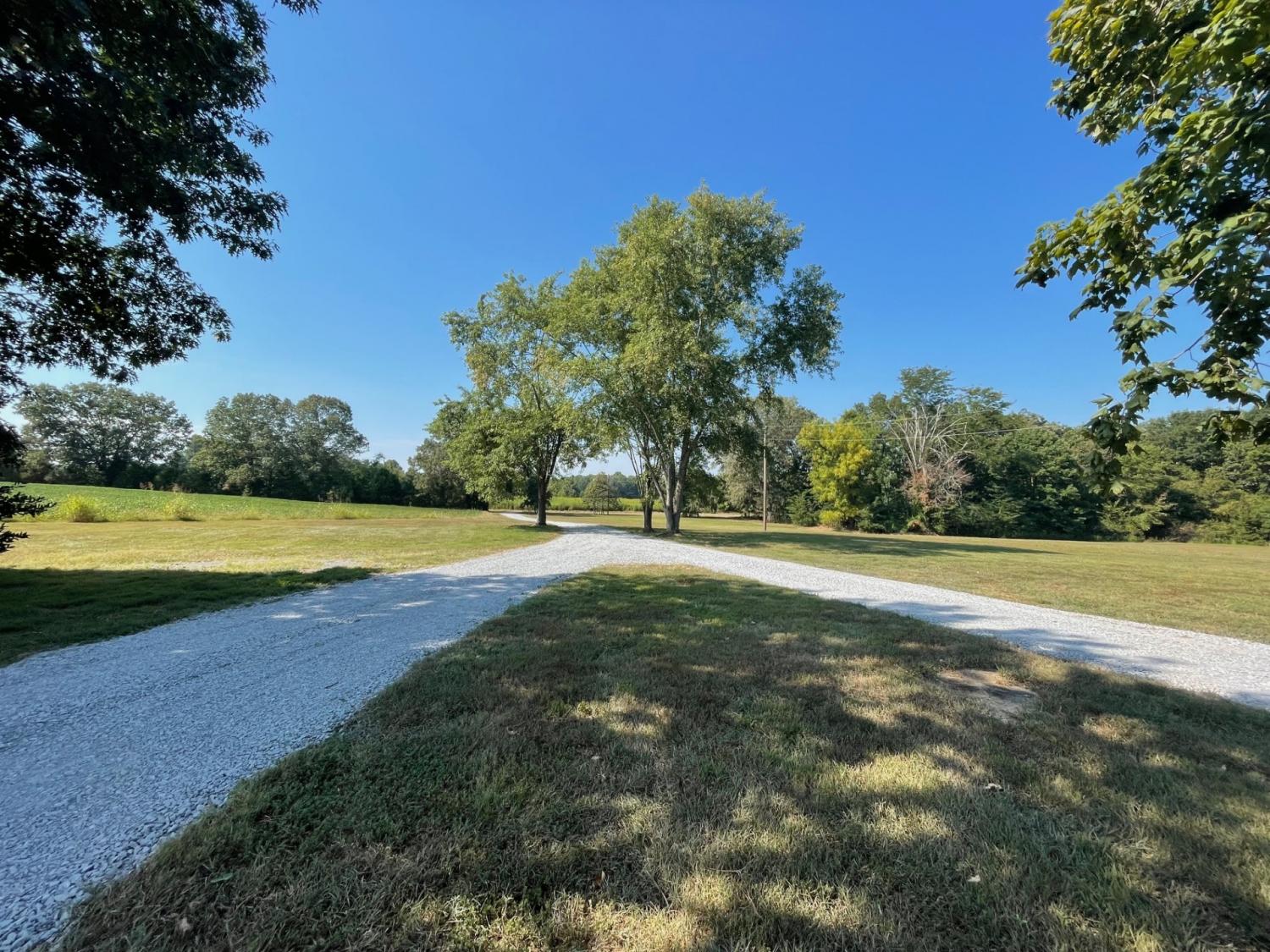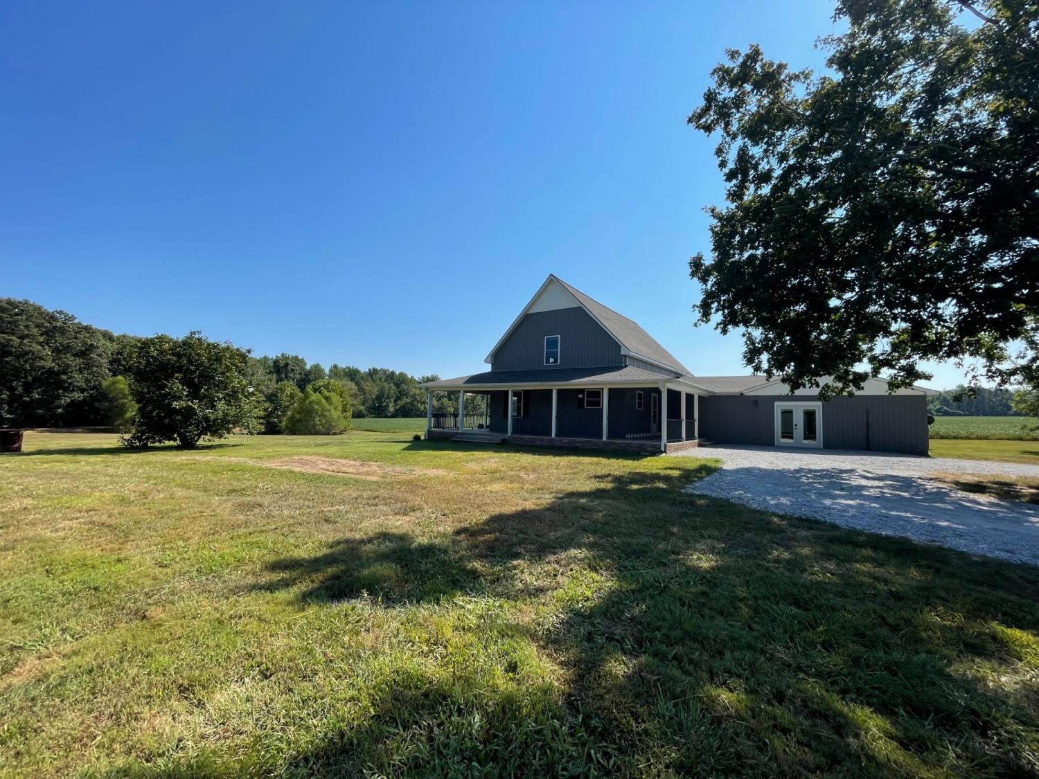 SECLUSION!! Custom built home on 54+/- acres just minutes from the Kentucky state line. Uniquely designed three bedroom two bathroom home features: Custom kitchen cabinets with granite and butcher block countertops, farmhouse sink, stainless steel appliances including gas range/oven and tile backsplash. Open floor design with high ceilings and a loft room overlooking the living area, 10x21 master suite with bathroom and walk in closet, brick veneer tile flooring in hallway-guest bathroom and utility room. The original 480 square feet "cabin" was built in 1975 and has the 10.5x 12.5 bedroom, the den and plenty of storage areas. The property is a blend of 25 acres in rotation crop, 10.5 +/- acres of open yard/pasture, and 18.5+/- acres of marketable timber. Barn/storage building on edge of yard. There is also a pond with a dock. Annual crop income is $2,750.