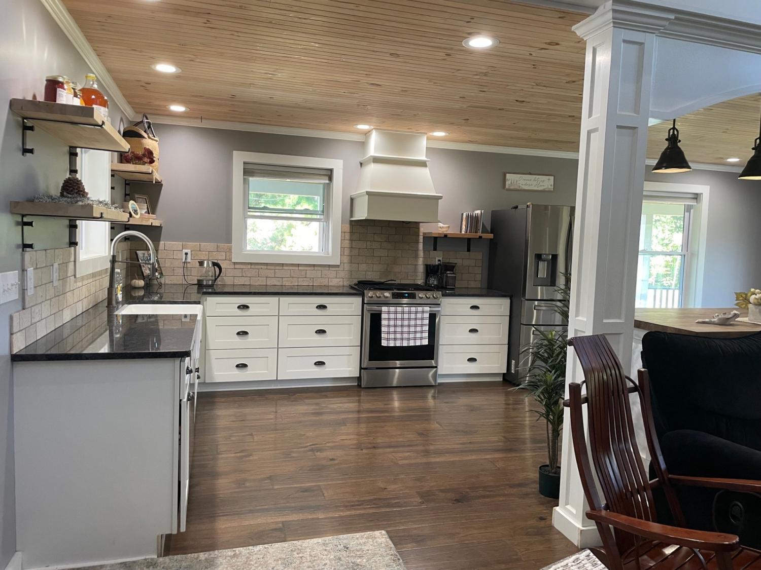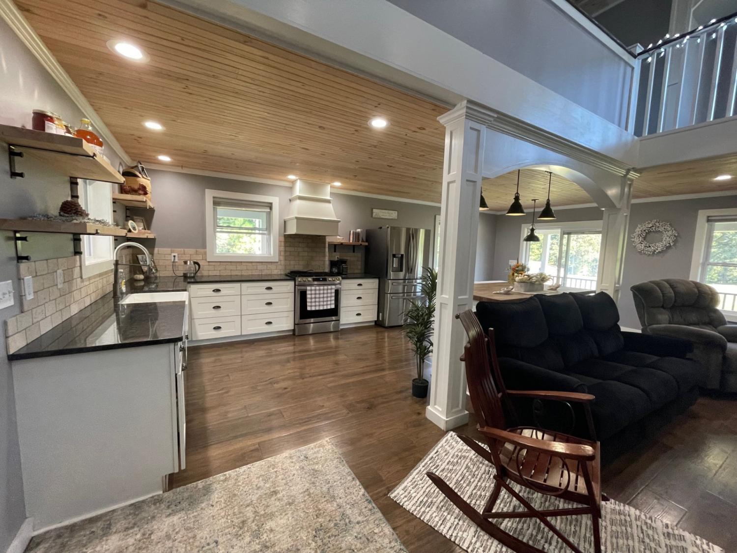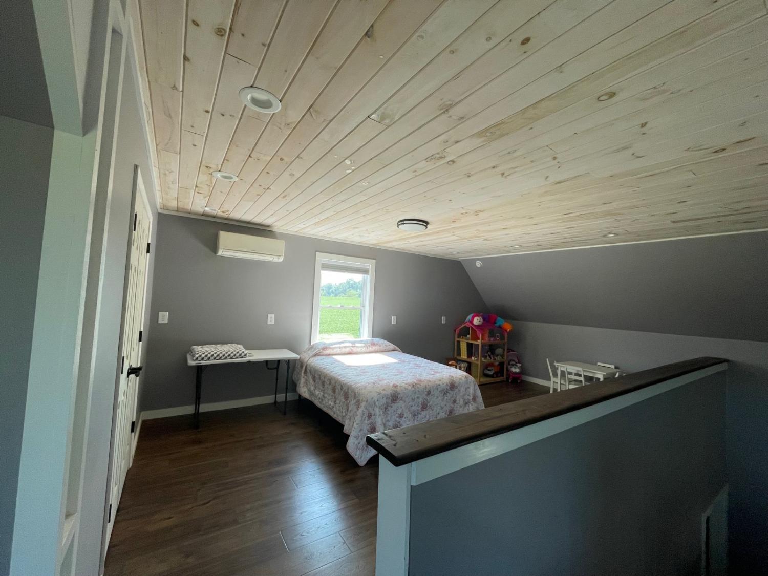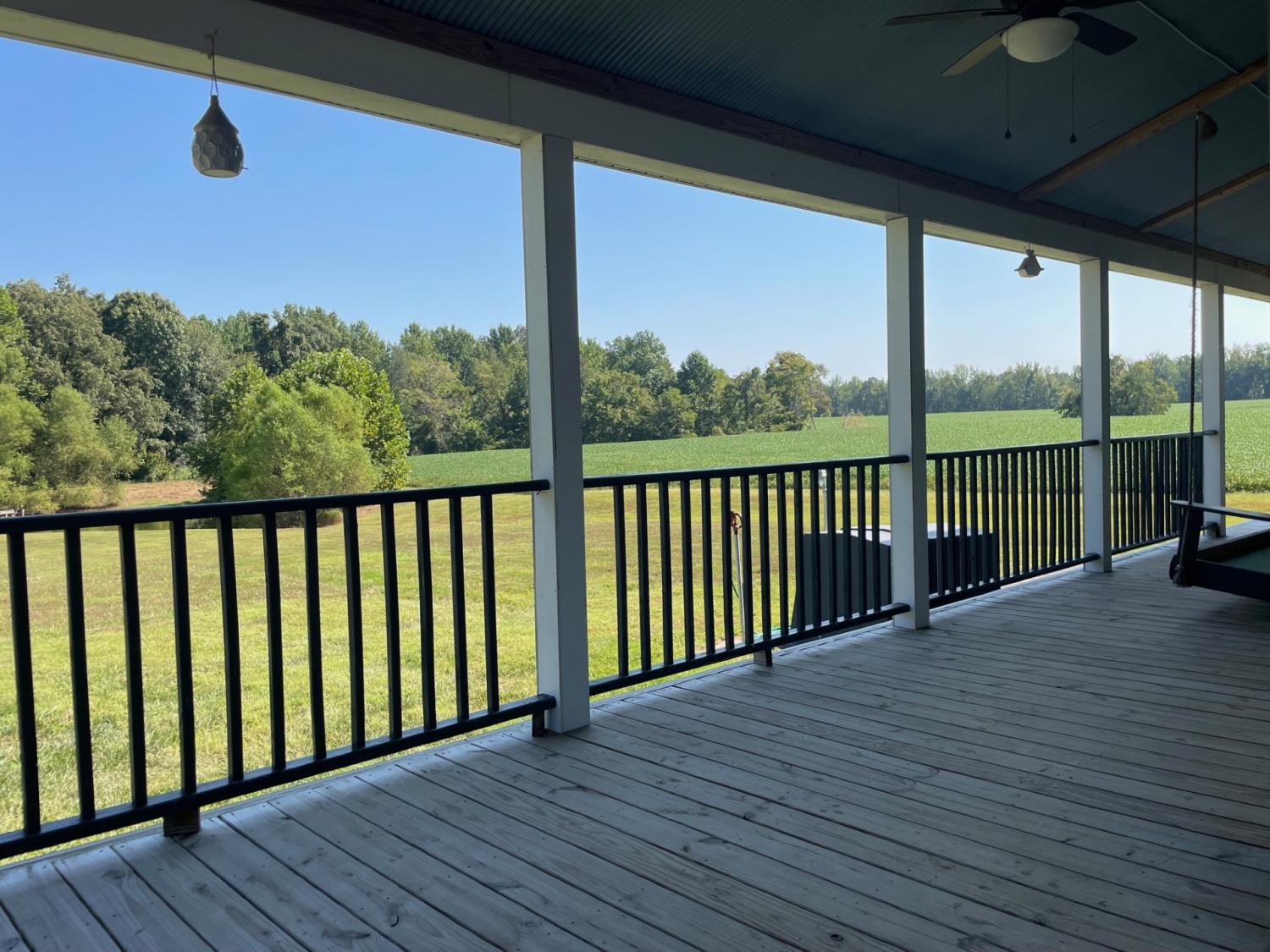 SECLUSION!! Custom built home on 54+/- acres just minutes from the Kentucky state line. Uniquely designed three bedroom two bathroom home features: Custom kitchen cabinets with granite and butcher block countertops, farmhouse sink, stainless steel appliances including gas range/oven and tile backsplash. Open floor design with high ceilings and a loft room overlooking the living area, 10x21 master suite with bathroom and walk in closet, brick veneer tile flooring in hallway-guest bathroom and utility room. The original 480 square feet "cabin" was built in 1975 and has the 10.5x 12.5 bedroom, the den and plenty of storage areas. The property is a blend of 25 acres in rotation crop, 10.5 +/- acres of open yard/pasture, and 18.5+/- acres of marketable timber. Barn/storage building on edge of yard. There is also a pond with a dock. Annual crop income is $2,750.