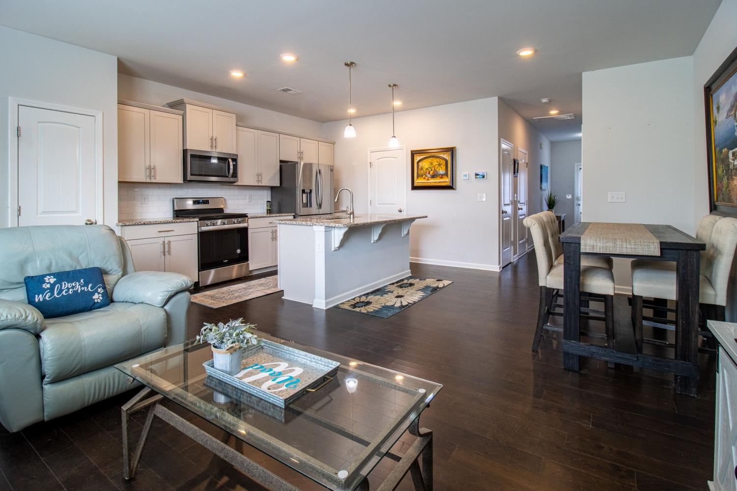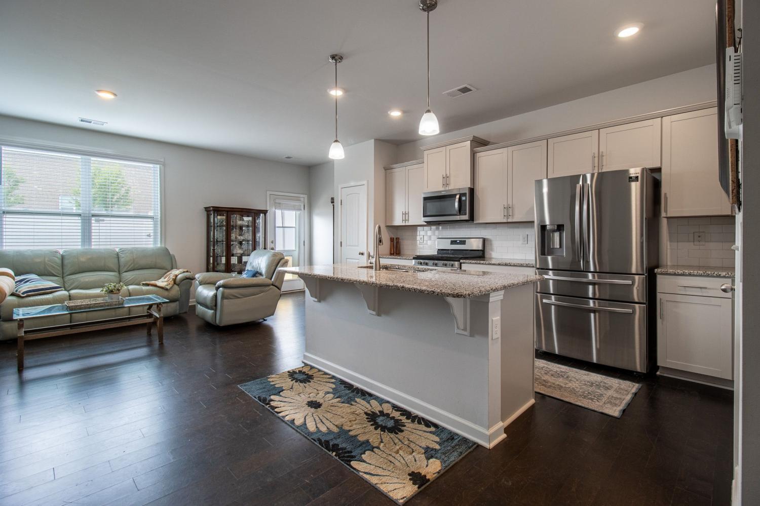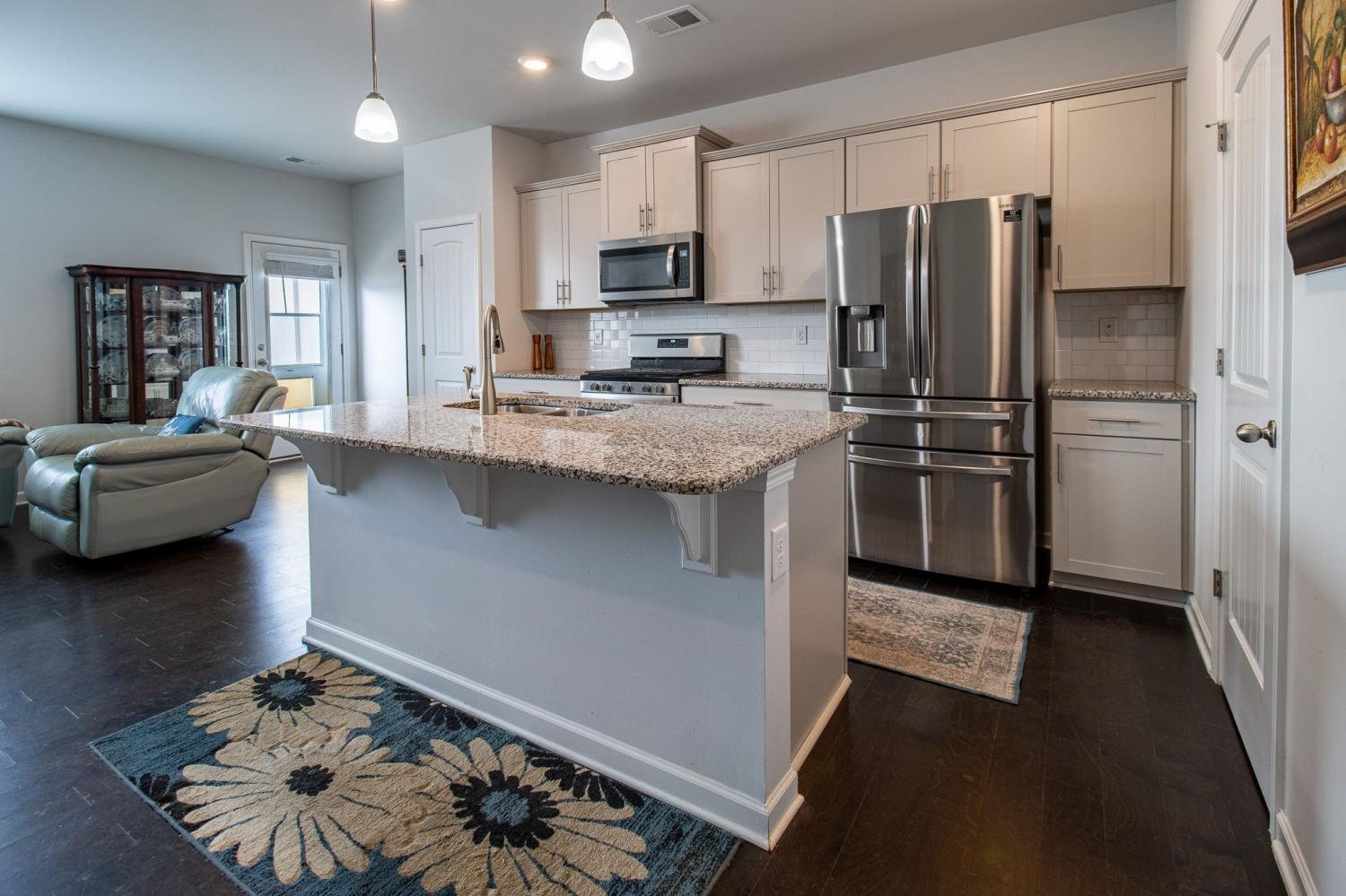 Prime Smyrna location. Close Proximity to I-24, shopping, dining, and entertainment. Located in the lovely Woodmont Community with clubhouse, pool, fishing pond, gazebo and sidewalks for those leisurely strolls. This smart home boasts 3 bedrooms, 2.5 bathrooms and a one car garage with attached ceiling storage racks. Inside you will find an open floor plan with engineered hardwood floors, granite counters throughout, tiled backsplash, and stainless steel appliances including a gas stove. The Primary bedroom features a vaulted ceiling, walk in closet and spa-like bath with double vanities, separate soaking tub and tiled shower. The back patio area is completely privacy fenced for pets, entertaining or simply relaxing.