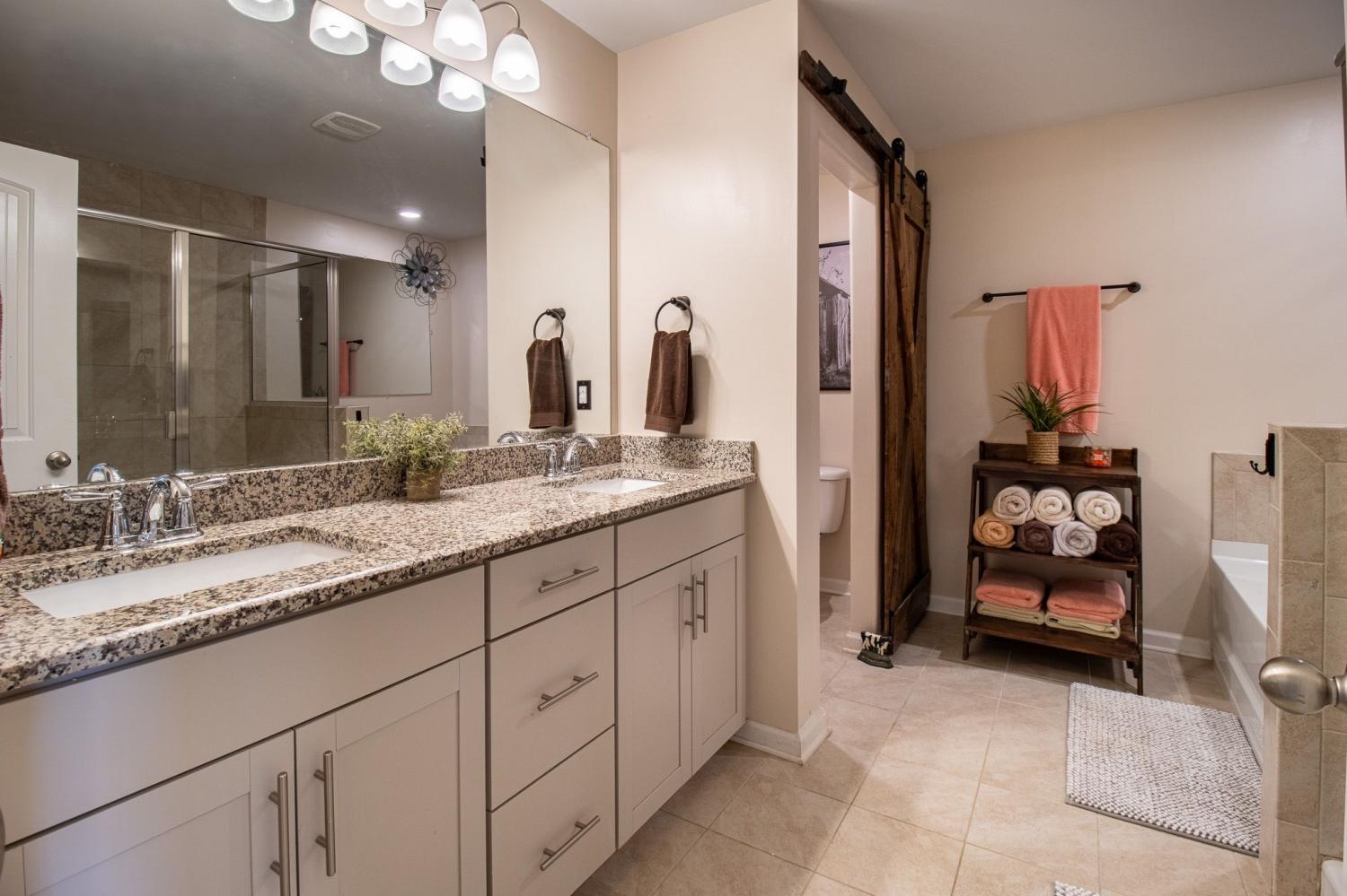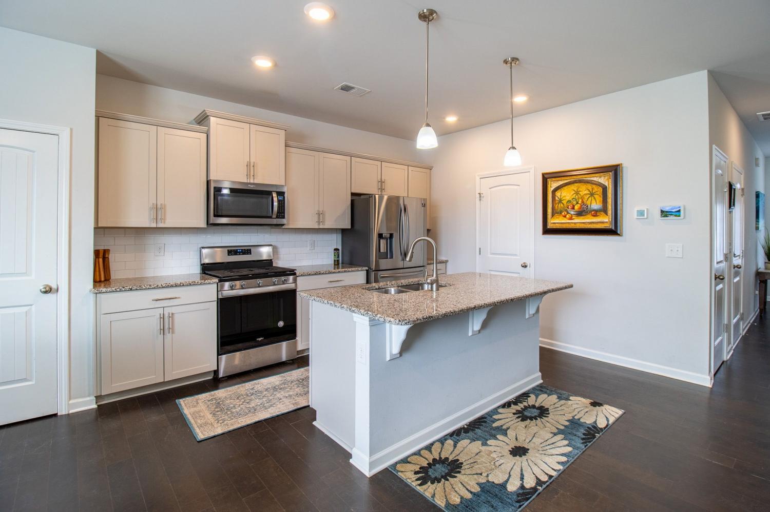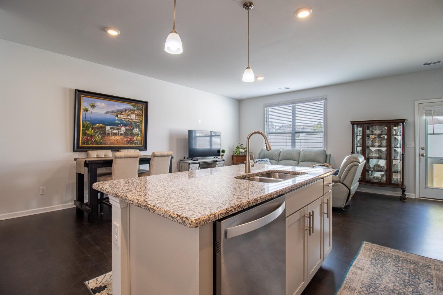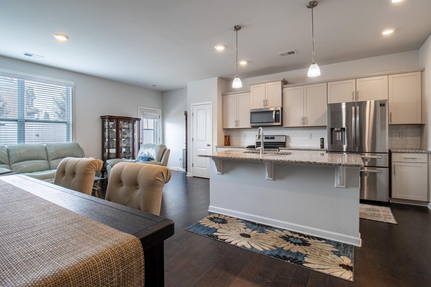 Prime Smyrna location. Close Proximity to I-24, shopping, dining, and entertainment. Located in the lovely Woodmont Community with clubhouse, pool, fishing pond, gazebo and sidewalks for those leisurely strolls. This smart home boasts 3 bedrooms, 2.5 bathrooms and a one car garage with attached ceiling storage racks. Inside you will find an open floor plan with engineered hardwood floors, granite counters throughout, tiled backsplash, and stainless steel appliances including a gas stove. The Primary bedroom features a vaulted ceiling, walk in closet and spa-like bath with double vanities, separate soaking tub and tiled shower. The back patio area is completely privacy fenced for pets, entertaining or simply relaxing.