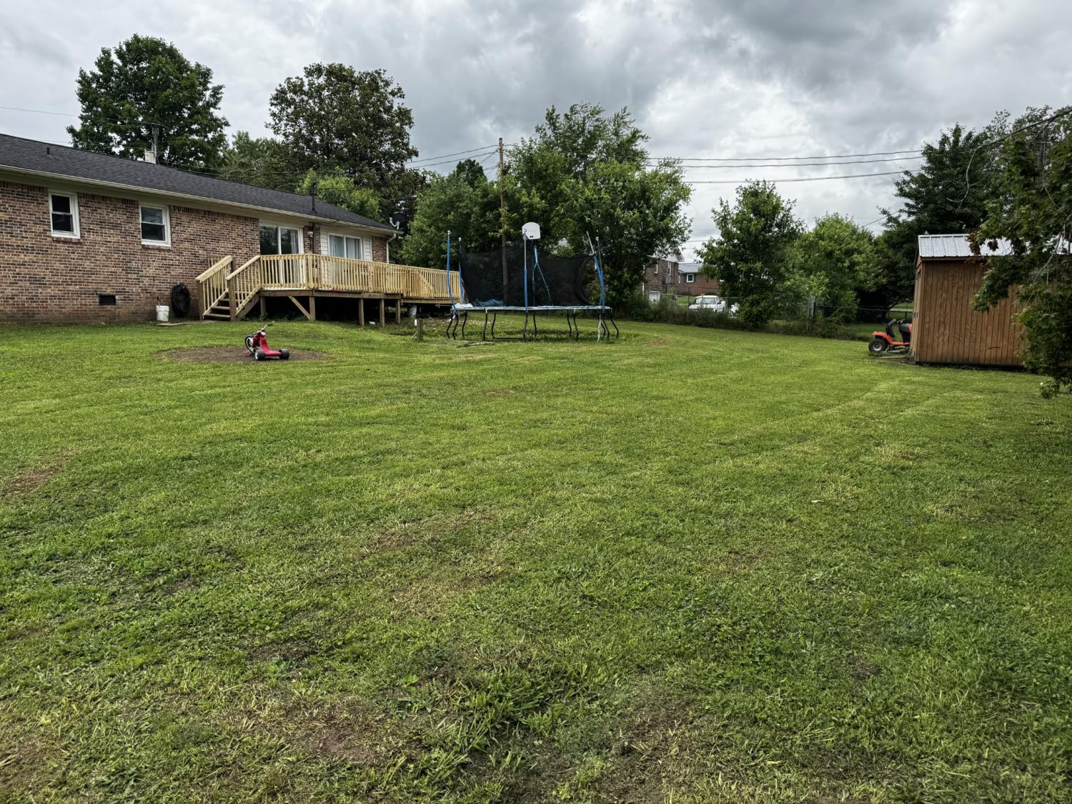 Nice brick home with 4 bedrooms 1full bathroom and 1 half bathroom. Located just outside city limits still really close to everything. Nice back deck, level yard and storage building that will remain with the property.