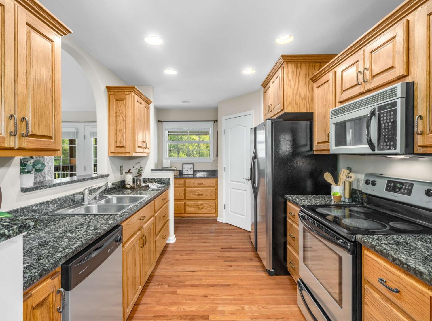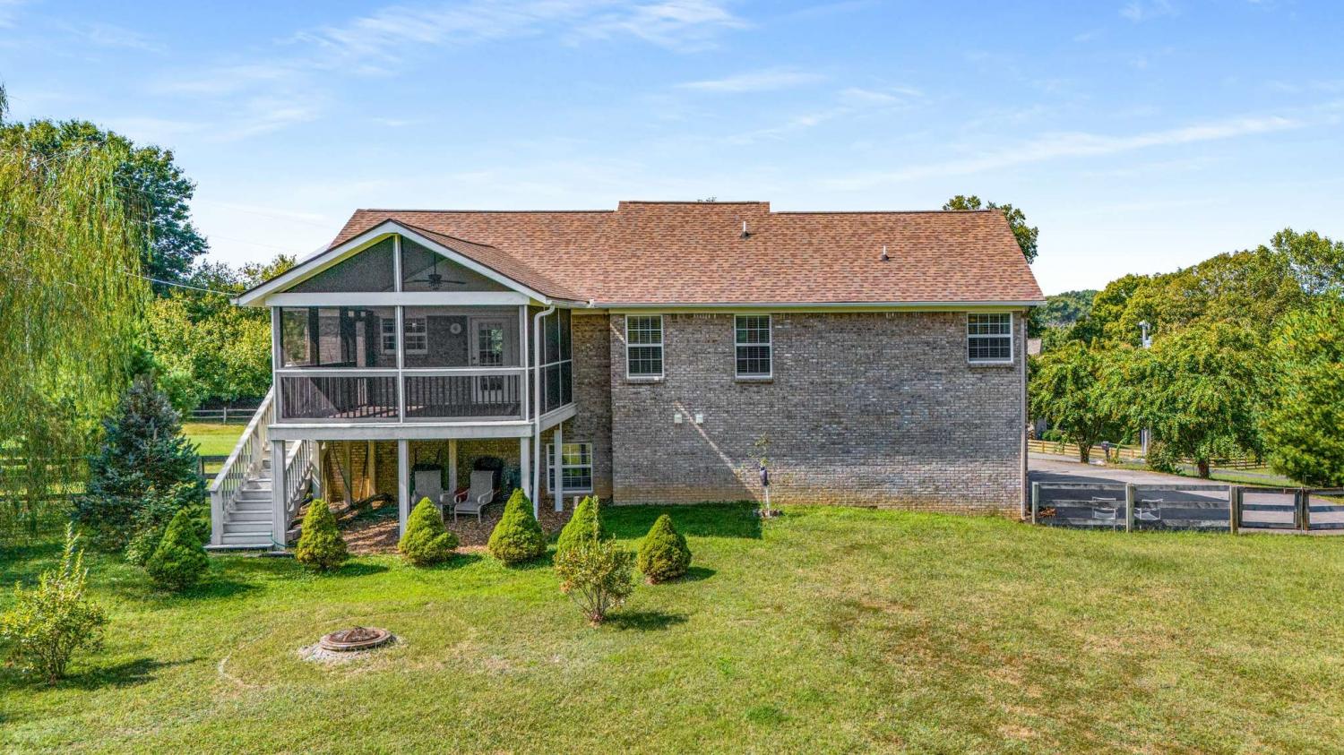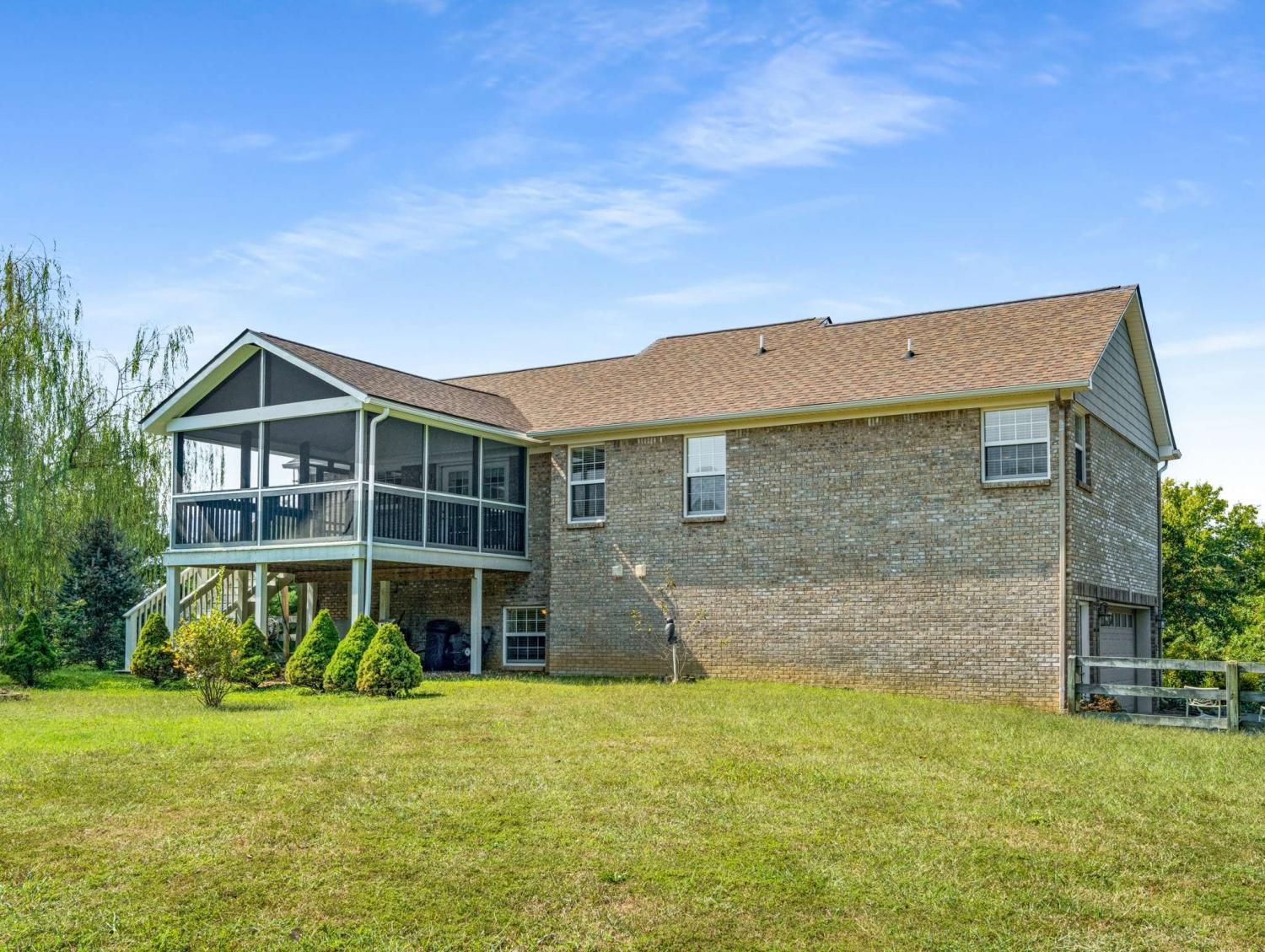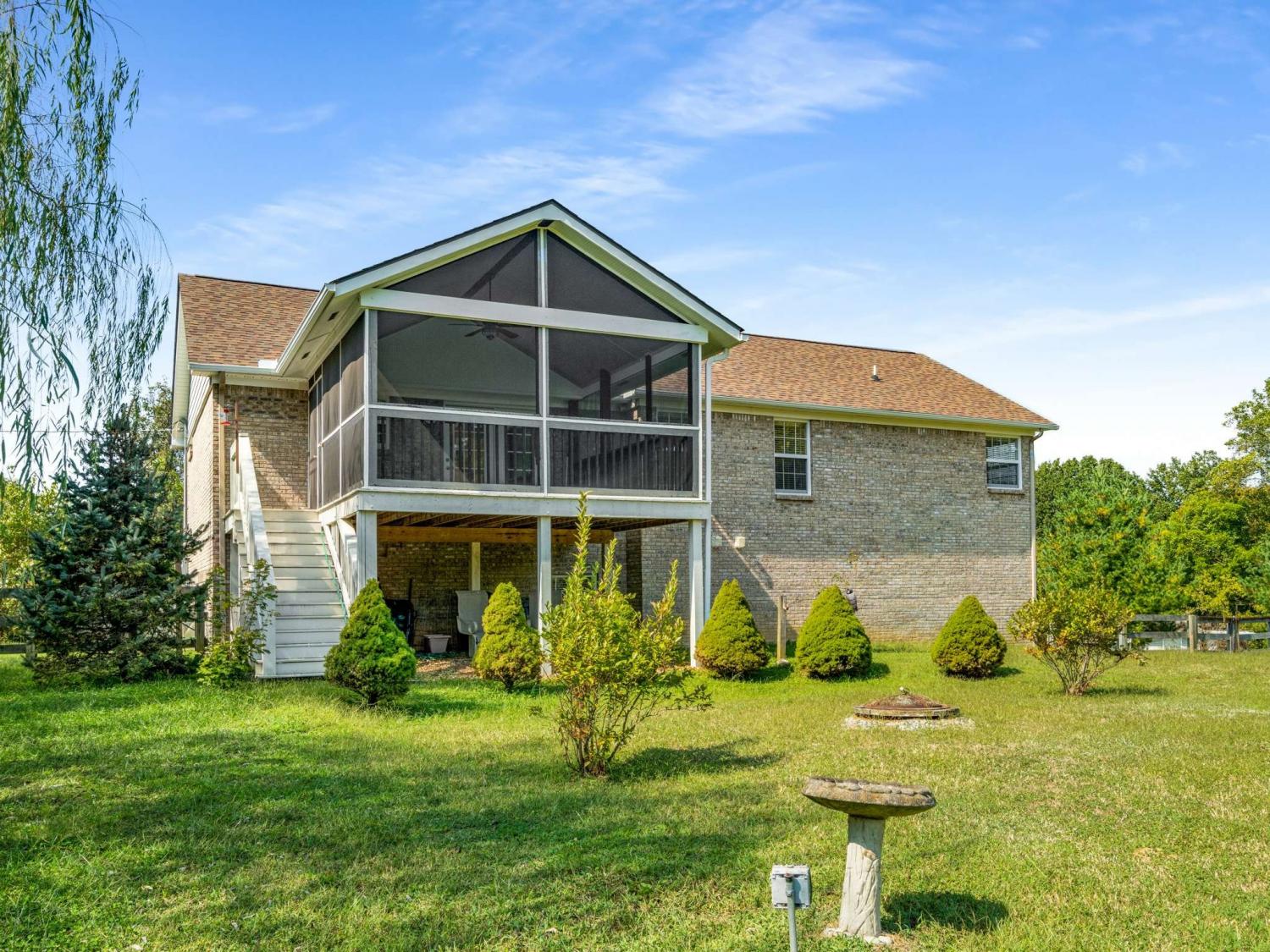Discover this stunning all brick hilltop retreat just outside the city limits, offering the perfect blend of modern comfort, privacy, and convenience to top shopping, dining, and nearby brand new schools. Nestled on a peaceful cul-de-sac with breathtaking rolling hill views and seasonal lake scenery, this beautifully landscaped property is designed to impress. Step inside to a welcoming foyer with rich hardwood floors leading to a bright, open living space where natural light pours in and every detail feels inviting. The gourmet kitchen boasts granite countertops, custom panel cabinetry, a spacious pantry, and seamless flow into the dining and living areas - ideal for entertaining or quiet evenings at home. The primary suite is a true sanctuary, featuring a whirlpool tub, dual vanities, and serene views, while three additional bedrooms and three full baths provide plenty of space for guests or a growing household. Relax year-round on the screened porch with its soaring arched ceiling and sky views or step onto the back deck to enjoy Tennessee sunsets surrounded by a fenced back yard, privacy, and wildlife. The lower level offers an office, rec room, and additional living space, while outside you’ll find apple, pear, and peach trees, and blueberry bushes, along with vibrant seasonal blooms. With a new HVAC (2025), new roof (2023), ATT Fiber (2025), new washer (2025), an oversized 2-car garage plus covered parking for a 3rd vehicle, AND an interior storm shelter in the lower level, this home is truly move-in ready. The community adds even more value with a private, gated 12-acre lake with fishing, a pavilion, nature trail, and year-round events. Don’t miss your chance to own a private oasis with city convenience - schedule your showing before it’s gone!