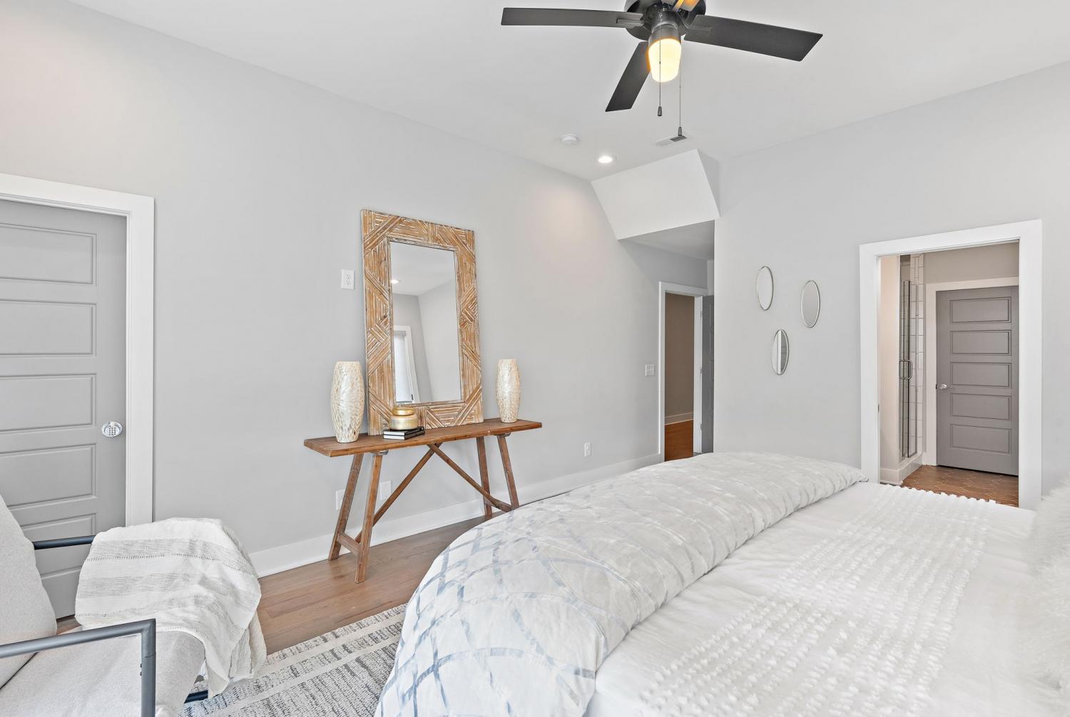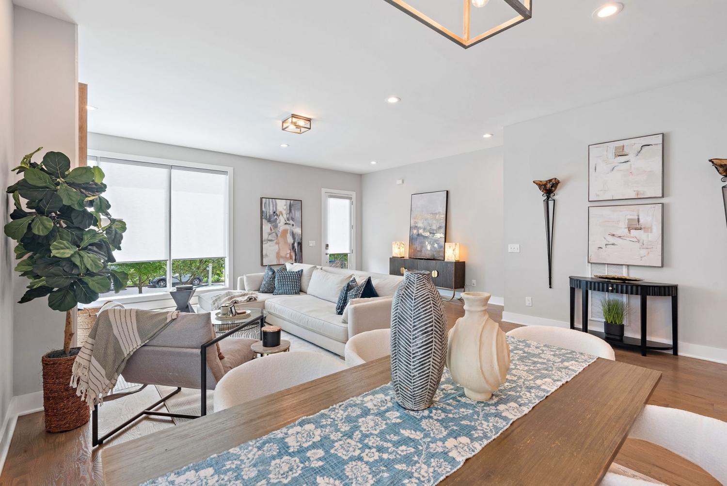 This modern luxury home is perfectly positioned between Music Row, Belmont, and The Gulch! With city vibes & rooftop views, this 3-bedroom, 3.5 - bath home blends modern convenience with modern Nashville style. Inside, you'll find an open-concept layout filled with natural light, hardwood floors, and updated finishes. The kitchen boasts waterfall countertops, stainless steel appliances, and plenty of space for entertaining. The primary suite offers an en-suite bath and generous storage. The real showstopper is the rooftop entertainment area with a garage door for those perfect sunny days and a covered rooftop patio with an amazing view of your new neighborhood! With a low-maintenance yard, attached 2 car garage, additional gated & off-street parking, and unbeatable walkability to shops, dining, and live music, this home is ideal for anyone looking to live, invest, or play in the heart of Nashville.