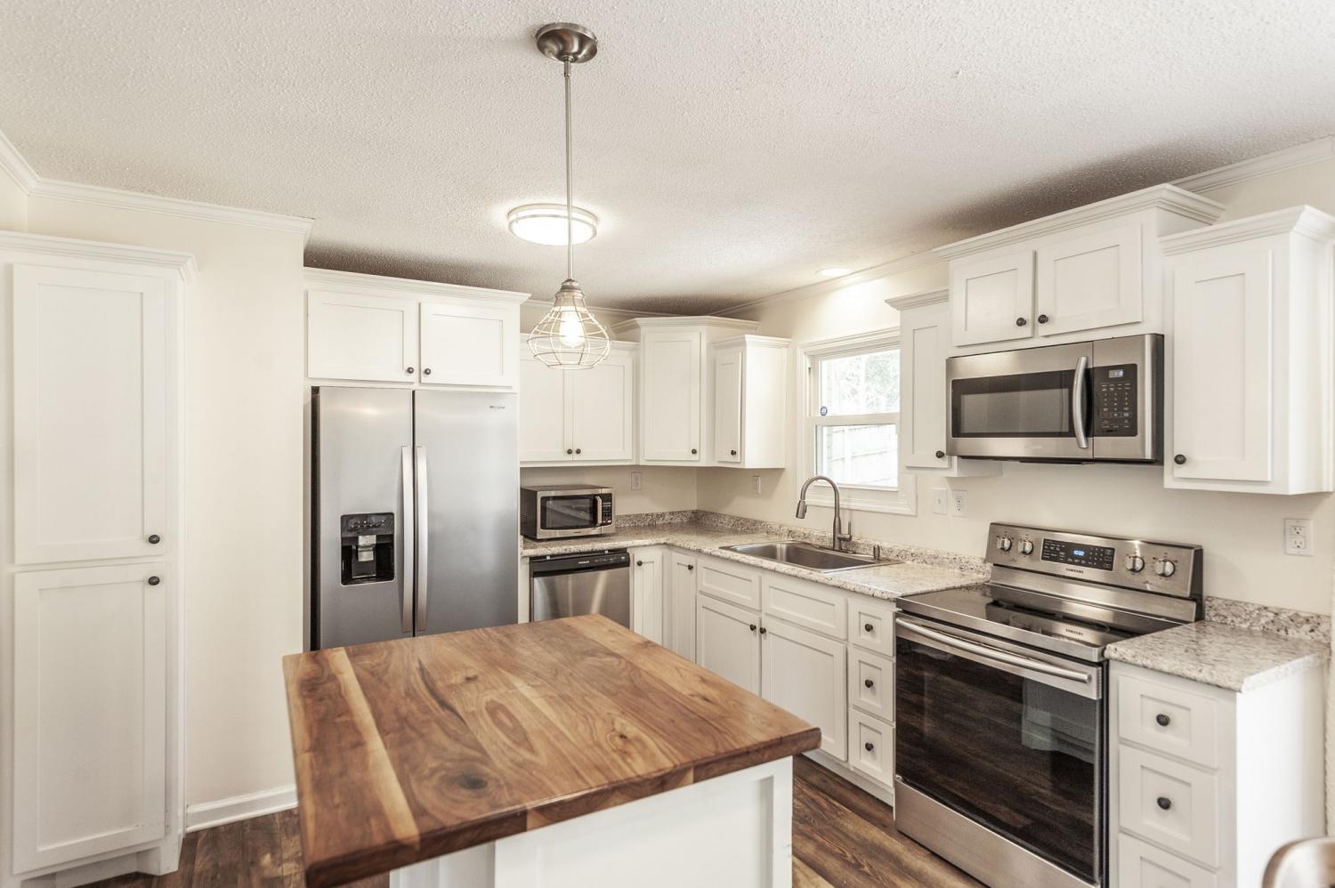 Updated, full brick home conveniently located near shopping, restaurants, and more! Step inside to see the open floorplan with plenty of natural light, lovely crown molding, and updated fixtures. No carpet here! The beautiful kitchen features white cabinetry, an island, and stainless steel appliances. The bathroom has been updated with tile flooring, a tile tub surround, and upgraded shower wand. Out back you will love sitting on the expansive deck overlooking the peaceful, fenced backyard. The concrete driveway provides plenty of off-street parking. The sizeable laundry/mudroom as you come through the side entry door from the driveway is a perfect drop zone with tile flooring, a utility sink, and shelving. All of this and no HOA! You don't want to miss out on this wonderful place!