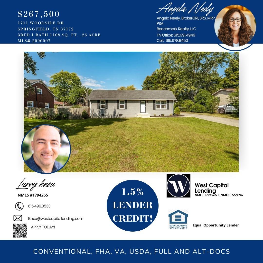 Address : 1711 Woodside Dr Springfield TN 37172