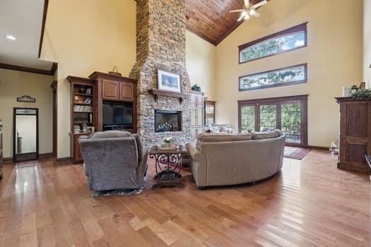 CAN YOU PICTURE IT? Your first Christmas in your new custom Home! Snuggled up in front of your fireplace while watching the twinkling lights on your 24 ft Christmas tree as the moonlight peeks through the large windows that are nestled just under your Cathedral Ceilings which boast in lustrous Wormy Maple tongue and groove. The glow of the fireplace radiates off of the beautiful hardwood floors, and you notice the attention to the detail in the Stacked Stone fireplace that surrounds it along with the Gorgeous Custom Cherry Bookcases encompass the fireplace. From the Kitchen, you can smell the hint of cinnamon and pumpkin pie from the Beautiful Granite countertops and matching Custom Solid wood Cherry cabinetry. New Appliances provide convenience and peace of mind as you are are preparing the most perfect holiday meals. The Breakfast Nook has Natural Light with large Bay window and large enough to enjoy family/kids meals, or set out to entertain family/guests in the adjoining Dining Room. You reflect on how Beautiful every detail is and the enjoyment it brings from the hand stained Crown Molding throughout to your TWO Massive Primary Bedrooms with en-suites both with luxurious marble Showers and Garden Tubs. Landscaping surrounds your front porch, while your aggregate Stone Patio in the back of the home makes a Perfect spot for Entertaining large parties and family Cookouts over looking a 10,000 sq. ft. custom pen that keeps your 4-legged fur-babies safe while your spring feed stocked pond keeps the avid fisherman happy. All of this is situated on nearly 14.5 acres of the most inviting park-like mixture of beautiful oak tress and other hardwood, or watch your horses graze as you enjoy the sunsets and the local deer and babies stop by for a visit, as you listen closely and hear nothing except Mother Nature surrounding you. The scenic Duck River is just across the street so you enjoy the fishing at it's best. Tranquility and serenity awaits you at every turn.