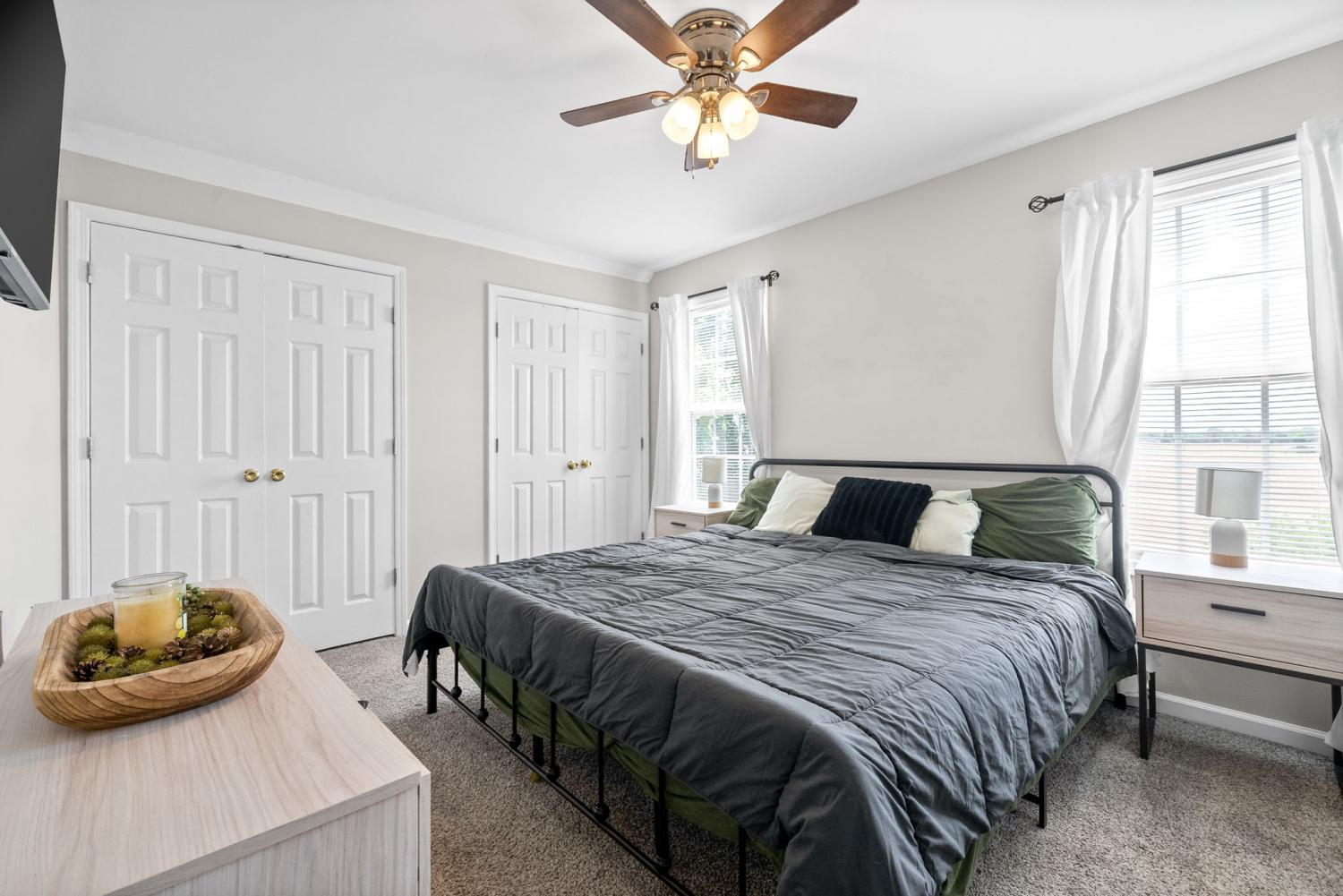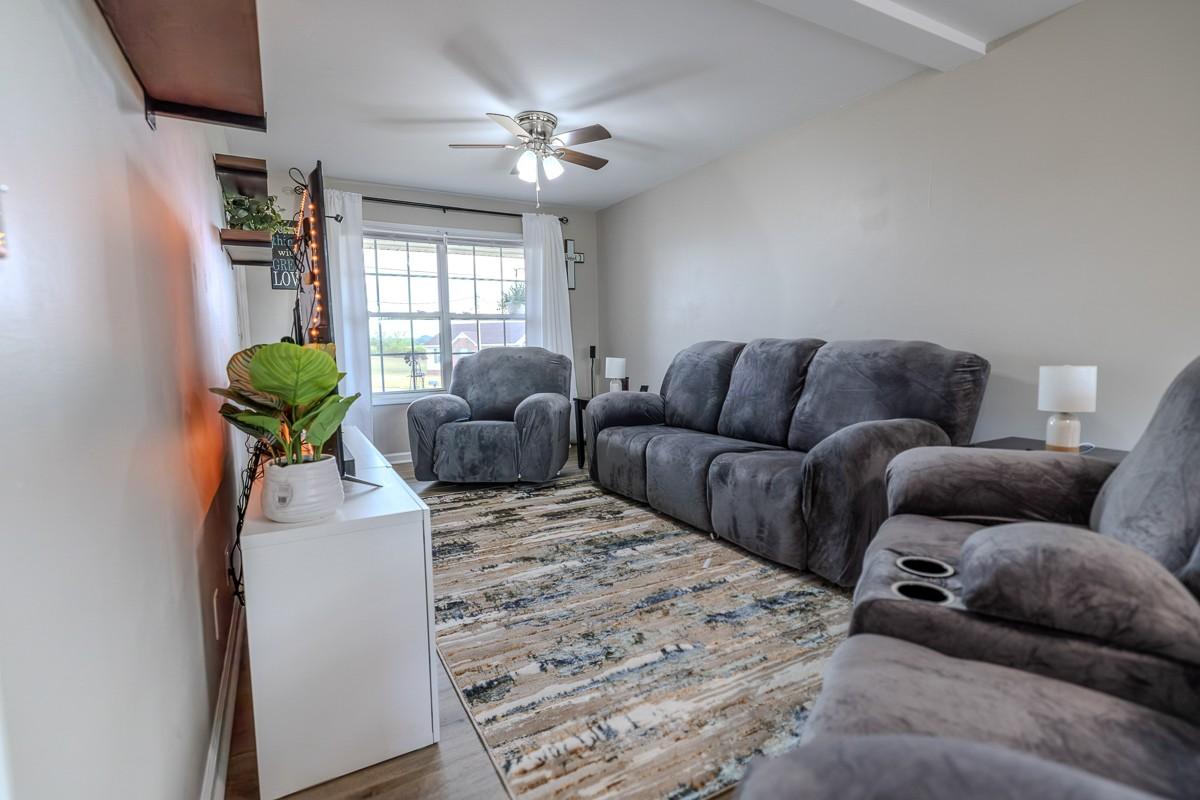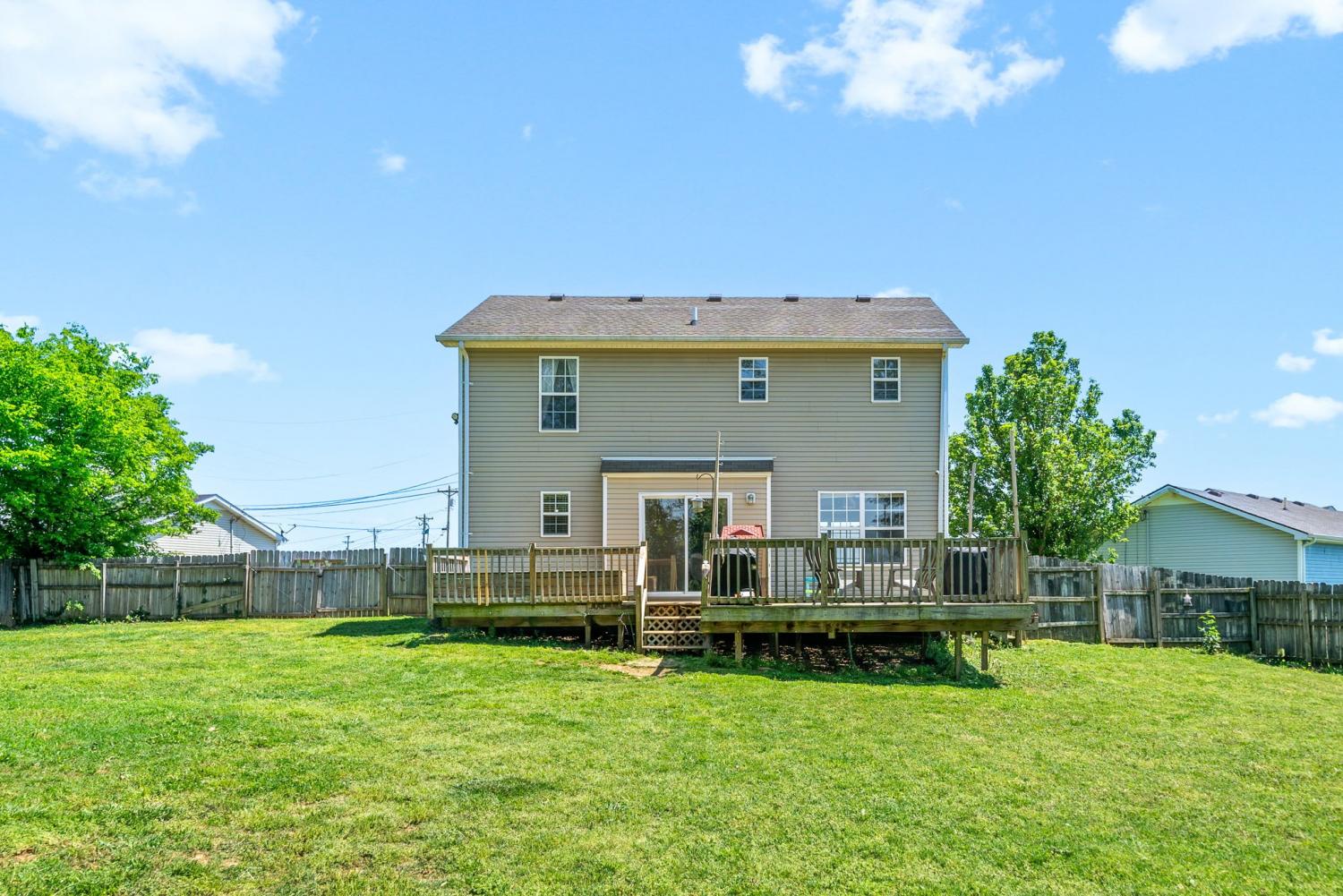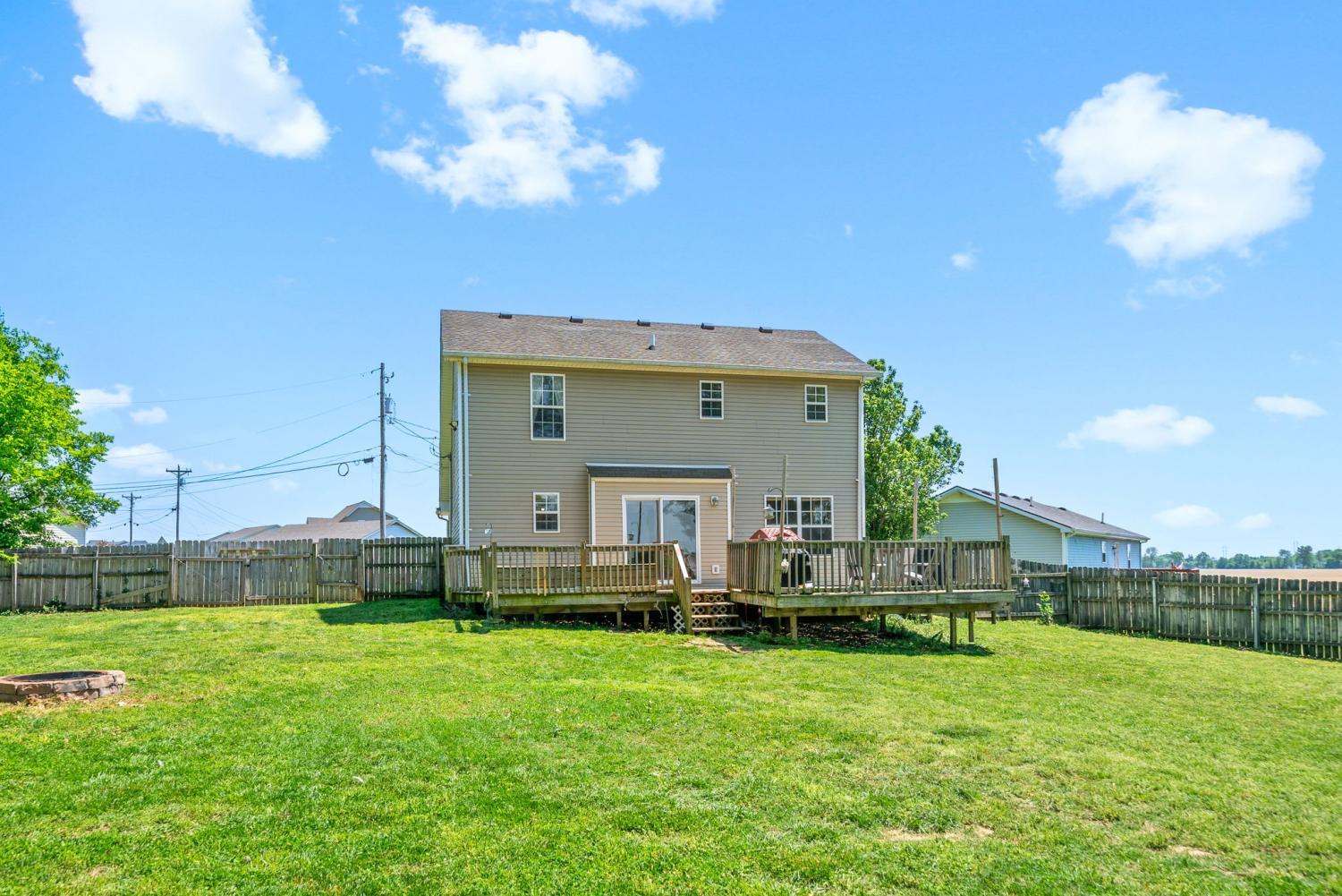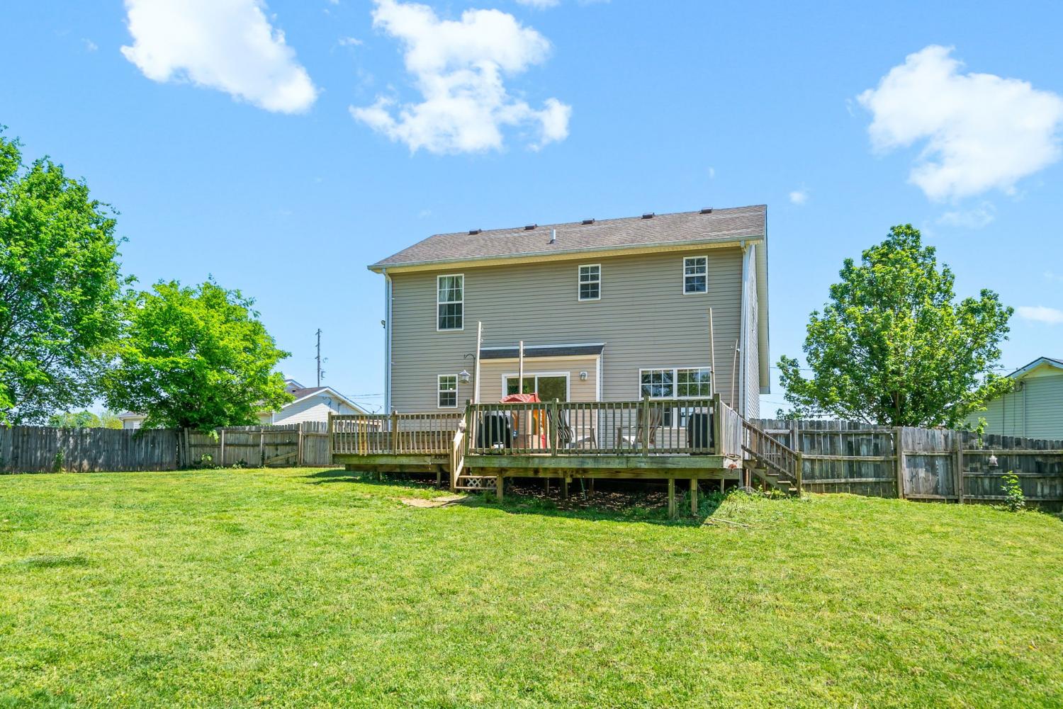 Beautifully maintained 3BR/2.5BA, 1,485 SF home on a low-traffic cul-de-sac—convenient to Fort Campbell (˜10 min) with easy access to Clarksville and Nashville. The main level features an inviting, open layout with a spacious kitchen, pantry storage, and an oversized laundry room for everyday utility. All bedrooms are upstairs, including a comfortable primary suite with a private bath. Step outside to a large, fully fenced backyard with no rear neighbors and sunset views—perfect for unwinding or entertaining on the freshly stained deck. Major update: HVAC replaced < 1 year ago. A turnkey option in a peaceful setting with privacy, function, and location all in one.
