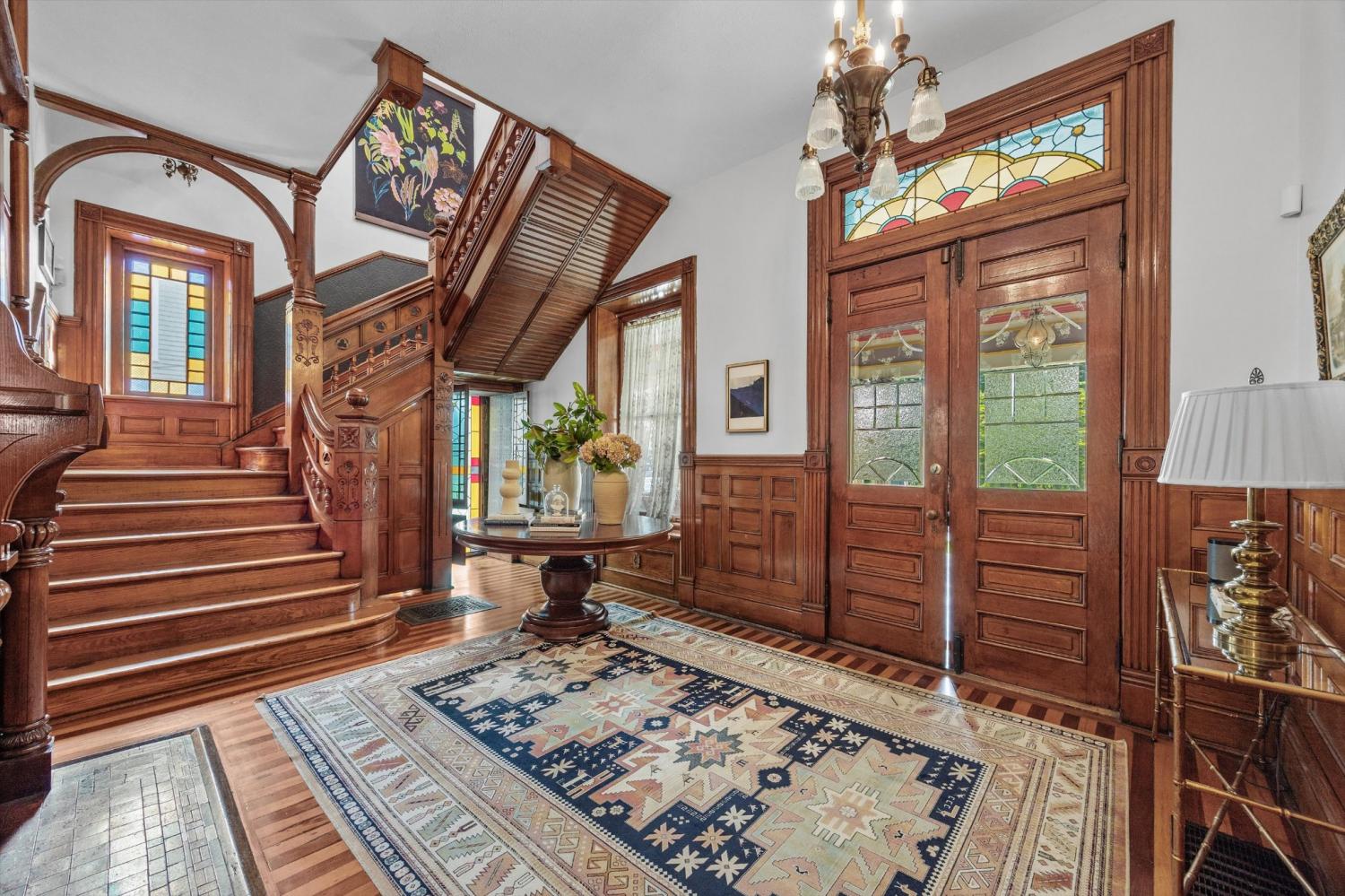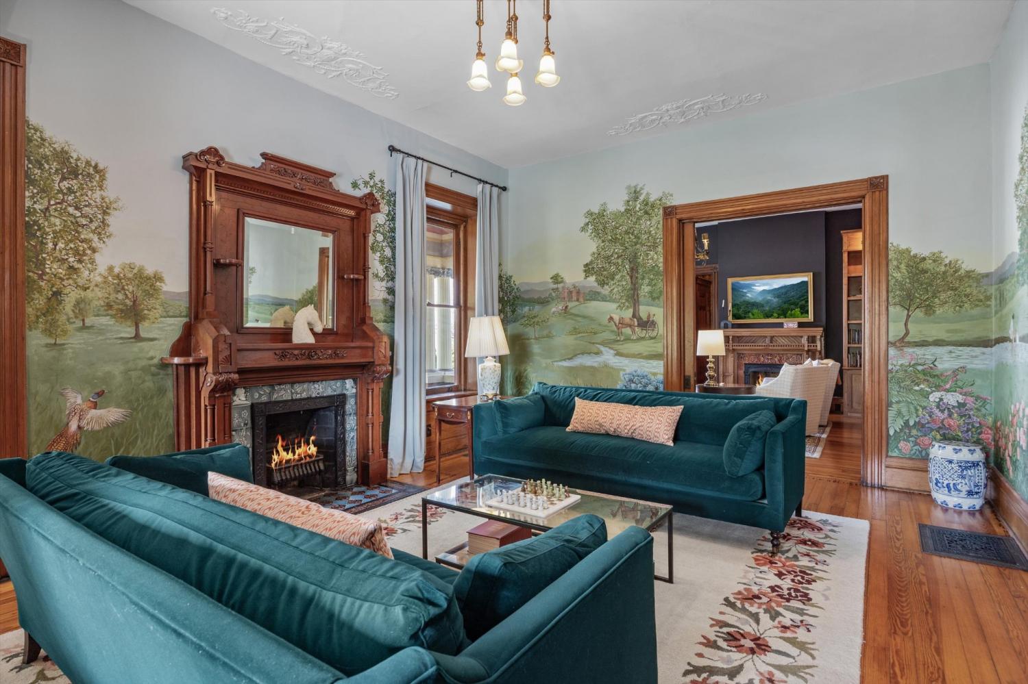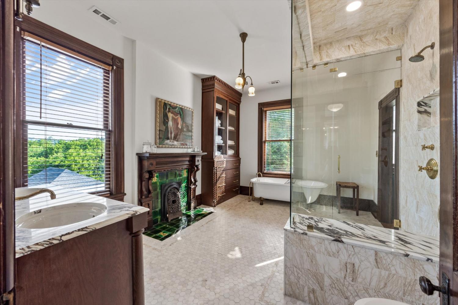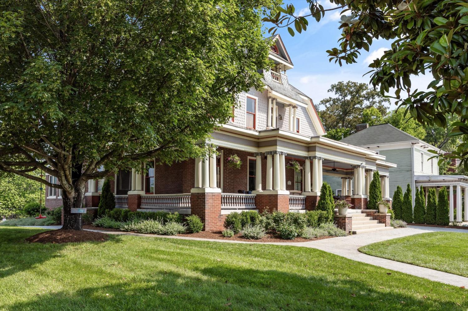 Built in 1889, the Lou-Mar House is a Queen Anne Victorian masterpiece by architect David Getaz, known for his work on the Knox County Courthouse. Once home to prominent families, it stands as one of East Tennessee's finest architectural examples and has been featured in HGTV and Knox News Sentinel. Enter through etched-glass double doors into a grand foyer showcasing six wood species. The parlor includes a custom mural by Mara Wilson, while the gentleman's parlor is now a maple wood library. The dining room boasts a boxed beam ceiling, with intricate woodwork, moldings, and period lighting throughout. Nine stained-glass windows, five ornamental fireplaces, and high-efficiency upgrades from 2023 add historic charm and modern comfort. The primary en suite features marble, custom cabinetry, and Rohl hardware, while first-floor baths have similar high-end finishes. The outdoor kitchen, completed in 2021, includes Blaze appliances, a gas fireplace, and a Sonos system. Landscaped grounds and a fully renovated carriage house offer versatile outdoor spaces. The main house provides six bedrooms, three and a half baths, a library, and a family room addition with a three-car garage. The renovated carriage house has two bedrooms and one and a half baths, ideal for guests or additional living space. Situated on a double lot at Scott and Harvey Streets, with a gated yard for privacy, the Lou-Mar House is minutes from downtown Knoxville, near restaurants, coffee shops, and a short bike ride to Gay Street and the University of Tennessee. The Great Smoky Mountains are just 45 minutes away, and an art magnet elementary school is nearby. This estate combines historic elegance with modern amenities, offering a rare opportunity to own a piece of Knoxville’s history. With its timeless architecture, luxurious finishes, and inviting spaces, the Lou-Mar House is truly unique in Knoxville.