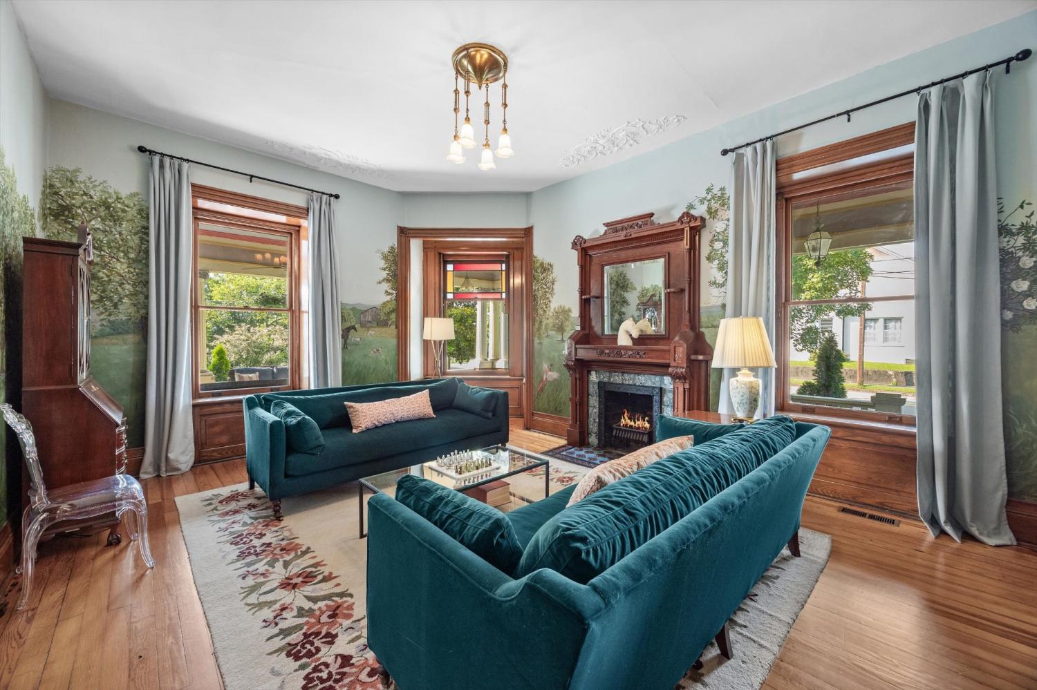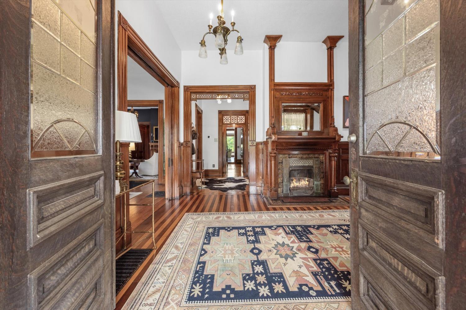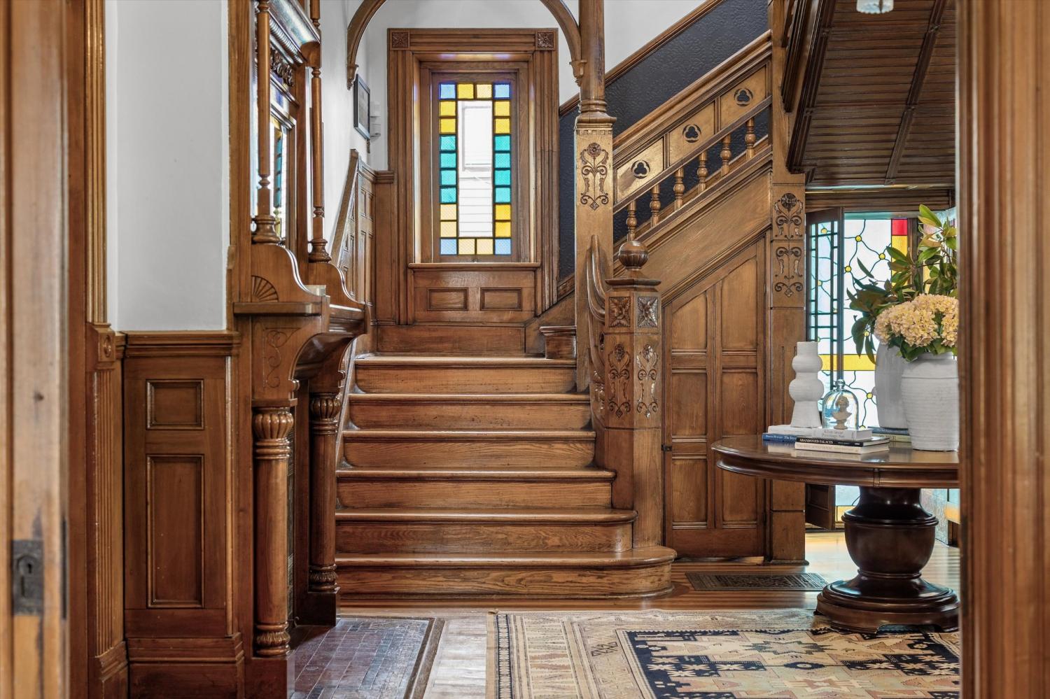 Built in 1889, the Lou-Mar House is a Queen Anne Victorian masterpiece by architect David Getaz, known for his work on the Knox County Courthouse. Once home to prominent families, it stands as one of East Tennessee's finest architectural examples and has been featured in HGTV and Knox News Sentinel. Enter through etched-glass double doors into a grand foyer showcasing six wood species. The parlor includes a custom mural by Mara Wilson, while the gentleman's parlor is now a maple wood library. The dining room boasts a boxed beam ceiling, with intricate woodwork, moldings, and period lighting throughout. Nine stained-glass windows, five ornamental fireplaces, and high-efficiency upgrades from 2023 add historic charm and modern comfort. The primary en suite features marble, custom cabinetry, and Rohl hardware, while first-floor baths have similar high-end finishes. The outdoor kitchen, completed in 2021, includes Blaze appliances, a gas fireplace, and a Sonos system. Landscaped grounds and a fully renovated carriage house offer versatile outdoor spaces. The main house provides six bedrooms, three and a half baths, a library, and a family room addition with a three-car garage. The renovated carriage house has two bedrooms and one and a half baths, ideal for guests or additional living space. Situated on a double lot at Scott and Harvey Streets, with a gated yard for privacy, the Lou-Mar House is minutes from downtown Knoxville, near restaurants, coffee shops, and a short bike ride to Gay Street and the University of Tennessee. The Great Smoky Mountains are just 45 minutes away, and an art magnet elementary school is nearby. This estate combines historic elegance with modern amenities, offering a rare opportunity to own a piece of Knoxville’s history. With its timeless architecture, luxurious finishes, and inviting spaces, the Lou-Mar House is truly unique in Knoxville.