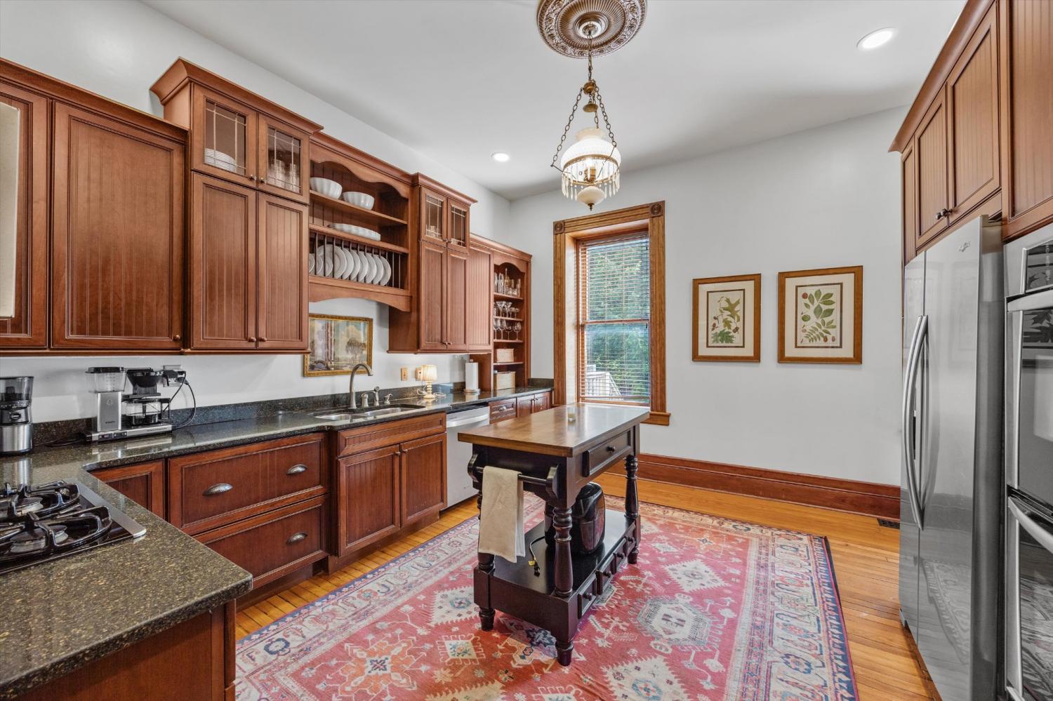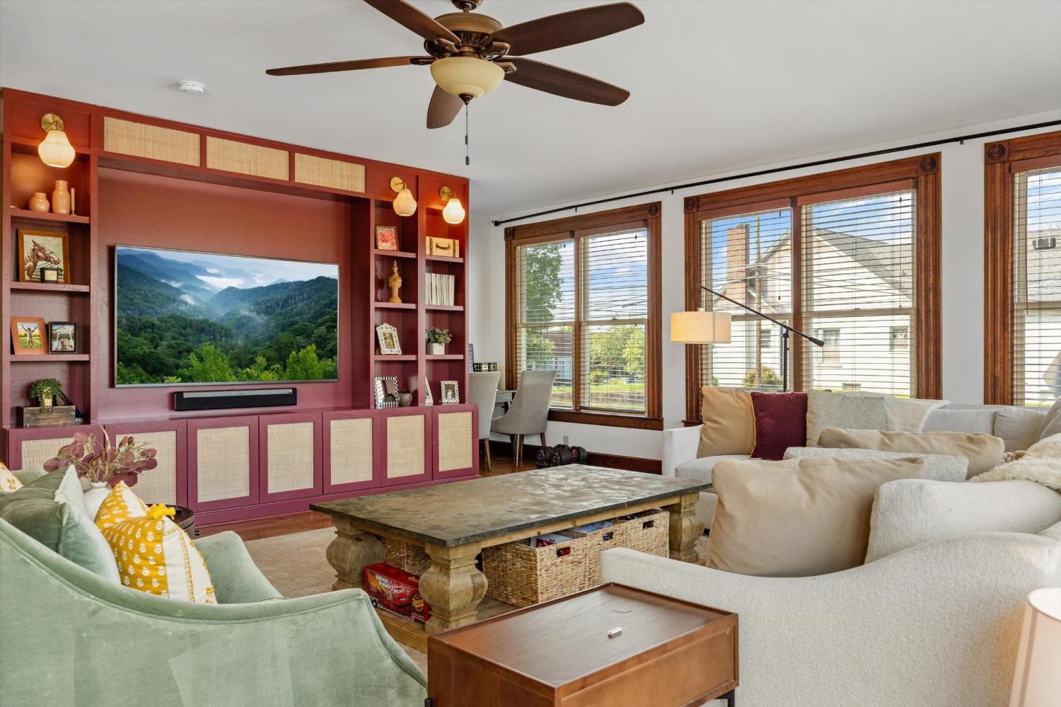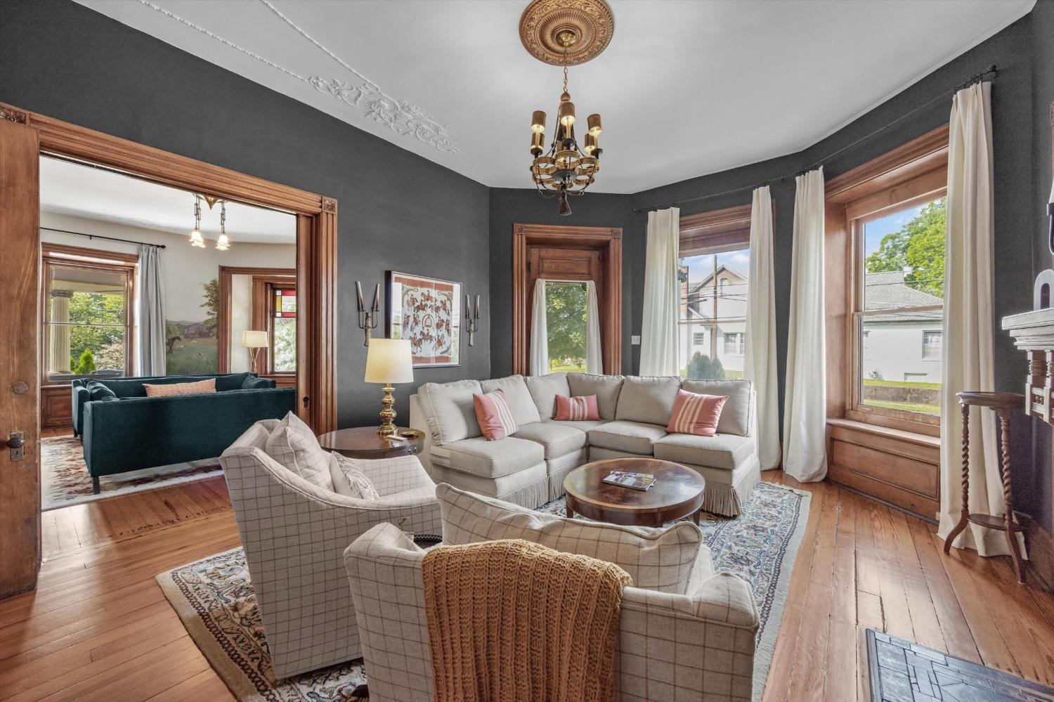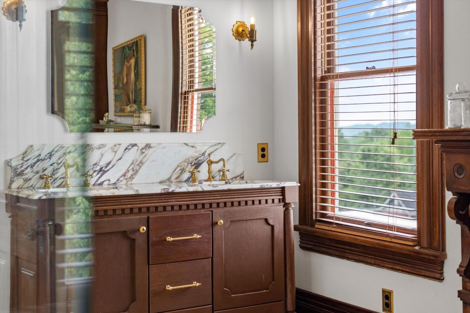 Built in 1889, the Lou-Mar House is a Queen Anne Victorian masterpiece by architect David Getaz, known for his work on the Knox County Courthouse. Once home to prominent families, it stands as one of East Tennessee's finest architectural examples and has been featured in HGTV and Knox News Sentinel. Enter through etched-glass double doors into a grand foyer showcasing six wood species. The parlor includes a custom mural by Mara Wilson, while the gentleman's parlor is now a maple wood library. The dining room boasts a boxed beam ceiling, with intricate woodwork, moldings, and period lighting throughout. Nine stained-glass windows, five ornamental fireplaces, and high-efficiency upgrades from 2023 add historic charm and modern comfort. The primary en suite features marble, custom cabinetry, and Rohl hardware, while first-floor baths have similar high-end finishes. The outdoor kitchen, completed in 2021, includes Blaze appliances, a gas fireplace, and a Sonos system. Landscaped grounds and a fully renovated carriage house offer versatile outdoor spaces. The main house provides six bedrooms, three and a half baths, a library, and a family room addition with a three-car garage. The renovated carriage house has two bedrooms and one and a half baths, ideal for guests or additional living space. Situated on a double lot at Scott and Harvey Streets, with a gated yard for privacy, the Lou-Mar House is minutes from downtown Knoxville, near restaurants, coffee shops, and a short bike ride to Gay Street and the University of Tennessee. The Great Smoky Mountains are just 45 minutes away, and an art magnet elementary school is nearby. This estate combines historic elegance with modern amenities, offering a rare opportunity to own a piece of Knoxville’s history. With its timeless architecture, luxurious finishes, and inviting spaces, the Lou-Mar House is truly unique in Knoxville.