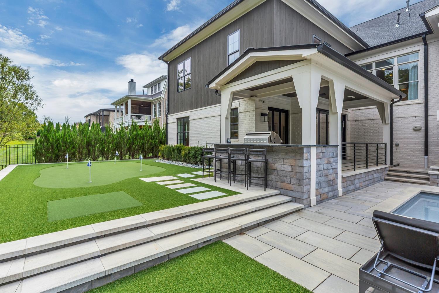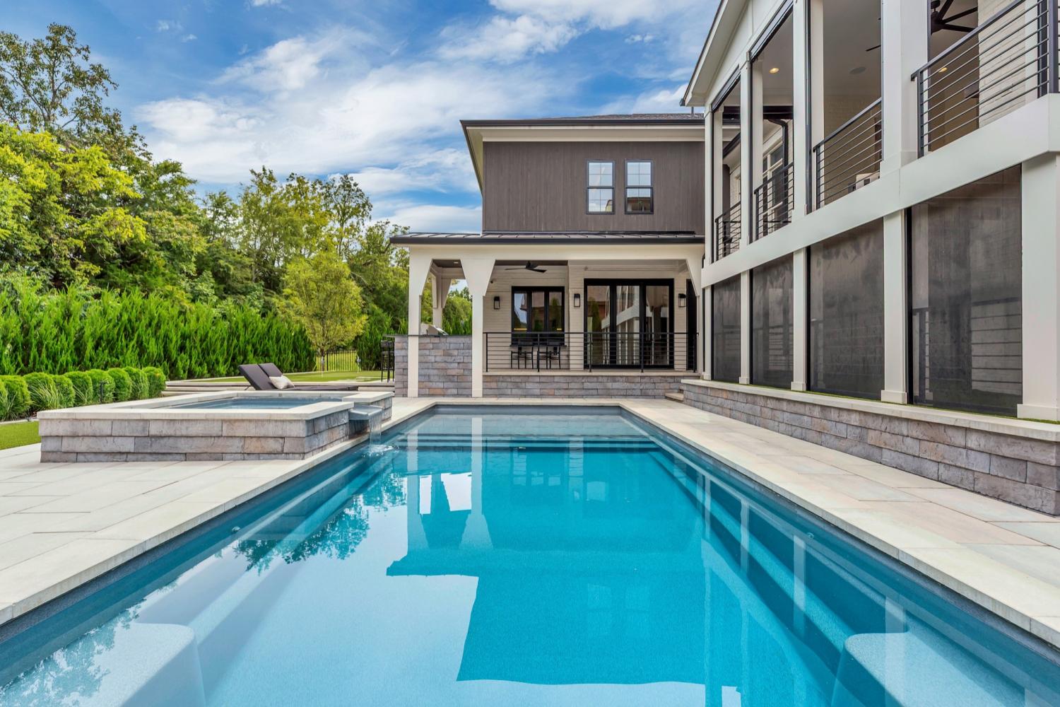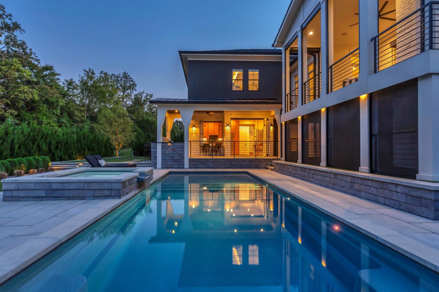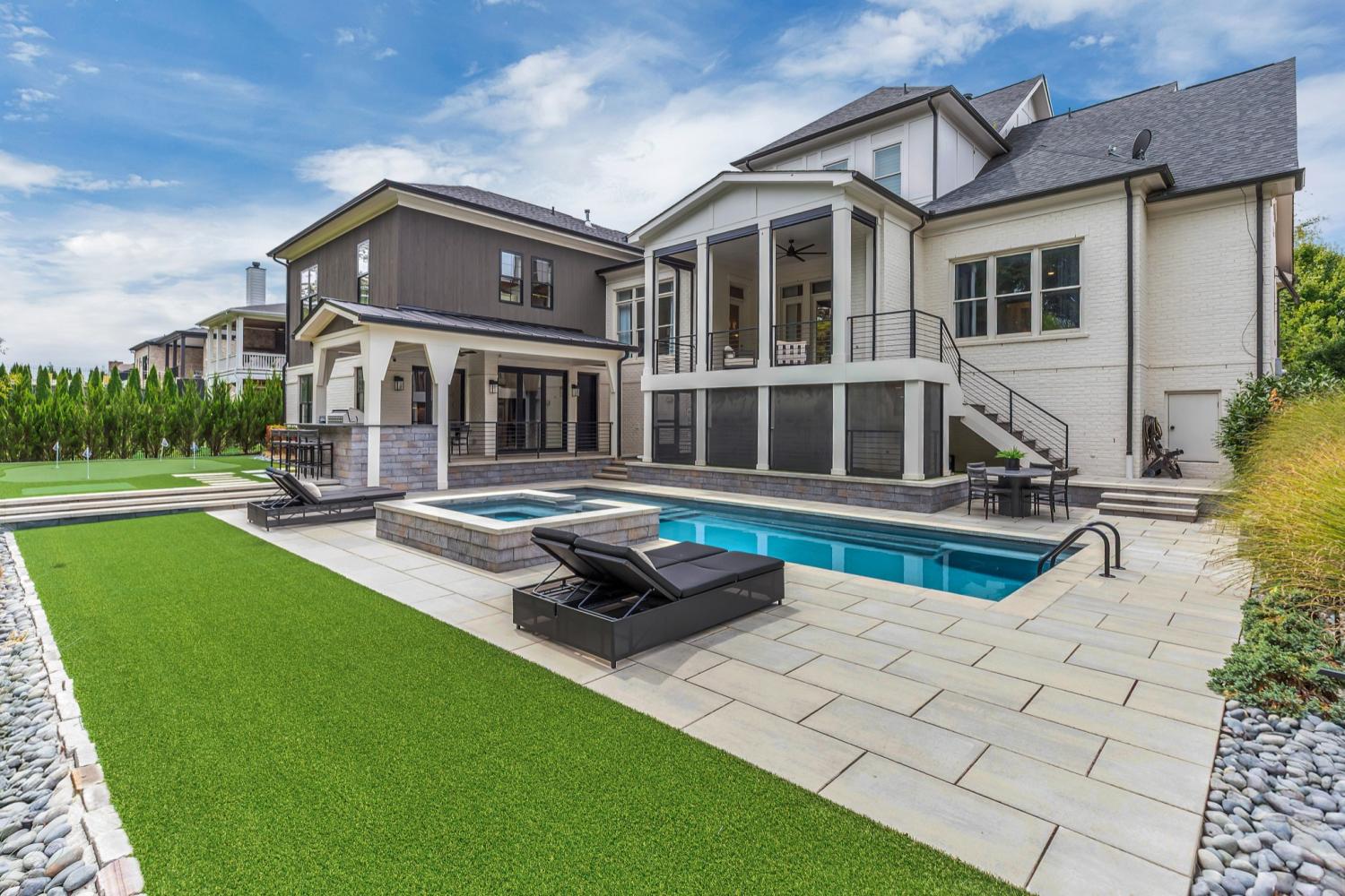 Experience refined Southern living in the prestigious Troubadour Golf & Field Club. This stunning 6-bedroom, 6 full and 2 half-bath residence offers an ideal blend of architectural elegance and everyday functionality. Thoughtfully designed interiors feature soaring ceilings, custom millwork, designer lighting, and rich hardwood flooring throughout. A grand foyer opens into a spacious living area with built-in shelving and floor-to-ceiling windows that flood the space with natural light. The kitchen impresses with marble finishes, high-end appliances, and a striking waterfall island—perfect for hosting. Retreat to the main-level primary suite with serene views, a spa-inspired bath, and spacious walk-in closets. Additional highlights include multiple en-suite guest rooms, a large bonus room, four-car garage, and specialty spaces such as a home theater, golf simulator, and second kitchen on pool level. Step outside to enjoy a covered lounge with fireplace, pool and spa, a private putting green, and lush professional landscaping. Set within a gated, amenity-rich community offering elite golf, fine dining, wellness facilities, and concierge services—this is Middle Tennessee living at its most elevated.