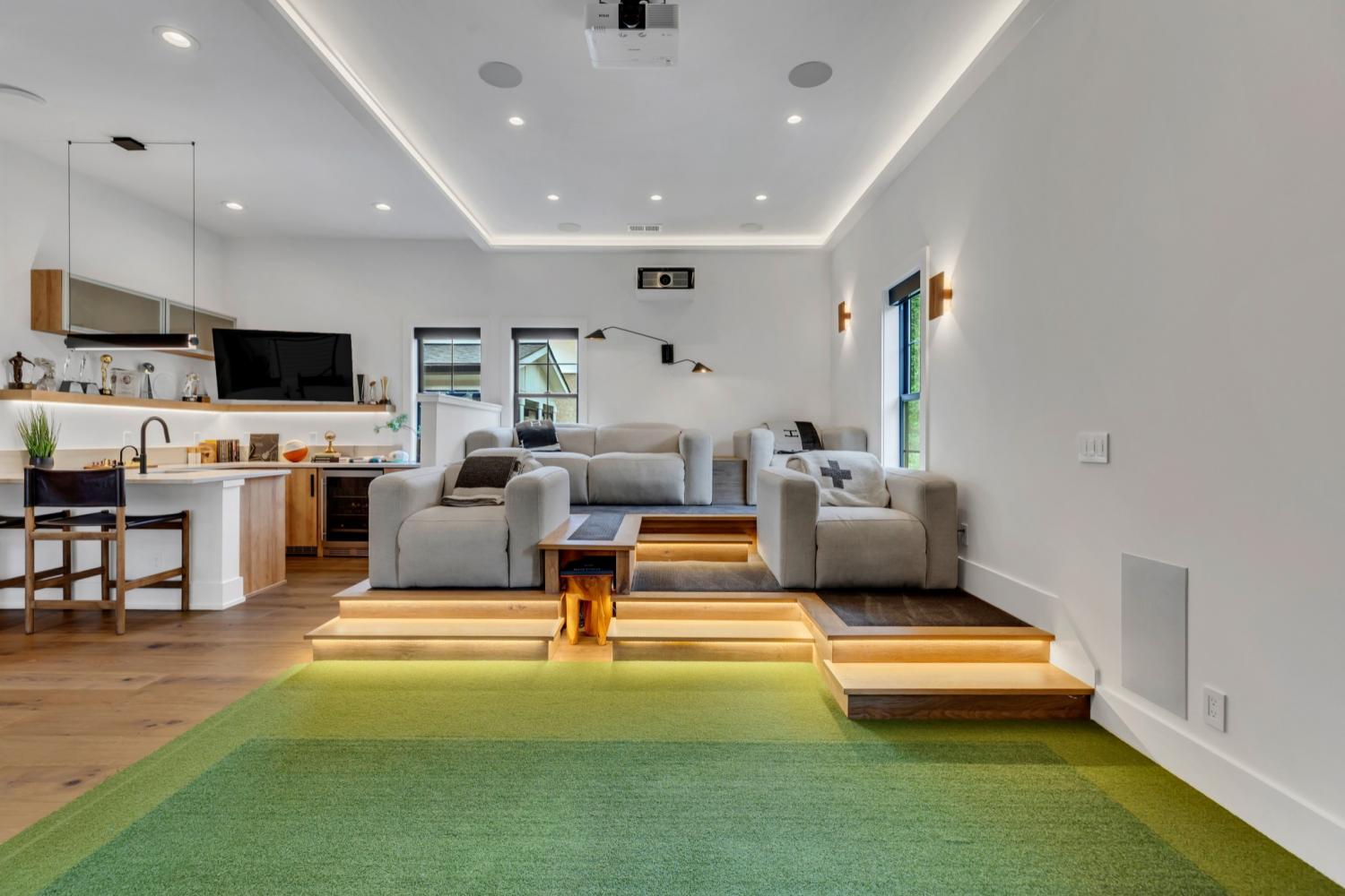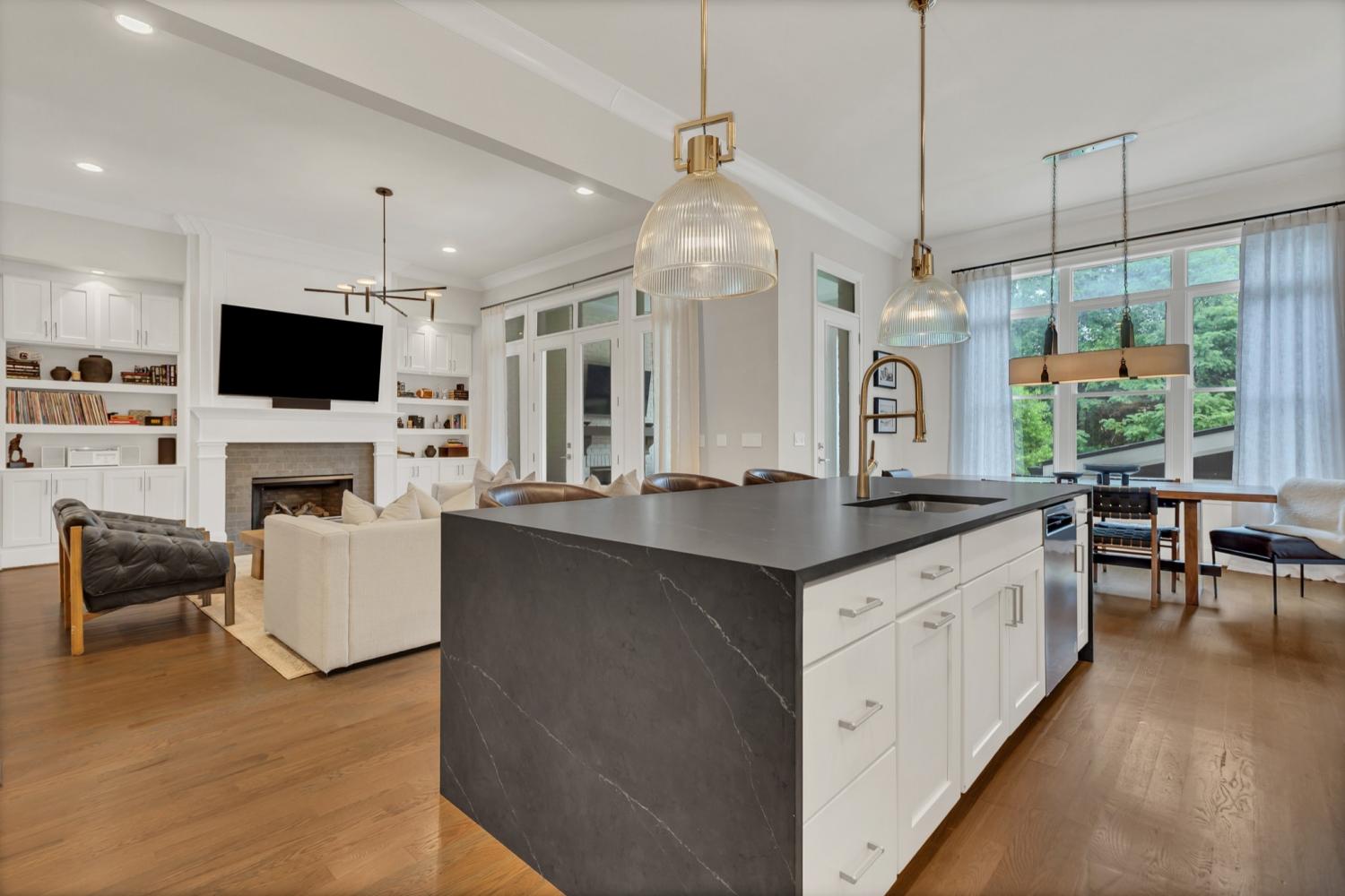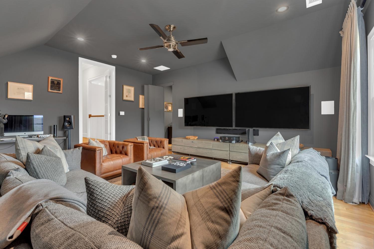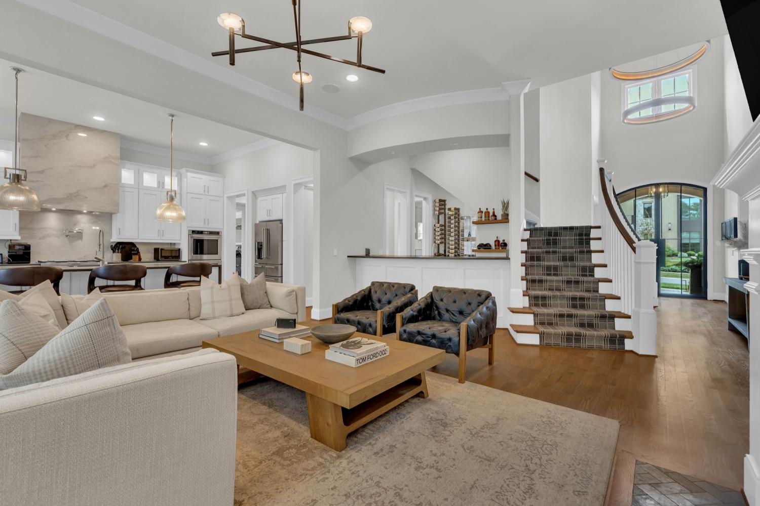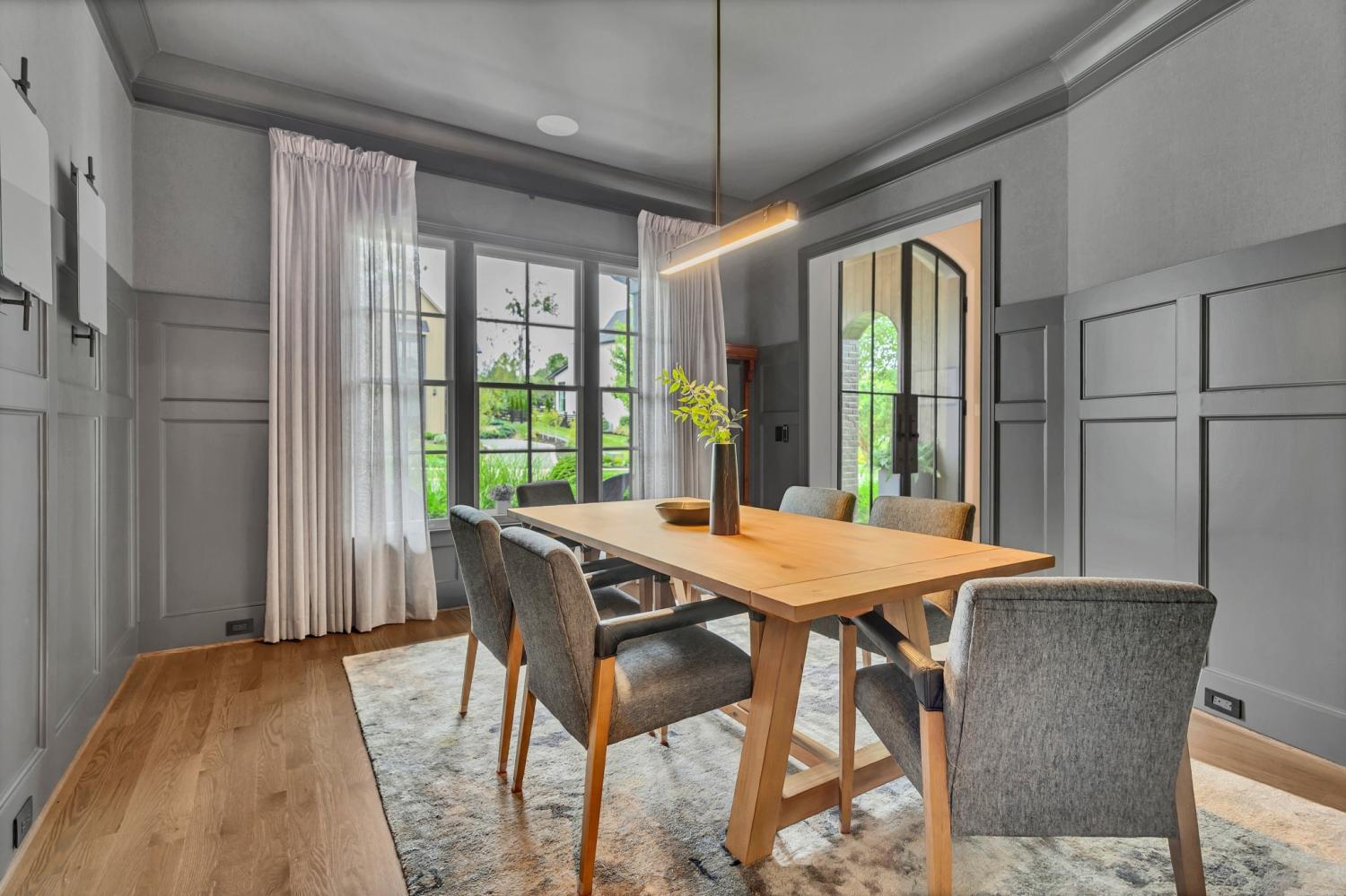 Experience refined Southern living in the prestigious Troubadour Golf & Field Club. This stunning 6-bedroom, 6 full and 2 half-bath residence offers an ideal blend of architectural elegance and everyday functionality. Thoughtfully designed interiors feature soaring ceilings, custom millwork, designer lighting, and rich hardwood flooring throughout. A grand foyer opens into a spacious living area with built-in shelving and floor-to-ceiling windows that flood the space with natural light. The kitchen impresses with marble finishes, high-end appliances, and a striking waterfall island—perfect for hosting. Retreat to the main-level primary suite with serene views, a spa-inspired bath, and spacious walk-in closets. Additional highlights include multiple en-suite guest rooms, a large bonus room, four-car garage, and specialty spaces such as a home theater, golf simulator, and second kitchen on pool level. Step outside to enjoy a covered lounge with fireplace, pool and spa, a private putting green, and lush professional landscaping. Set within a gated, amenity-rich community offering elite golf, fine dining, wellness facilities, and concierge services—this is Middle Tennessee living at its most elevated.
