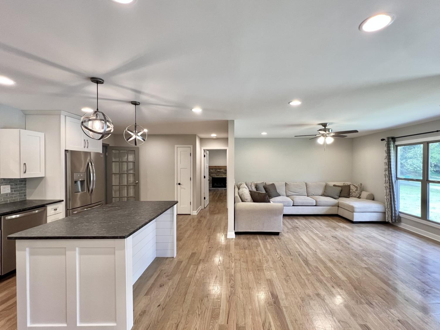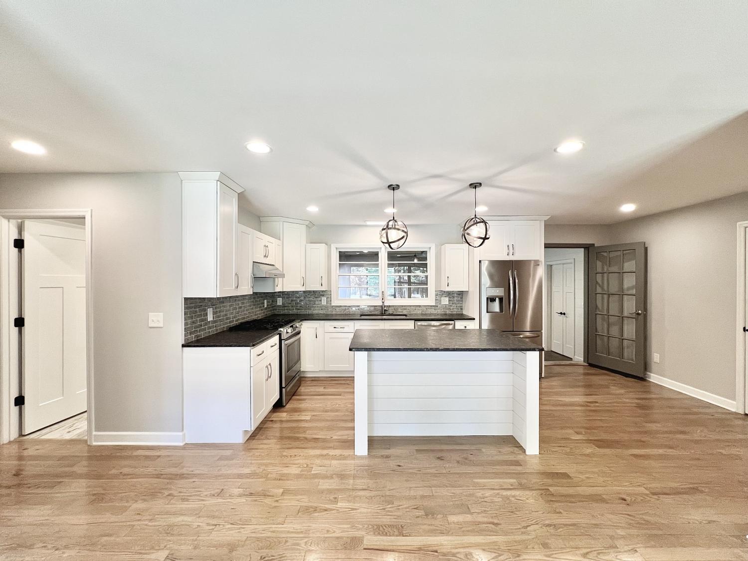 Every square inch of this home has been rebuilt, creating a space that feels brand new while sitting on a rare double lot in the heart of Pulaski. This 3 bed, 2 bath property combines the quality of new construction with a quiet private setting just minutesh from the town square. Inside you’ll find a bright open feel with lots of windows, hardwood floors, recessed lighting, stylish hanging fixtures & custom finishes throughout. The kitchen features granite counters, a large island with extra storage, stainless steel appliances that convey + a pantry. Both bathrooms include oversized walk in tiled showers and designer details. The primary bathroom has a double vanity and walk in closet & the guest bathroom includes a large storage closet. The oversized primary suite is anchored by a stone and western cedar fireplace accented with shiplap above. The two additional bedrooms have nice sized closets & the hallway includes an extra storage space. A light filled sunroom with stamped concrete floors provides flexible living space that could serve as a 4th bedroom, office, or bonus room & features a unique wooden ceiling, wooden ceiling fan + drop zone with shiplap detail. A large walk in utility room with an instant hot water heater and plenty of storage adds everyday function + washer and dryer will remain. Renovations include a *brand new* HVAC system less than a month old along with newer roof, windows, gutters, plumbing, electrical, insulation, and drywall. The interior has just been freshly repainted for a clean move in ready feel. Outside, curb appeal shines with painted brick, a new concrete sidewalk & a gravel parking pad with space for 4-6 vehicles. A 40x20 storage shed offers ample room, and the seller will move the portable carport over the gravel pad if the buyer prefers. With all systems updated, abundant storage & nearly an acre of land, this home is truly move in ready! Recently appraised at $394k, it gives the next owner instant equity and peace of mind!