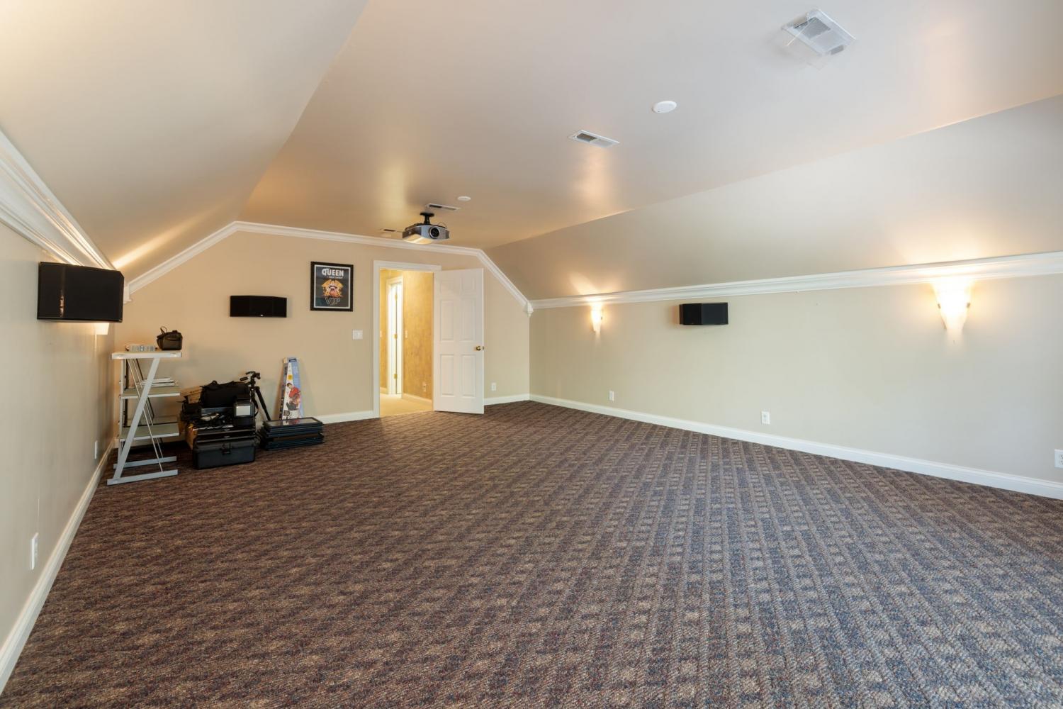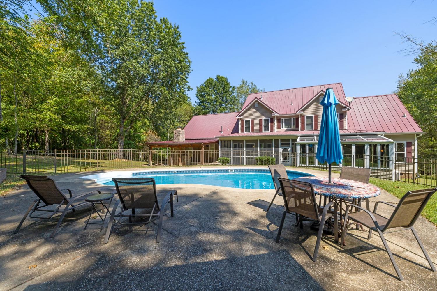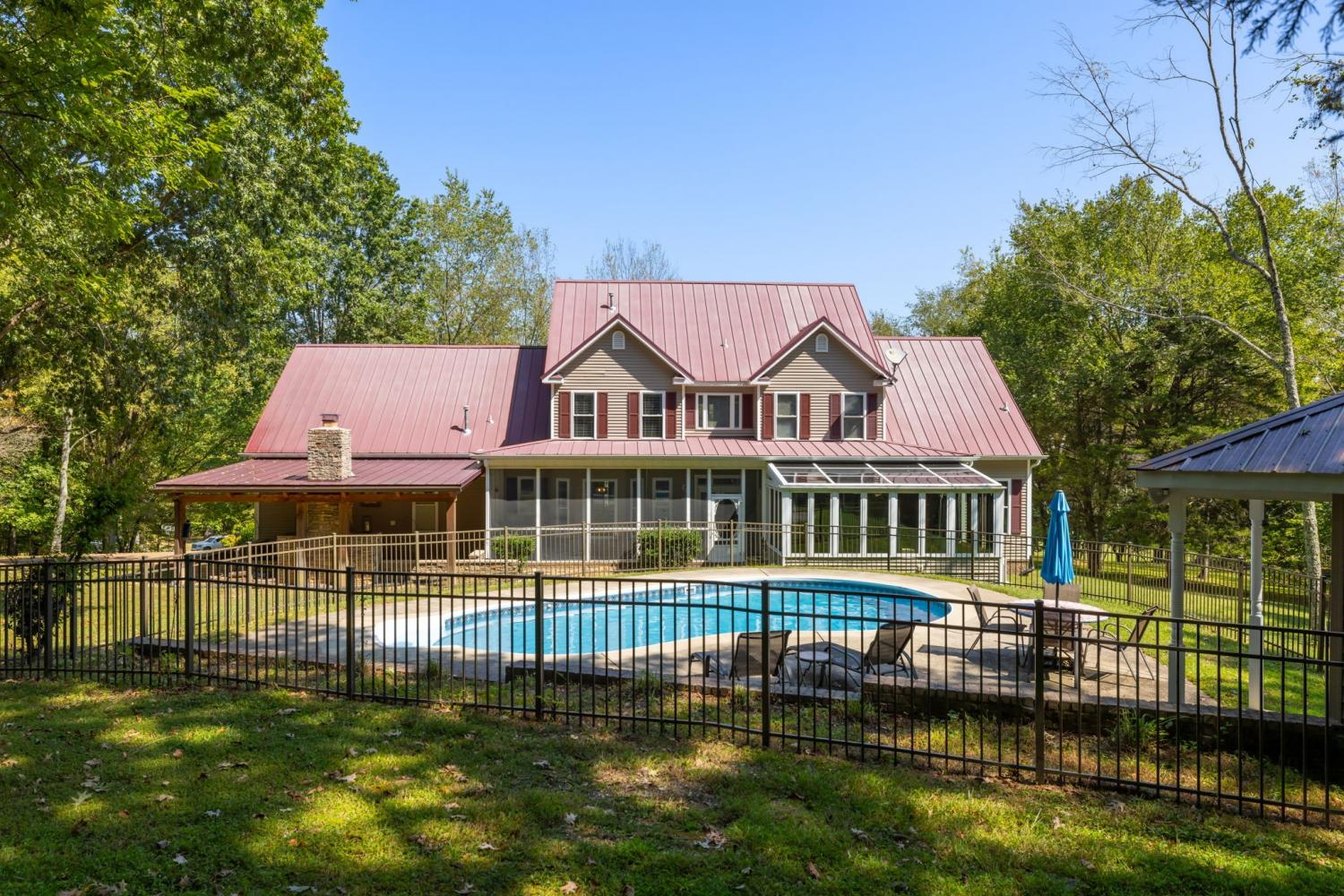 REDUCED PRICE! Enjoy the privacy of this beautiful home,designed with both comfort and entertainment in mind. The family room is equipped with surround sound & built in bookcases. The spacious master suite is conveniently located on the main level, with 3 additional bedrooms upstairs & plenty of storage throughout. Included is a storm/safe room, a security system and an underground dog fence for peace of mind. This home was made for making memories-from the sunny afternoons by the inground pool to the cozy nights in the theater room. In the evenings, gather under the covered porch & enjoy the glow of the beautiful stone fireplace. There is a 2400 sq ft well insulated second dwelling built using pegged purlin construction to withstand 120 mph winds. The pre engineered, clear span (no rafters) is designed by Dandi Systems. It is a true bonus space & dream for both kids & adults. It includes two sixteen ft roll up doors & double pane windows. Inside you'll find a rock-climbing wall, basketball court, loft hangout area, mini kitchenette, full bath, epoxy flooring & mounted air compressor. With its own septic system, it's the perfect spot for recreation, hosting, or even guest stays. The property features a thriving fruit & nut orchard, along with both a fresh water well & city water. The property sits within the greenbelt, offering added privacy & natural beauty. Blending luxury, lifestyles, & endless possibilities, this remarkable estate is an opportunity not to be missed!