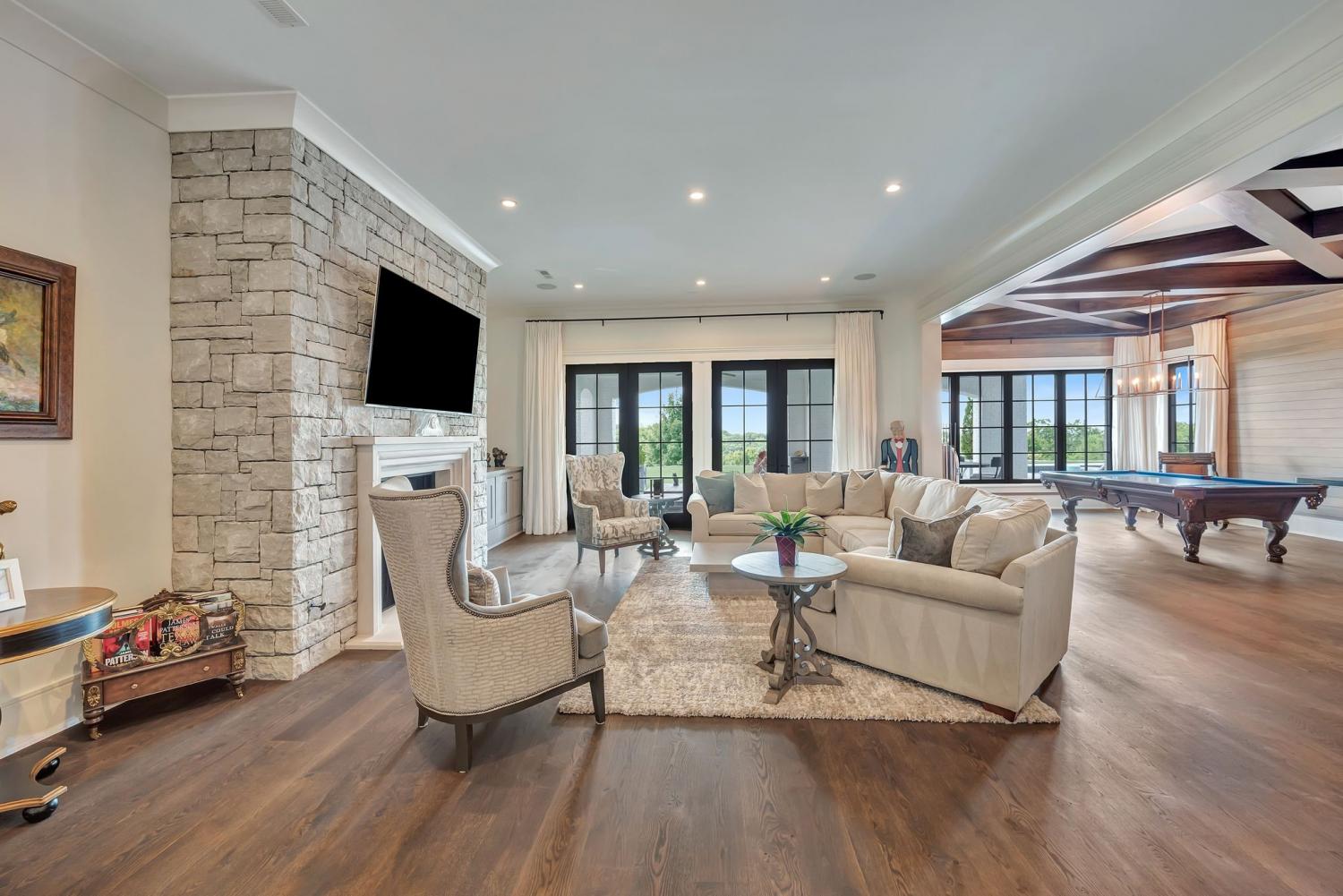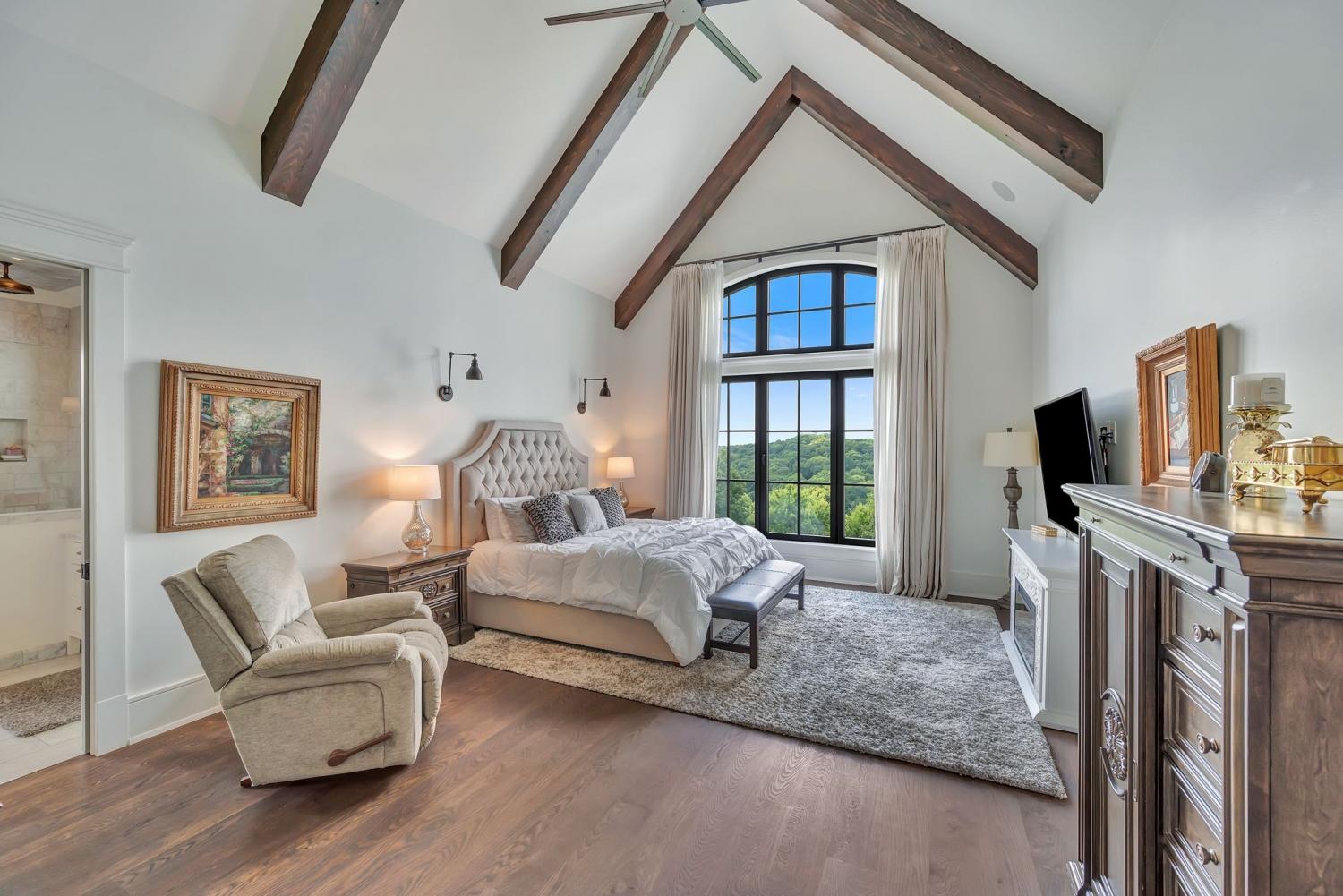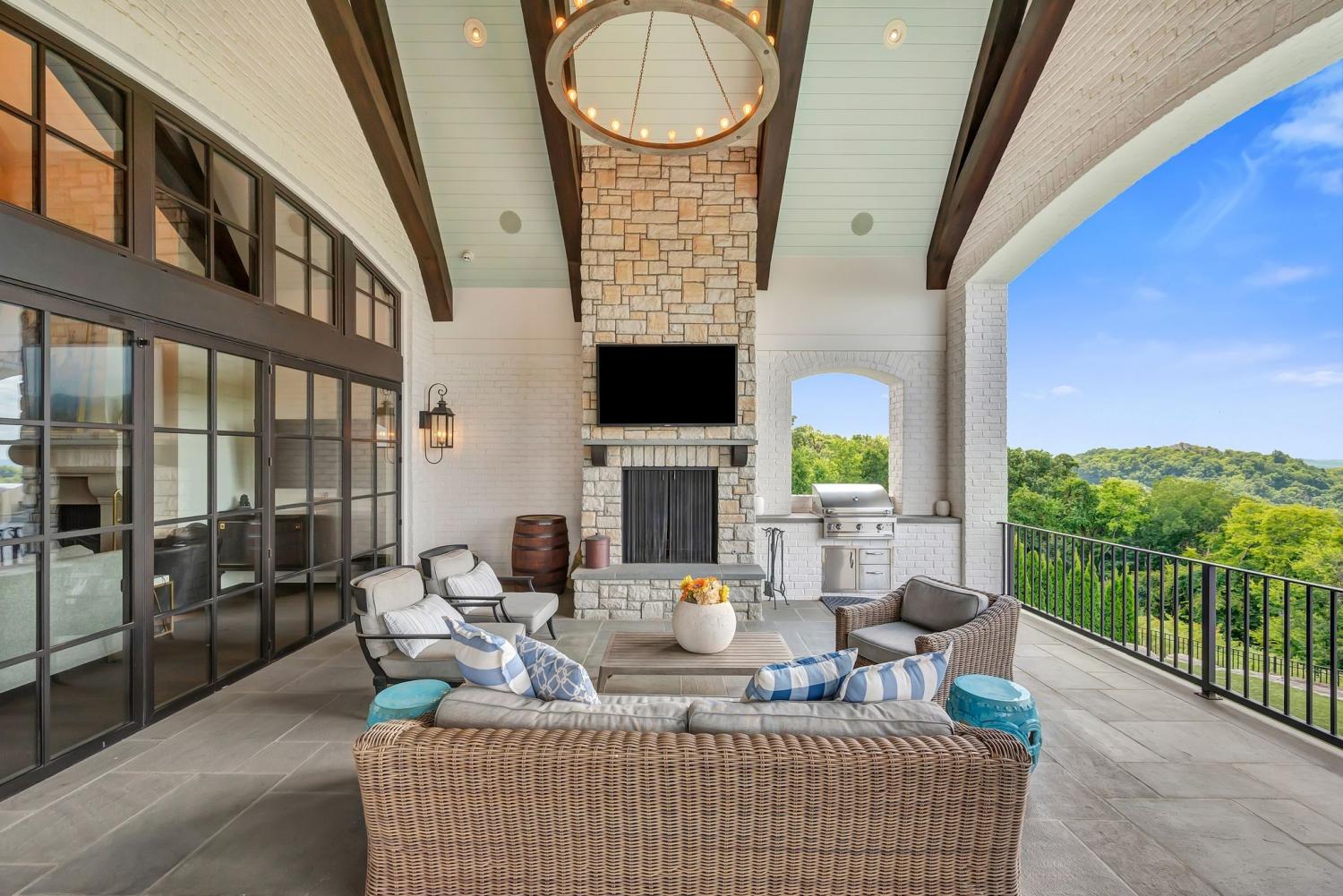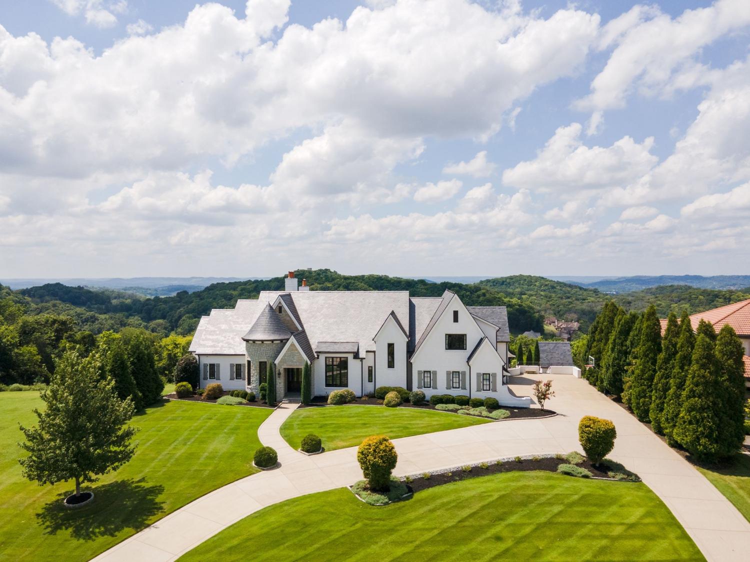Perched atop a premier vantage point in the prestigious Avalon gated community, this exceptional residence offers breathtaking 180-degree views of the rolling Tennessee hills. Combining timeless elegance with state-of-the-art amenities, this 5-bedroom, 5 full bath, 3 half bath home (including a pool bath) is a rare opportunity for the discerning buyer. Step inside to discover over-the-top craftsmanship, from the dramatic Tourette staircase to the gleaming hardwoods and designer finishes throughout. The expansive floor plan includes a formal living room, two offices, gourmet chef’s kitchen, and seamless indoor-outdoor flow ideal for entertaining on any scale. A stunning 108-bottle wine cellar on the lower level, large safe room, and private elevator provide luxury and security, while geothermal HVAC ensures energy efficiency. The resort-style backyard features a sparkling salt water pool, spa and fire pit, Astro turf for year-round low-maintenance greenery, and a fully equipped outdoor living space for al fresco dining or quiet evening retreats. Enjoy the beauty of manicured Zoysia fairway grass in the front yard, while the durable slate roof crowns this stately residence in style. Storage is abundant throughout, with thoughtfully designed built-ins and generous closet space in every room and a laundry room up and down. This home offers refined living with every modern convenience, wrapped in serene natural beauty. A true masterpiece of comfort, security, and sophisticated style.