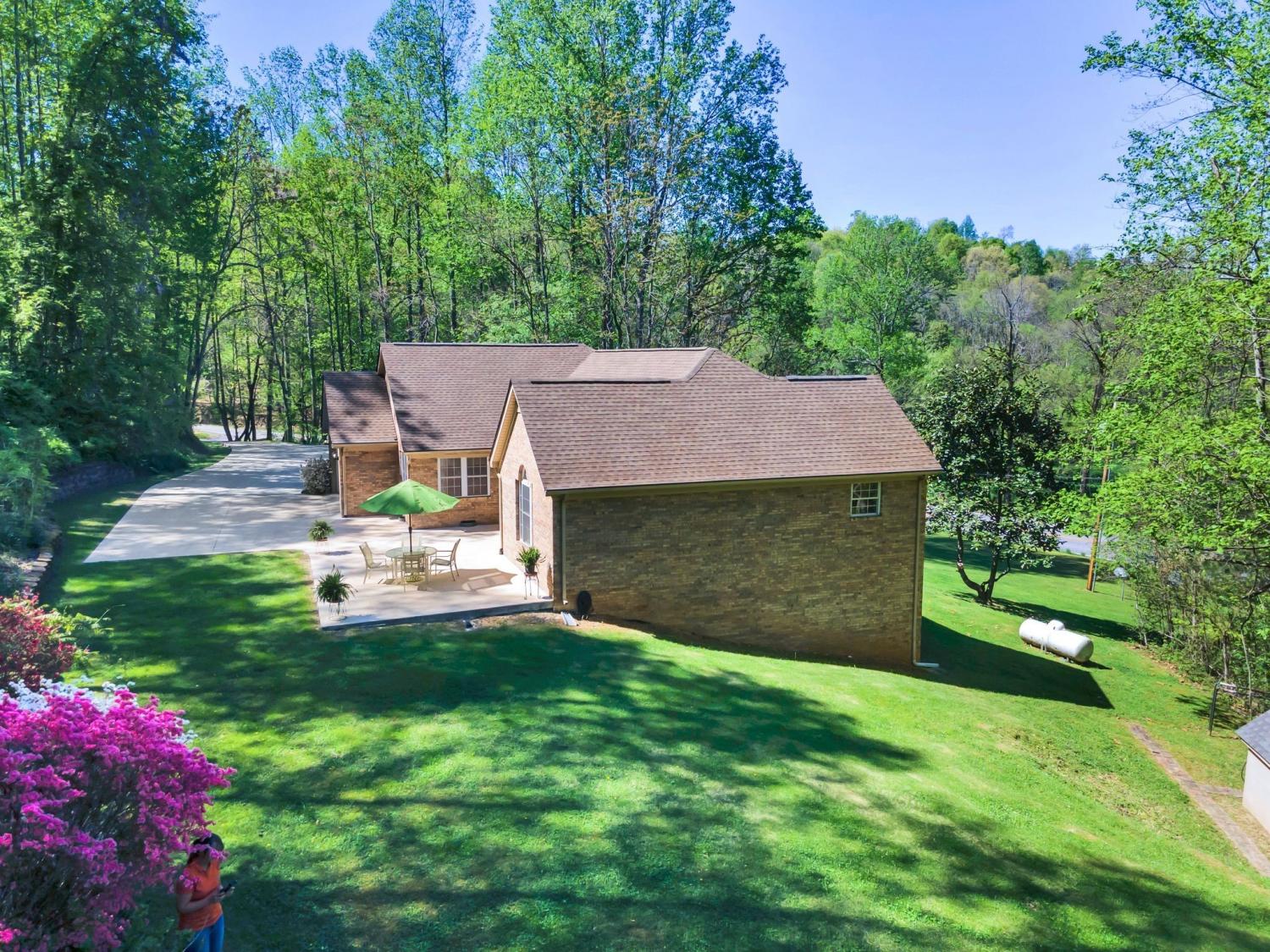 Nestled on 12 scenic acres in beautiful Lynchburg, TN, this spacious all-brick home offers the perfect blend of privacy, comfort, and versatility. It features a brand-new roof, a rocking chair front porch, and a back patio overlooking a park-like backyard with mature trees and abundant wildlife. Inside, the inviting foyer includes hardwood floors that lead to an open living room, formal dining room and spacious eat-in kitchen with stainless steel appliances and generous counter space and cabinetry for storage. Sunlight fills the space making it light and bright! The main level features 3 bedrooms and 2 full baths including a primary retreat with ensuite. Downstairs, the possibilities are endless! The full walk out basement is HUGE and includes a bedroom, full bath, bonus room, and multiple rooms for a possible office, home-gym, work room or other creative space. Would even be perfect for a music studio! All appliances including Washer and Dryer remain! Enjoy easy access to all that Lynchburg has to offer, including the Moore County Library, Jack Daniel’s Distillery, and Tims Ford Lake. This home is a must-see!
