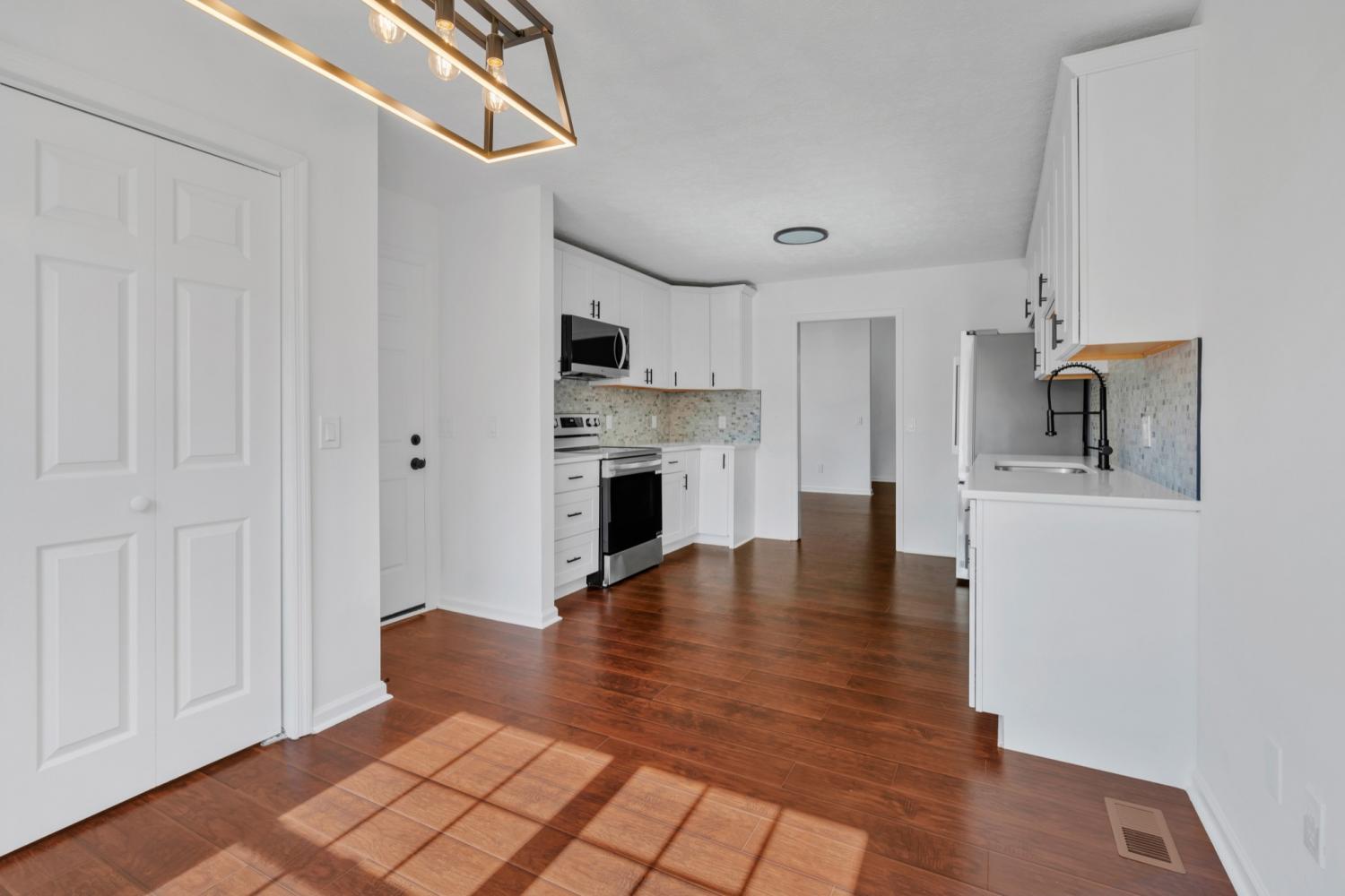This floor plan flows seamlessly from the great room into the dining and kitchen areas — ideal for both daily living and entertaining. Fresh paint, new flooring, and refinished cabinets throughout give the home a light, airy, modern feel. The kitchen and bathrooms have been renovated with a clean, updated aesthetic and functional layouts. A cozy fireplace in the great room adds warmth and character. The full brick exterior provides classic curb appeal and low maintenance. The backyard is great for outdoor gatherings, gardening, or simply enjoying fresh air and privacy. You're minutes away from shopping, dining, and essential amenities, with easy access to major roads and commuter routes. The area strikes a balance between peaceful residential living and urban convenience. This home is a Must See!!
