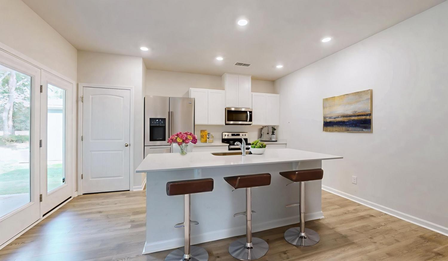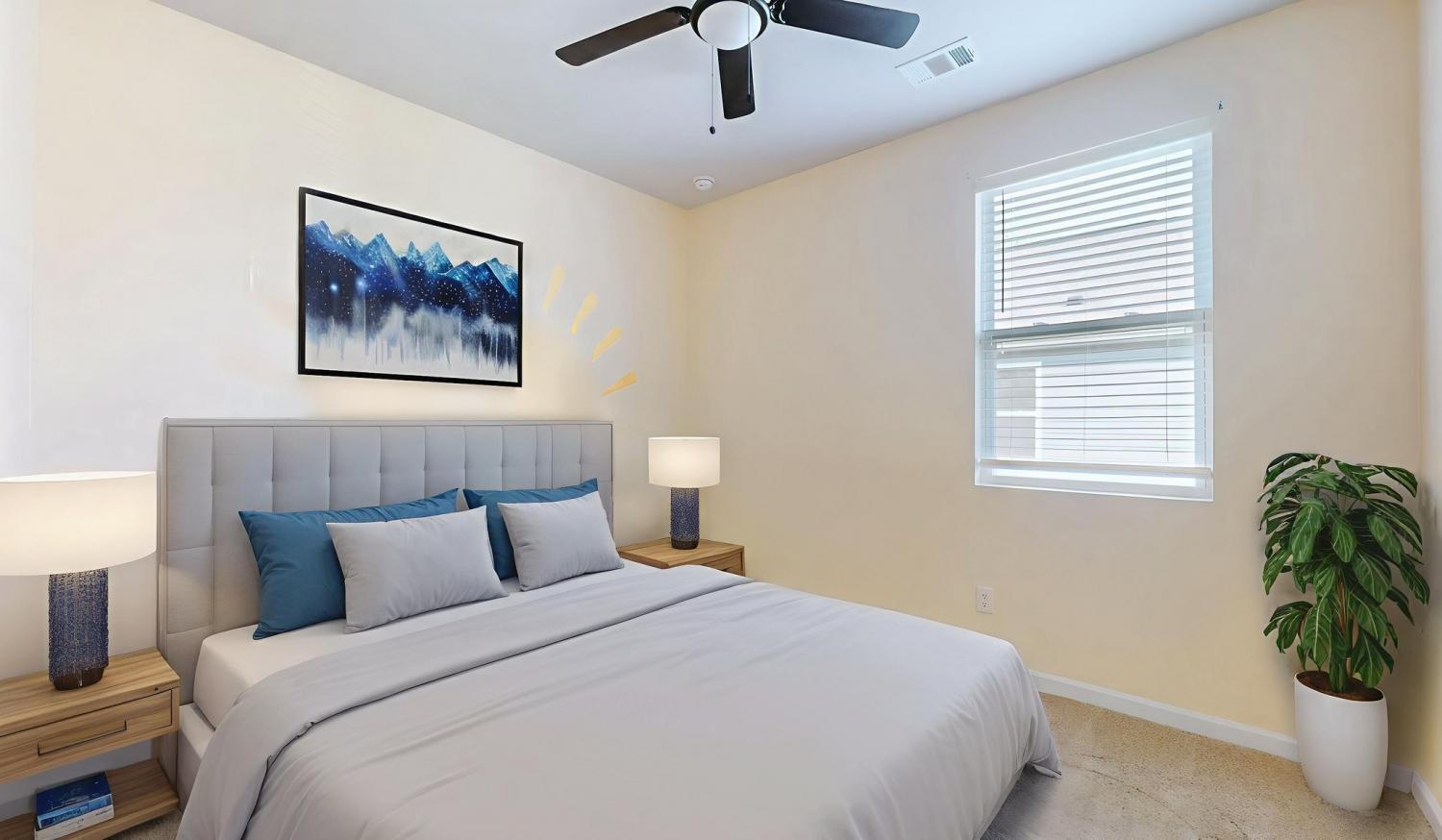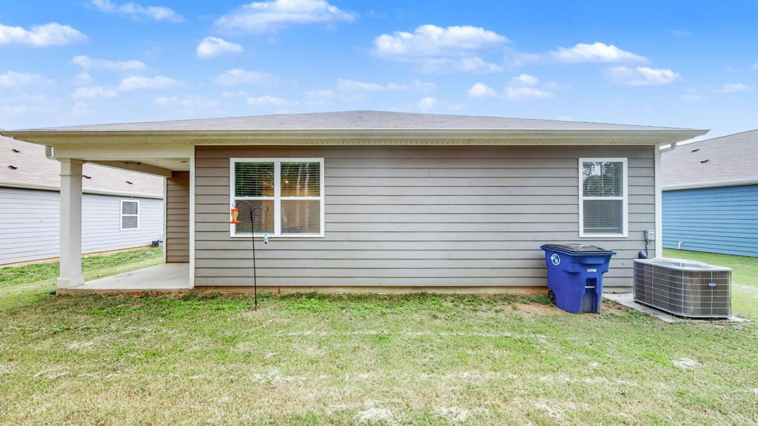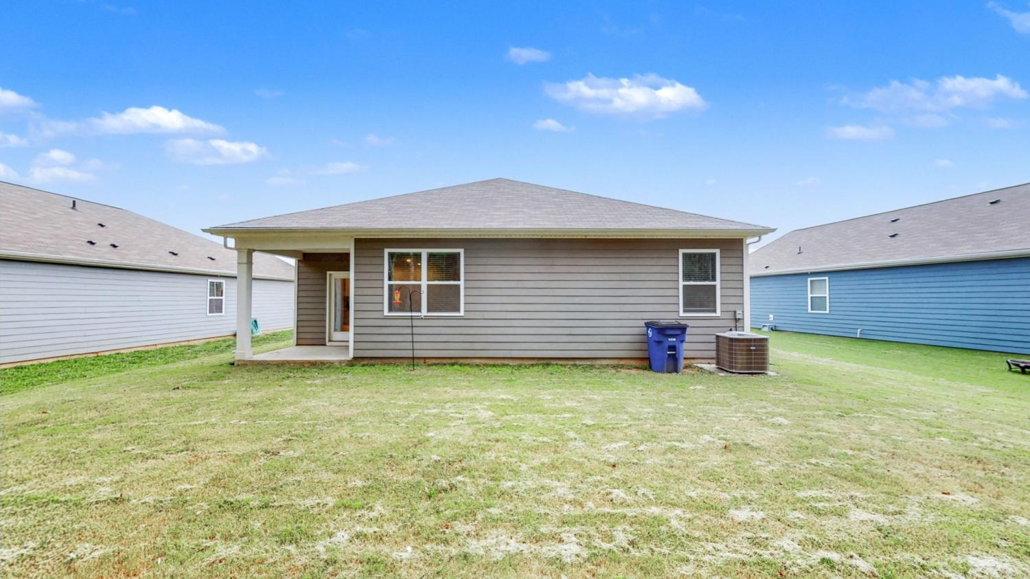 Move in ready! Well-maintained 3-bedroom, 2-bath home located in a quiet, family-oriented HOA community. The property features a partially brick exterior, an open floor plan with vaulted ceilings, and a spacious living room. The kitchen includes stainless steel appliances, ample cabinetry, and generous counter space. The primary suite offers a walk-in closet and private bath, while two additional bedrooms provide options for family, guests, or office use. A covered back patio extends the living space outdoors, ideal for relaxing or entertaining. Conveniently situated near schools, parks, and local amenities.