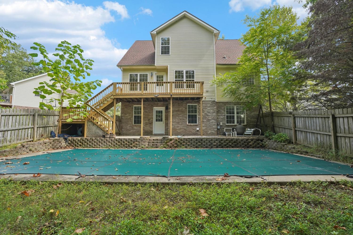 Welcome to 288 Sunny Slope Court, an elegantly appointed residence nestled in the charming, highly desired Poplar Hill community in the 37043 zip code of Clarksville, Tennessee. With its renovated contemporary design and spacious floor plan, this home offers refined living across 2,585 square feet. Boasting four bedrooms and two and a half bathrooms, it provides ample space for relaxation and entertainment. Upon entering, you're greeted by high ceilings and an inviting atmosphere accentuated by hardwood laminate floors and a stylish gas log fireplace. The chef's kitchen is a culinary delight, featuring quartz countertops, eat at island, stainless steel appliances, a walk in pantry, and conveniences such as a dishwasher, refrigerator with ice maker and disposal. The adjoining dining area opens to a deck overlooking the in ground pool, perfect for outdoor dining. The primary suite is a serene retreat, complete with a luxurious en suite bath featuring a walk in closet, dual vanities, a freestanding soaking tub and a walk-in tile and glass shower. Additional highlights include short commute to top rated schools, high speed internet, utility room, central heating and air conditioning, ensuring year-round comfort. Step outside to discover your private oasis, where a in ground pool awaits, surrounded by a generous lot of .71 acre wooded lot. The outdoor space offers a covered front porch, covered patio and deck, ideal for hosting gatherings or unwinding in peace. With amenities such as a full partially finished basement with two car garage and plenty of concrete driveway parking, convenience is at your doorstep. Pool was last open in Spring 2025.