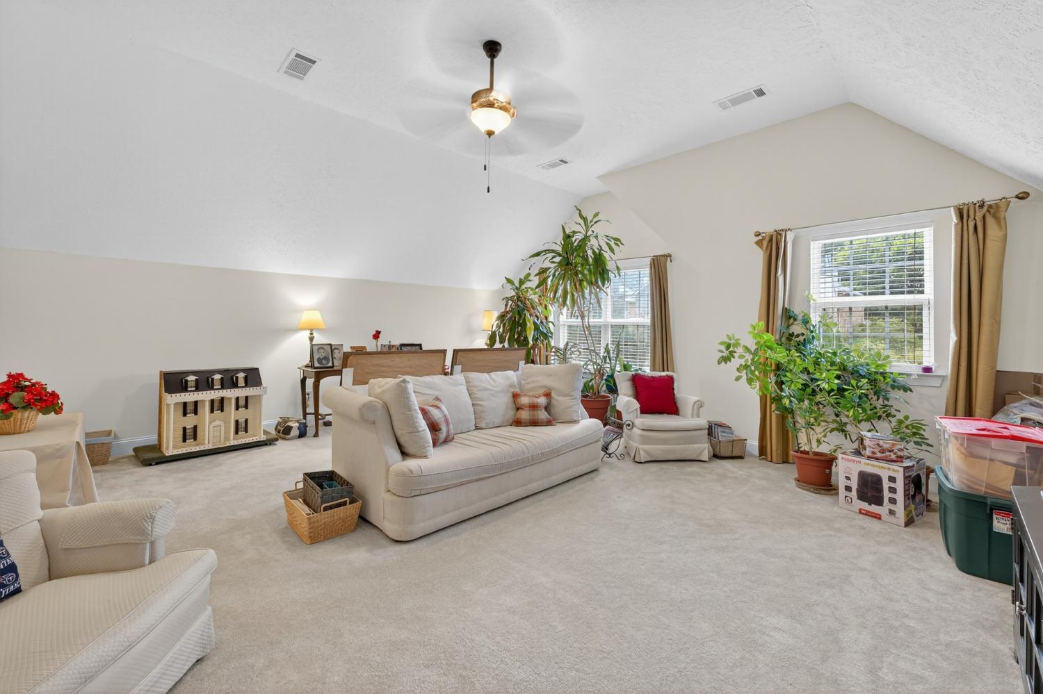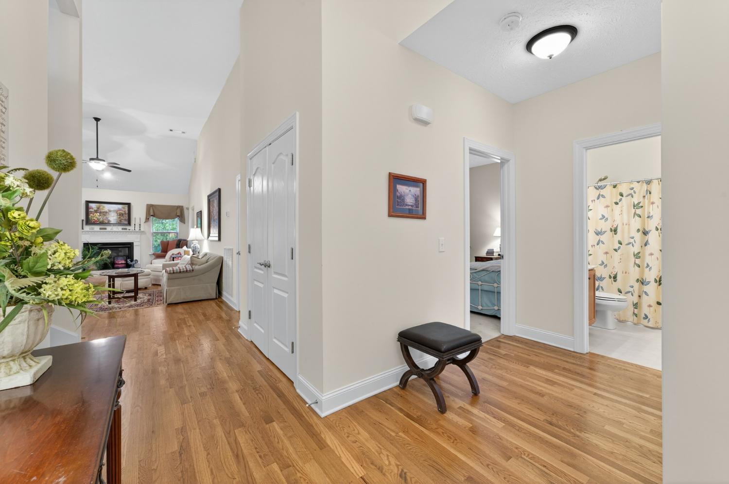 Original owner! Four side brick home is in well cared for condition. Entry opens to spacious living room offering fireplace and 14 foot ceiling. Kitchen with huge pantry and open to dining with bay window. Primary bedroom provides trey ceiling, walk-in closet and full bath. Bath includes step in shower and double sinks. 2nd and 3rd bedrooms share a bath with bathtub/shower combination. Front bedroom has trey ceiling. Bonus room above garage offers abundant natural light and permanent steps to attic for extra storage. Hardwoods throughout except for bedrooms and bonus room. Deck overlooks lovely backyard and mature trees. HVAC replaced in approximately 2020. Water heater approximately 7 years old. Storm doors added by seller. Utility Companies: NES, Metro Water and Piedmont Natural Gas.