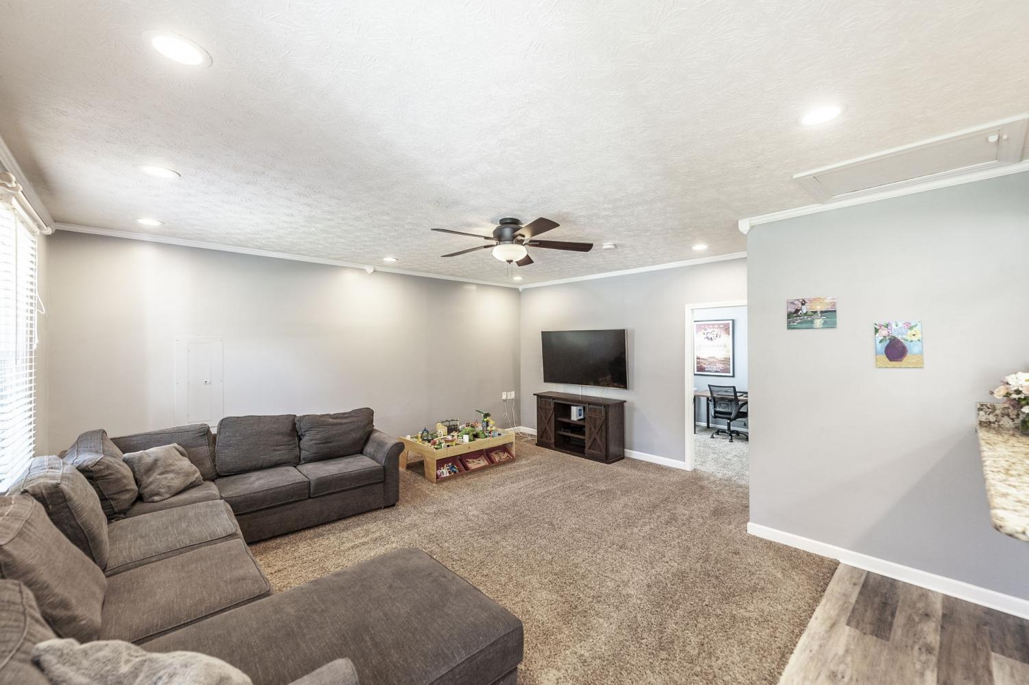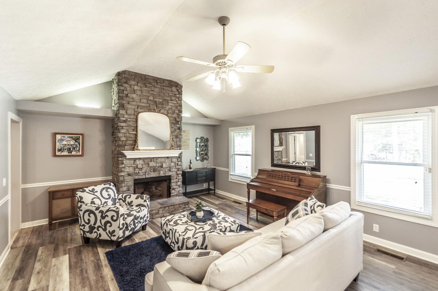 BRAND NEW ROOF! Enjoy single-level living in a delightful neighborhood with NO HOA. The well designed floorplan provides a spacious 3 bedrooms, 3 bathrooms and an office on a large half acre lot with a generous yard. Step inside from the covered front porch into a bright and airy great room, complete with vaulted ceilings and a stunning stone fireplace. The kitchen is open to the den and features a gas stove, abundant cabinet and countertop space, and convenient pull-out shelving in every cabinet. Just beyond the kitchen, you’ll find a large laundry room and walk-in pantry that lead to an oversized garage with built-in shelving and fast EV charging. Enjoy outdoor living on the fabulous back deck that overlooks a private, partially fenced backyard. Off the roomy den, there’s a dedicated home office and a half bath. Speaking of baths, enjoy endless hot water with the energy-efficient tankless water heater, a great bonus for busy households. The primary suite offers a tiled walk-in shower and walk-in closet. The sizable second and third bedrooms are located near a second full bath. Conveniently located just 5 minutes from I-65 and within close proximity to all White House schools. RECEIVE UP TO 1% LENDER CREDIT TOWARDS CLOSING COST WITH USE OF PREFERRED LENDER. Additional restrictions may apply.