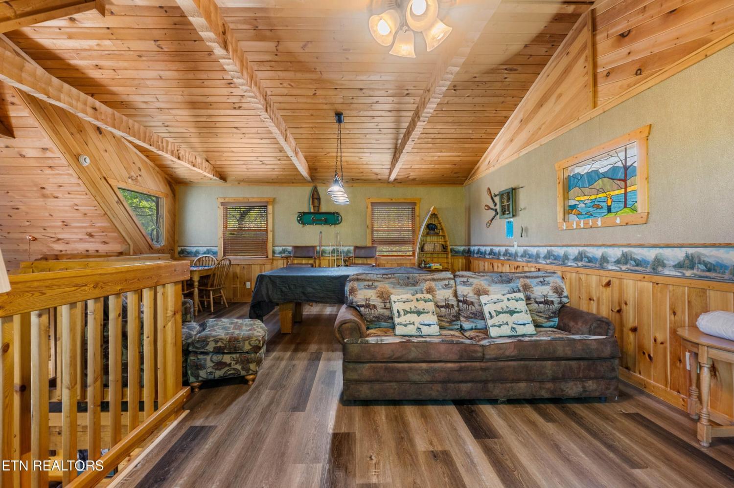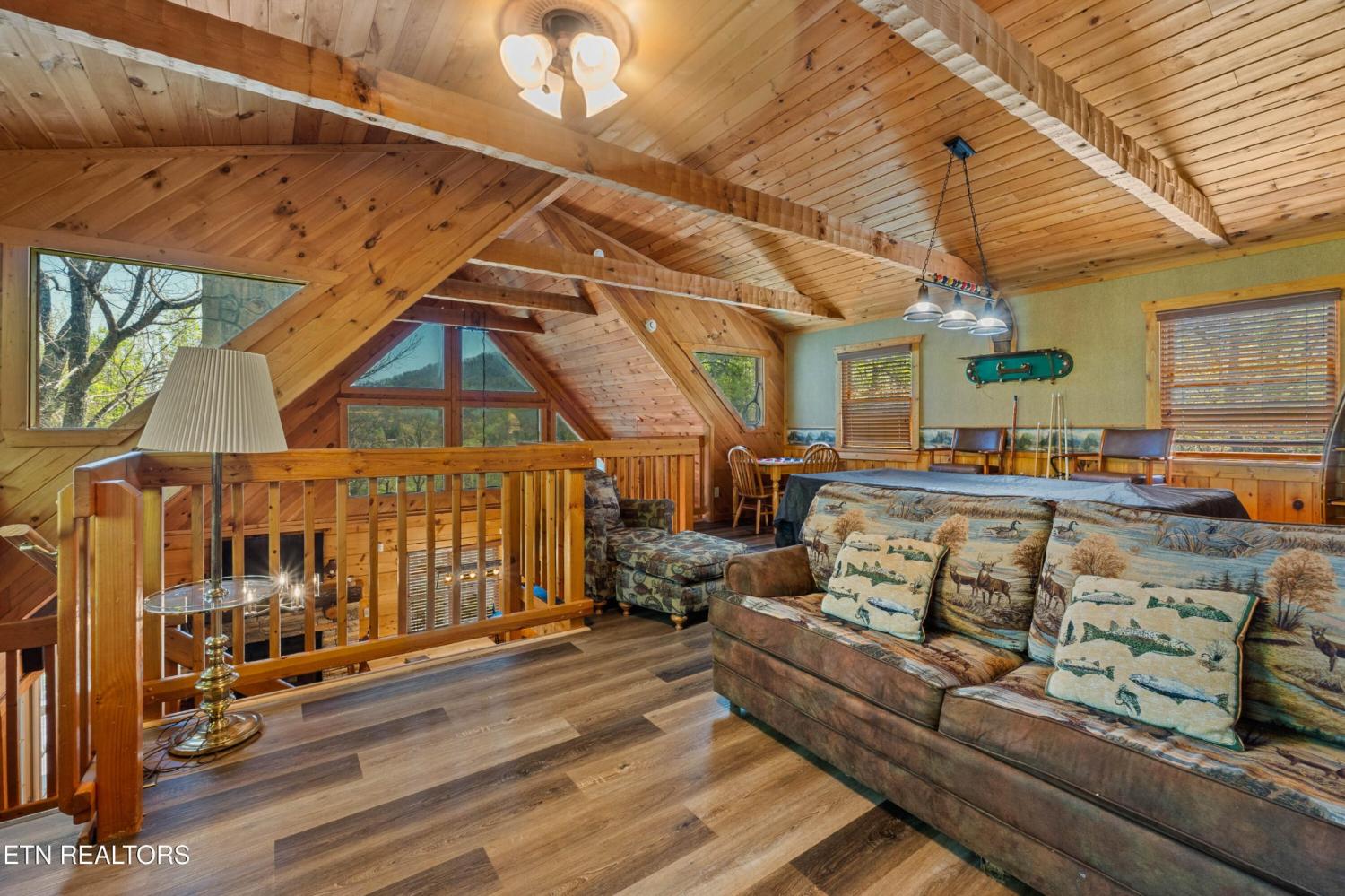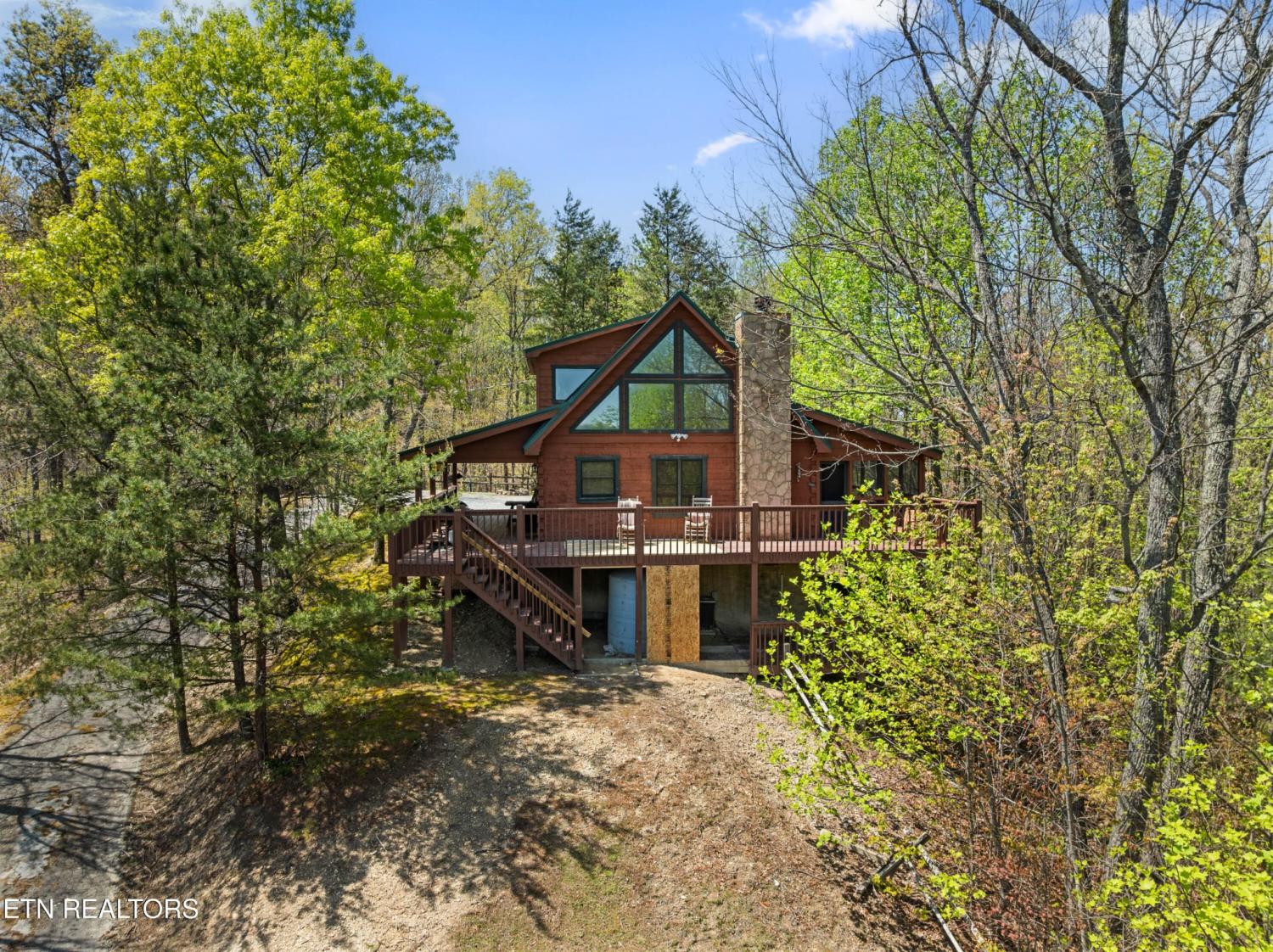 Breathtaking Smoky Mountain Retreat - 2BR/2BA + Loft Cabin with Unmatched Views..... Don't miss this rare opportunity to own a stunning 2-bedroom, 2-bath cabin with a loft, boasting one of the most spectacular panoramic views in all of the Smoky Mountains! This property has 3.35 acres to use privately or expand and build another cabin or two. This beautifully maintained cabin features an open-concept floor plan, where a cozy living room with a stone fireplace flows seamlessly into the dining area—perfect for entertaining or relaxing after a day of mountain adventures. Stunning hardwood floors. Well-equipped kitchen with all appliances (new dishwasher). Both bedrooms, with newer carpet, are conveniently located on the main level, with the primary suite offering a private ensuite bath and walk-in shower. Venture upstairs to the loft, which has newer flooring and a game room with a pool table, which adds to the enjoyment of vacationing or calling this place home. Wake up to awe-inspiring sunrises and wind down with star-filled nights from your expansive two-level wrap-around decks. Whether you're enjoying morning coffee or unwinding in the state-of-the-art newer hot tub, the majestic views of the Smokies will never get old. Tucked away in peaceful seclusion, yet just 4 miles from Pigeon Forge and a short 15-minute drive to Dollywood, Dolly Parton's Stampede, Splash Country, premier shopping, dining, and the Great Smoky Mountain National Park—this cabin offers the best of both worlds. Additional features include: *Commercial-grade water filtration system installed in 2017 *New additional well water storage tank *Ideal for personal use or investment rental property. If you're looking for a mountain cabin with unforgettable views—this is the one. Schedule your showing today and experience the magic for yourself!