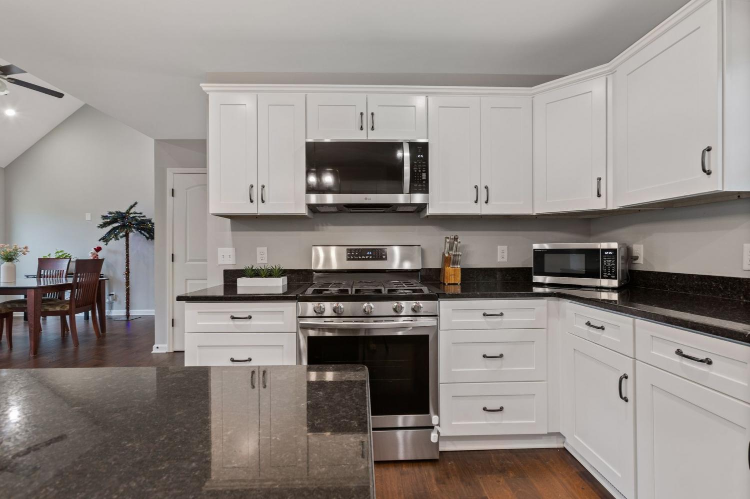Built in 2021 this one level 5 Bedroom, 3 Full Bath open concept home sits on a large 1/2 acre lot. The kitchen is spacious and features granite countertops and an island with storage. Engineered wide plank wood flooring is found throughout most of the home. Primary suite with it's own bath plus 4 additional bdrms and 2 full baths. If you don't need 5 bdrms you can easily use the added bedrooms as an office, a playroom or additional living space. Lg laundry room with space for 2nd fridge or additional storage. Wood deck off the living area offers a nice spot for early morning coffee, a quiet conversation or just a great spot to relax and unwind. Concrete driveway with plenty of room for parking.