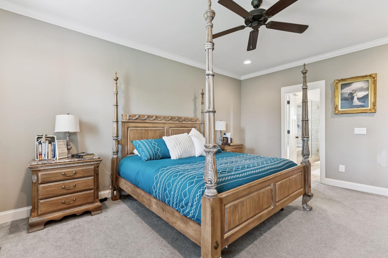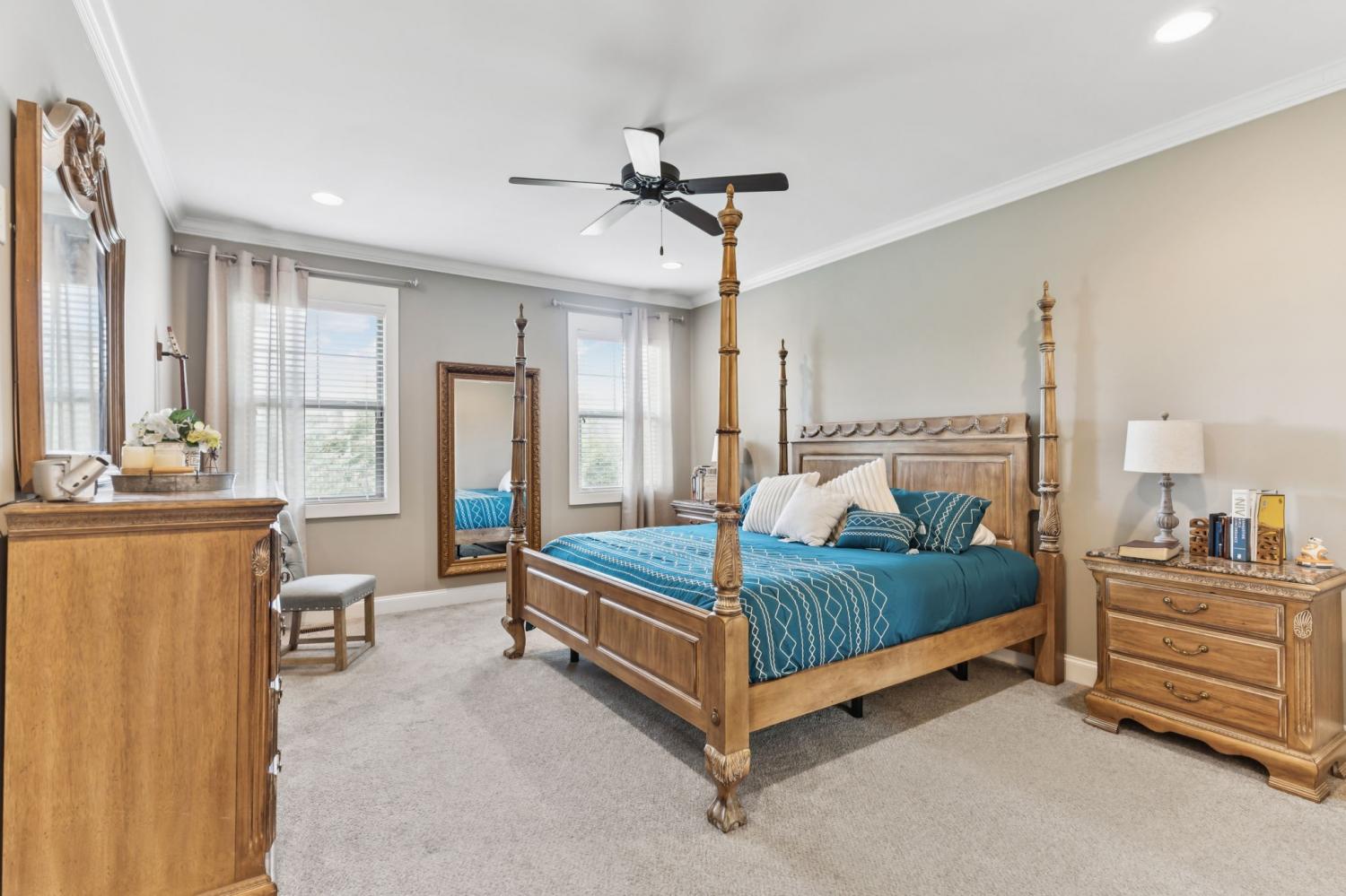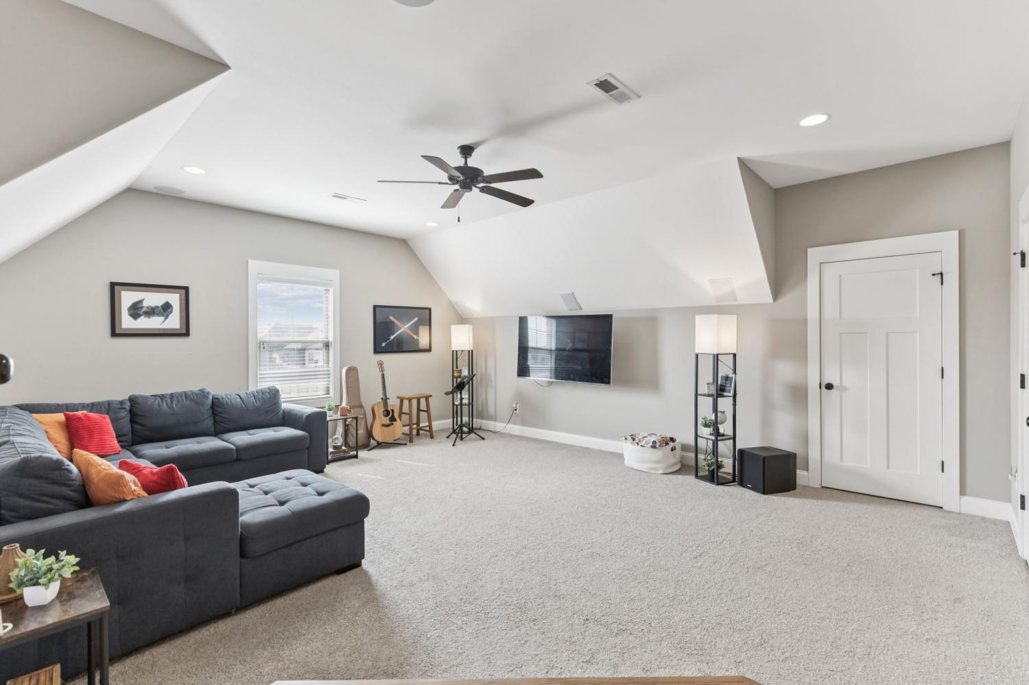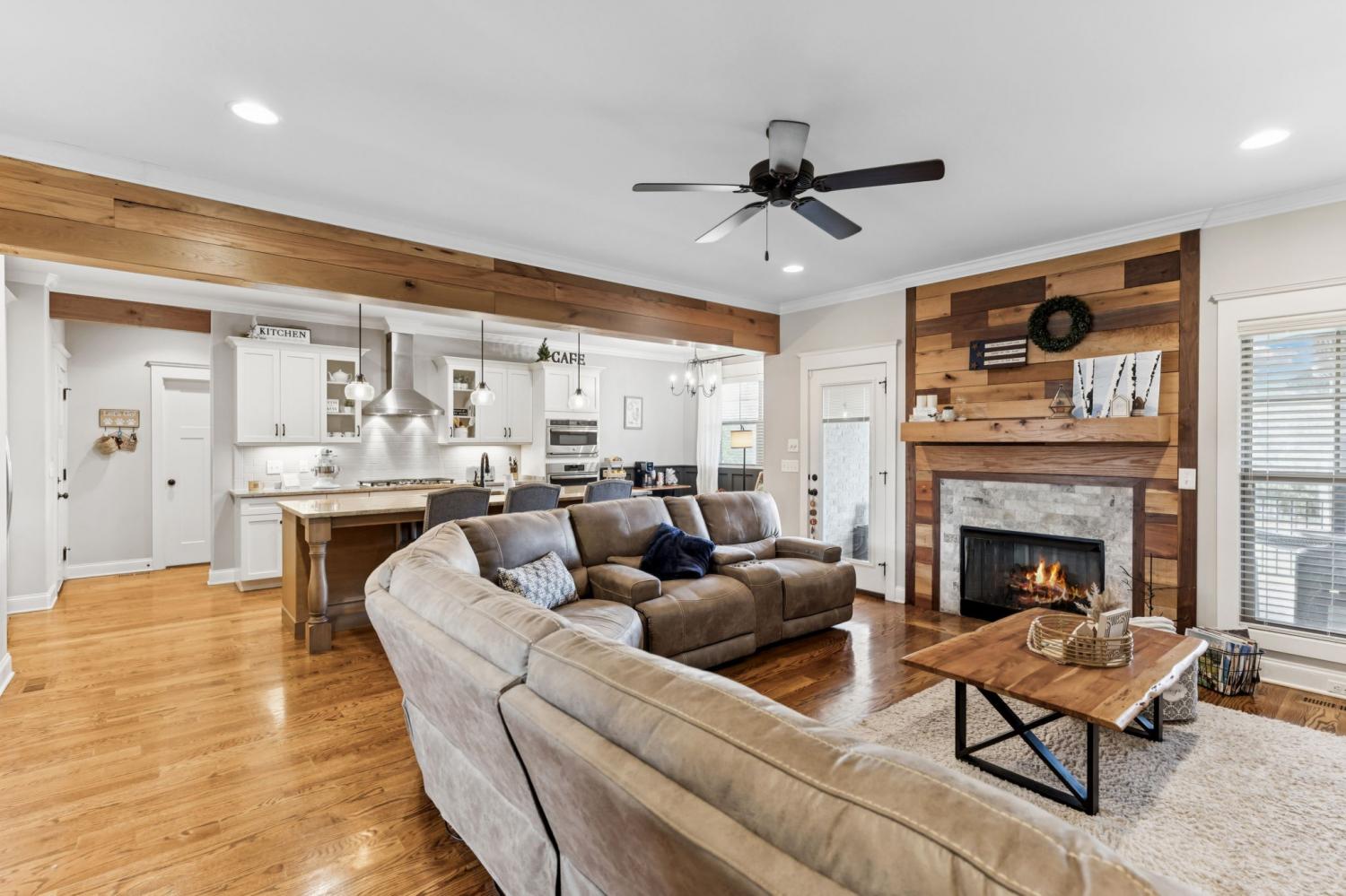 Welcome to my home on the largest corner lot in the neighborhood, where space, style, and comfort come together. When you step inside, you’ll be greeted by a bright main level with upgraded flooring and rustic ceiling beams. I love how the living area draws you in, especially with the striking accent wall around the fireplace. The open kitchen is one of my favorite spots; it has a subway tile backsplash, generous cabinetry, and a large island that’s perfect for casual meals or entertaining friends. My main level suite feels like a private spa, complete with a beautifully tiled shower, dual vanities, and a soaking tub. Upstairs, there’s a huge bonus room that’s ready for whatever you imagine—play area, gym, office, or cartwheels. If you enjoy movies, you’ll appreciate the dedicated media room with built-in surround sound and its own half bath. The entire home is wired for sound, so music and movie nights are effortless. Outside, the fenced backyard offers plenty of room for pets or outdoor games, and yes—it’s wired for sound too. Living here also means enjoying the neighborhood pool, clubhouse, and tennis court just steps away. A lot of love has been put into this home, and I think you’ll feel it when you visit. Schedule your tour today.