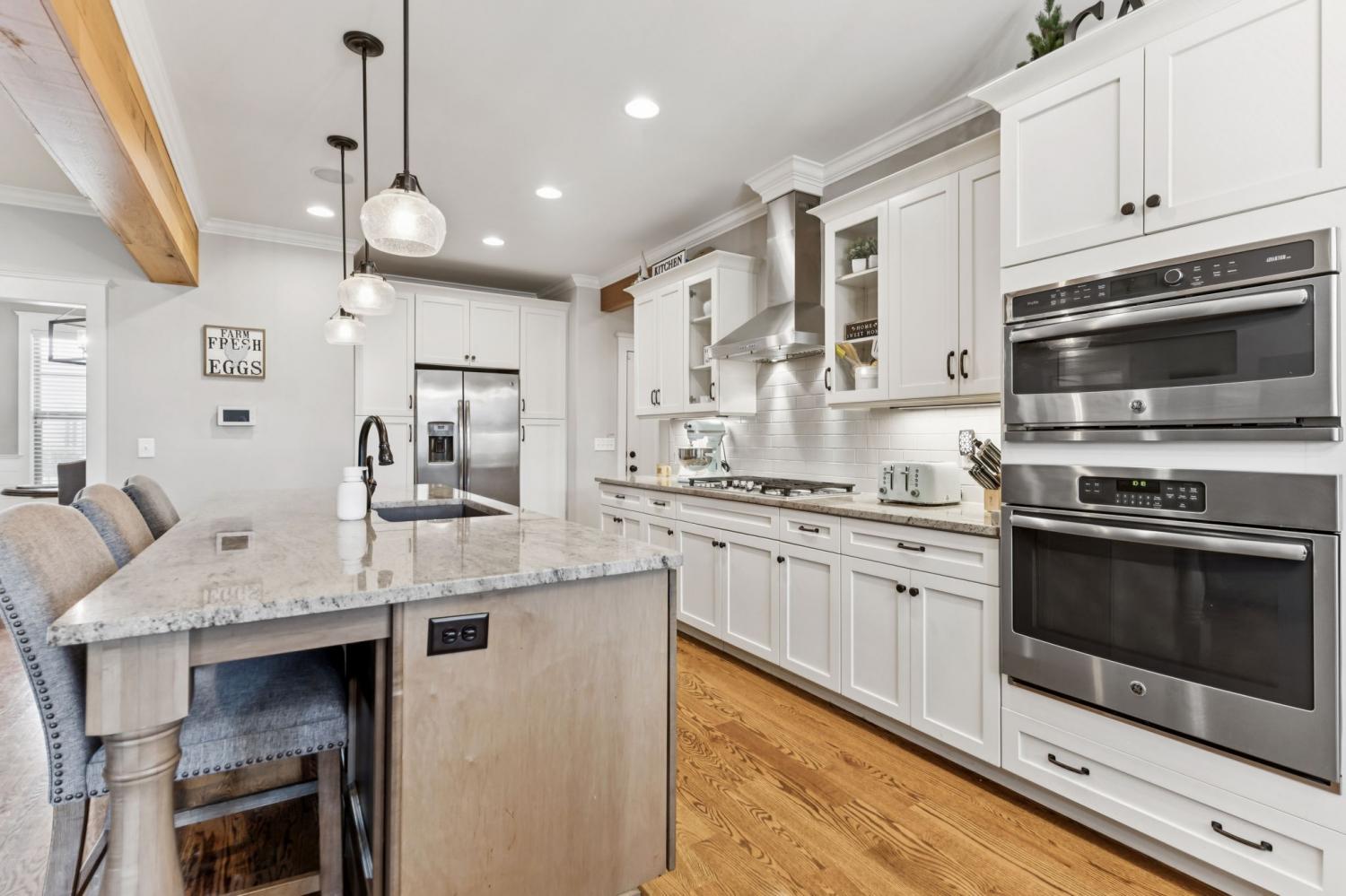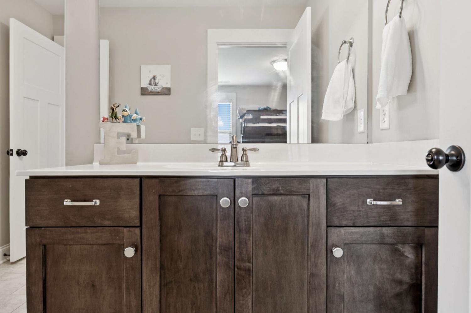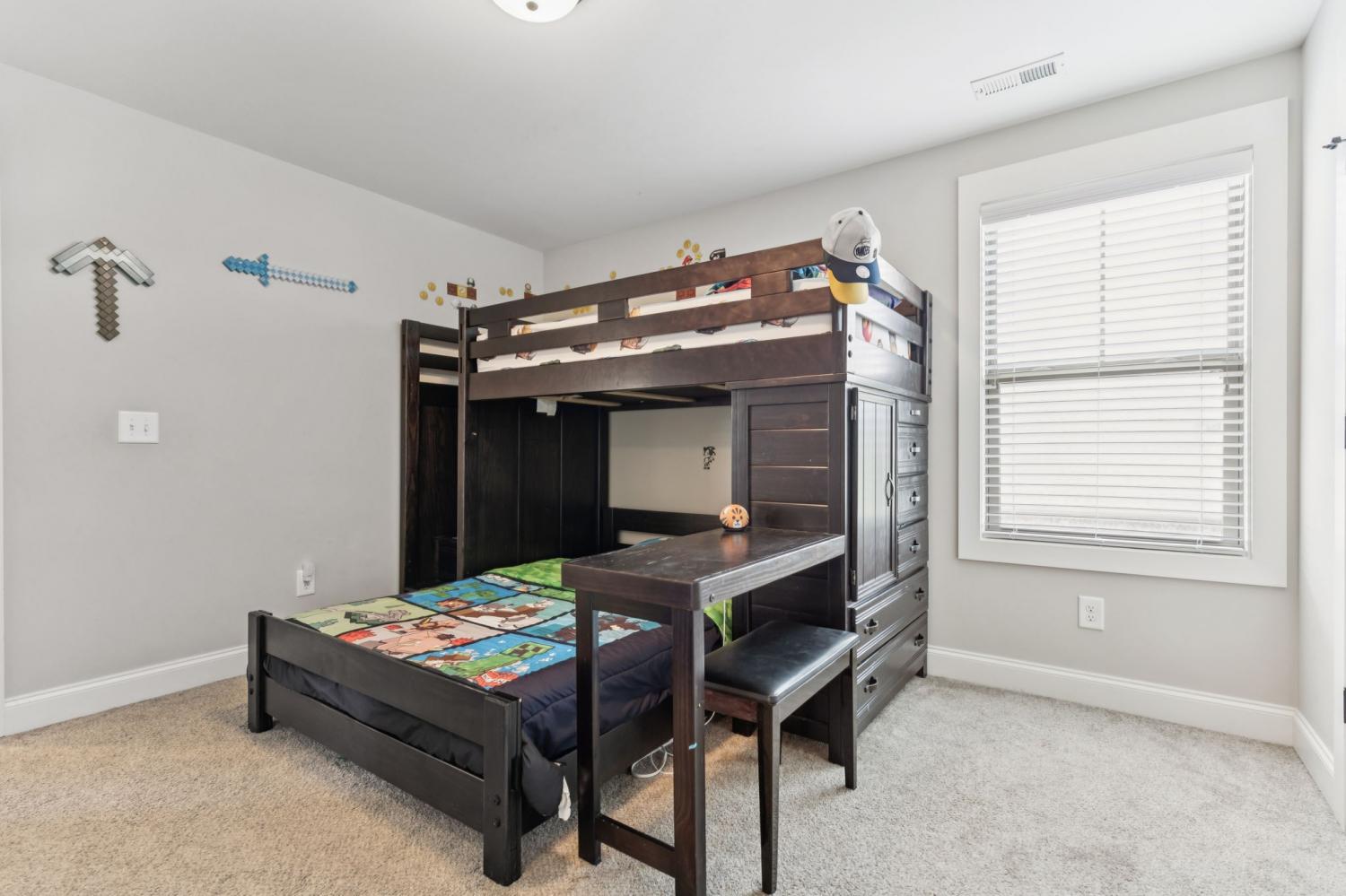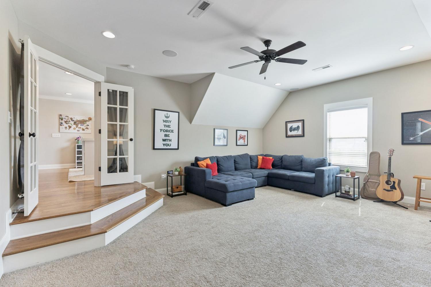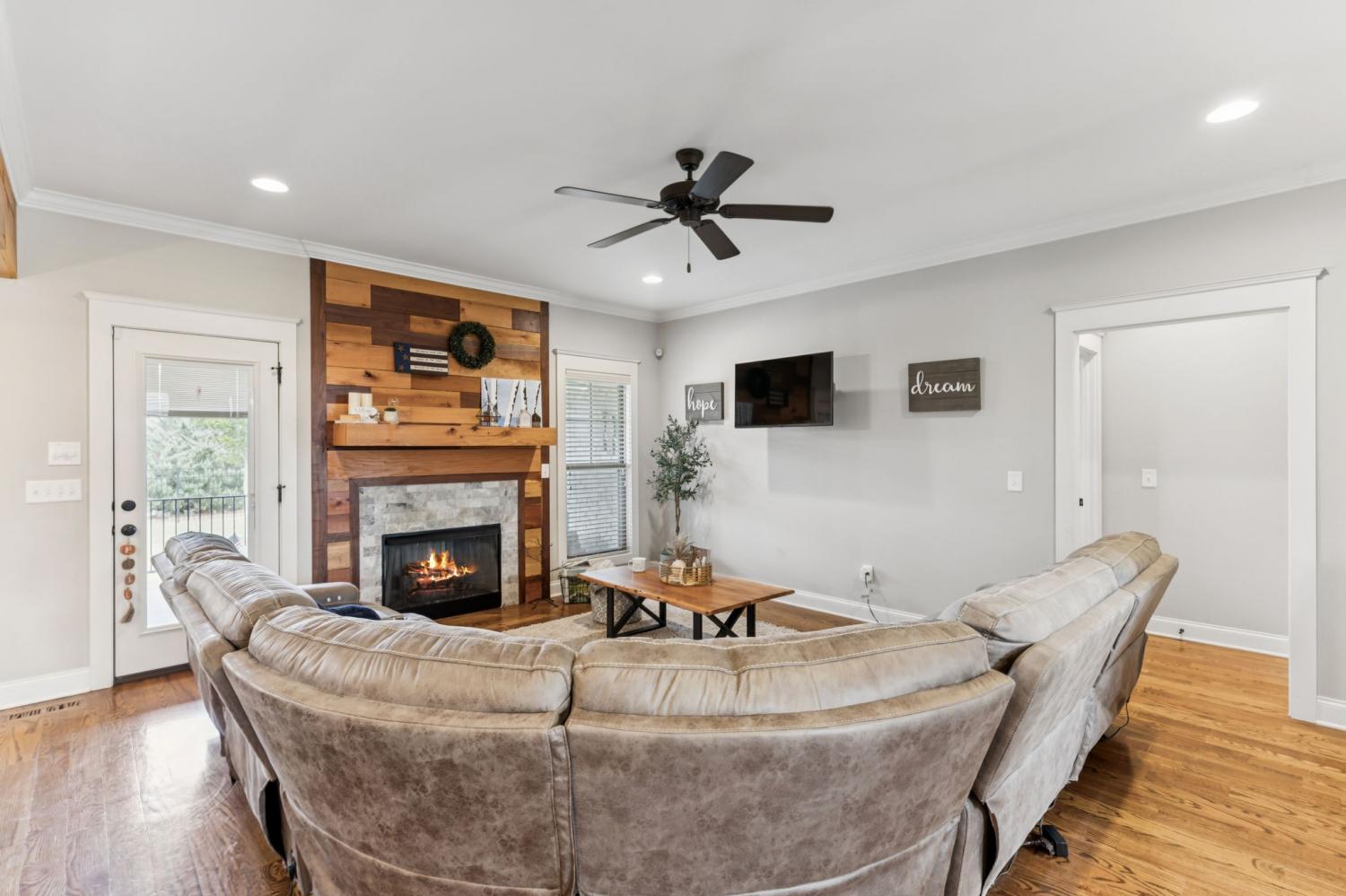 Welcome to my home on the largest corner lot in the neighborhood, where space, style, and comfort come together. When you step inside, you’ll be greeted by a bright main level with upgraded flooring and rustic ceiling beams. I love how the living area draws you in, especially with the striking accent wall around the fireplace. The open kitchen is one of my favorite spots; it has a subway tile backsplash, generous cabinetry, and a large island that’s perfect for casual meals or entertaining friends. My main level suite feels like a private spa, complete with a beautifully tiled shower, dual vanities, and a soaking tub. Upstairs, there’s a huge bonus room that’s ready for whatever you imagine—play area, gym, office, or cartwheels. If you enjoy movies, you’ll appreciate the dedicated media room with built-in surround sound and its own half bath. The entire home is wired for sound, so music and movie nights are effortless. Outside, the fenced backyard offers plenty of room for pets or outdoor games, and yes—it’s wired for sound too. Living here also means enjoying the neighborhood pool, clubhouse, and tennis court just steps away. A lot of love has been put into this home, and I think you’ll feel it when you visit. Schedule your tour today.