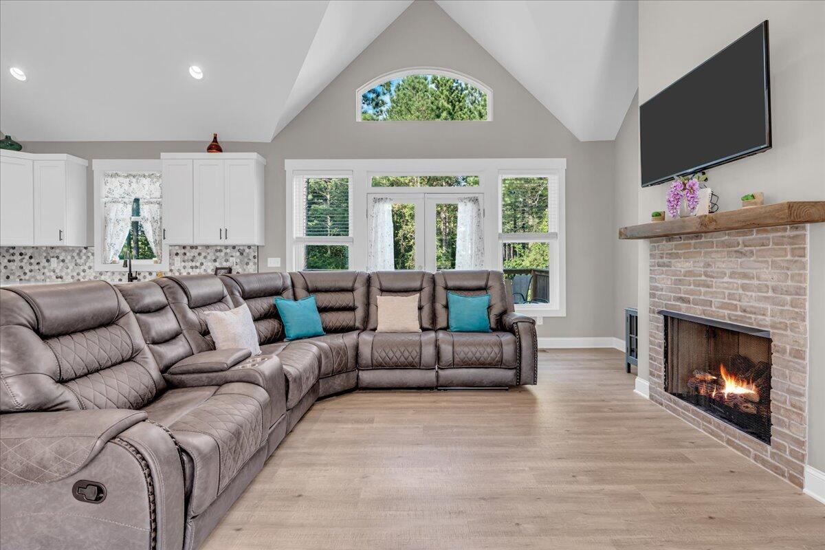 Discover a serene retreat at 370 Cumberland Cir, located in the exclusive Sunset View section of Jasper Highlands, Tennessee's premier gated community atop the Cumberland Plateau.This 2023-built, 3-bedroom, 2-bathroom home with a 2-car garage sits on a 1-acre lot, offering a perfect blend of modern comfort and natural beauty. Just 10 minutes from downtown Jasper and 45 minutes from Chattanooga's airport and attractions, this property provides an ideal balance of seclusion and accessibility.The home features an inviting open-concept layout, perfect for everyday living and entertaining. The kitchen includes a functional island, tile backsplash, stainless steel appliances, and ample cabinetry, seamlessly connecting to the living and dining areas. Vaulted ceilings create a spacious feel, while large windows showcase views of the mostly cleared 1-acre lot, tree-lined at the back for added privacy. The primary bedroom offers a comfortable en-suite bathroom, and two additional bedrooms provide flexibility for family, guests, or a home office. A second full bathroom completes the main level, designed with practical finishes. An unfinished upstairs bonus room, adding approximately 275 sq ft if finished, offers potential for a fourth bedroom, media room, or additional living space to suit your needs.The exterior features a covered front porch and a rear deck, ideal for enjoying the peaceful surroundings and stunning sunsets over the Cumberland Plateau. The lot's location enhances its tranquil appeal, perfect for walking or biking. Jasper Highlands offers resort-style amenities, including two community pools, tennis and pickleball courts, dog parks, playgrounds, hiking trails, and scenic waterfalls. Social clubs foster a vibrant community atmosphere, while low HOA fees cover gated security, road maintenance, and amenity access. With public water, high-speed fiber internet, this move-in-ready home is ideal as a primary residence or vacation retreat,