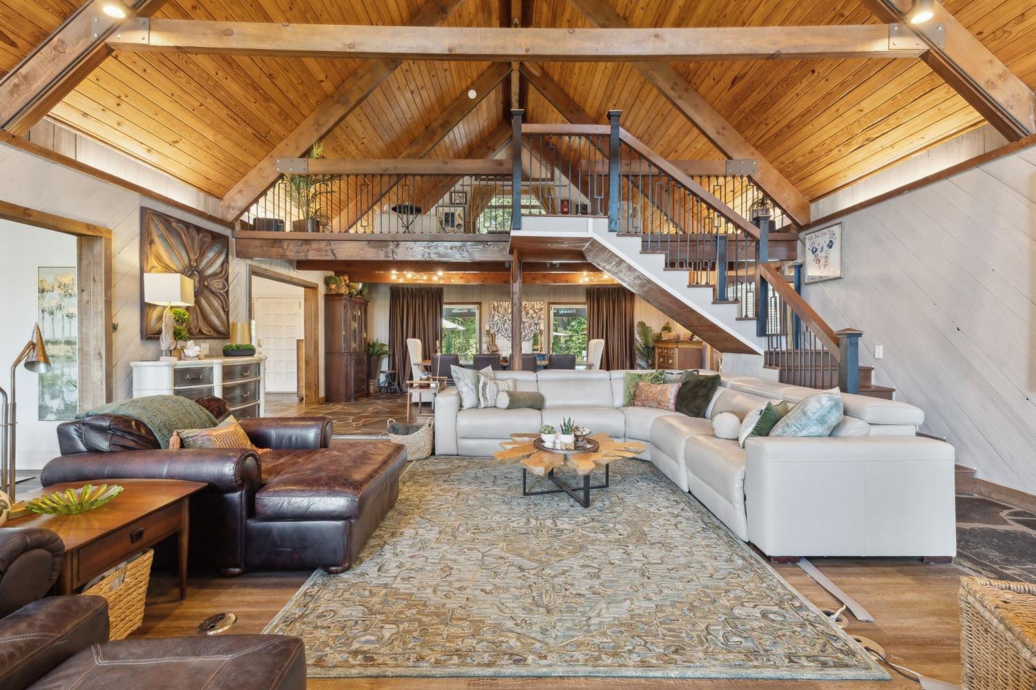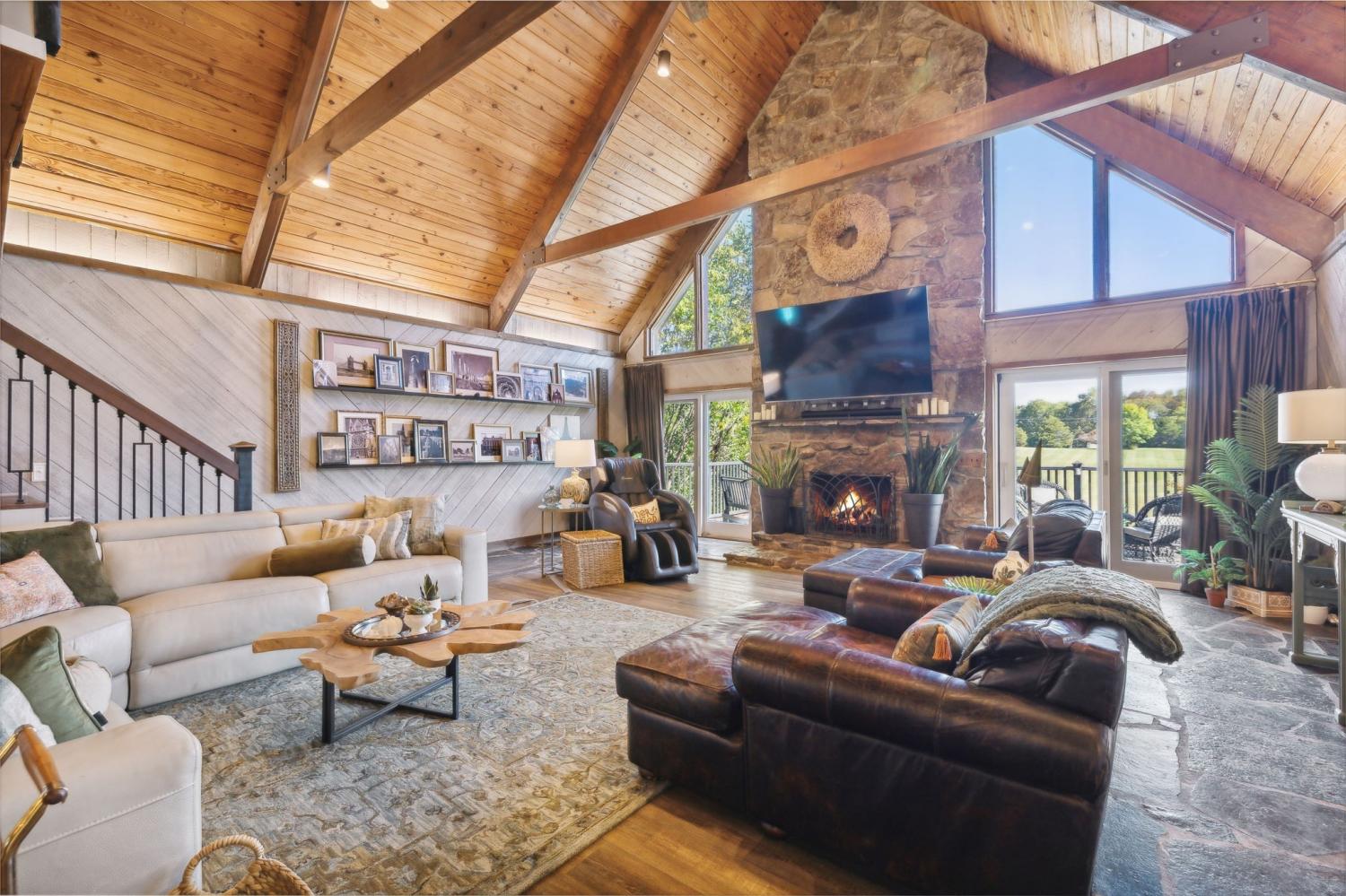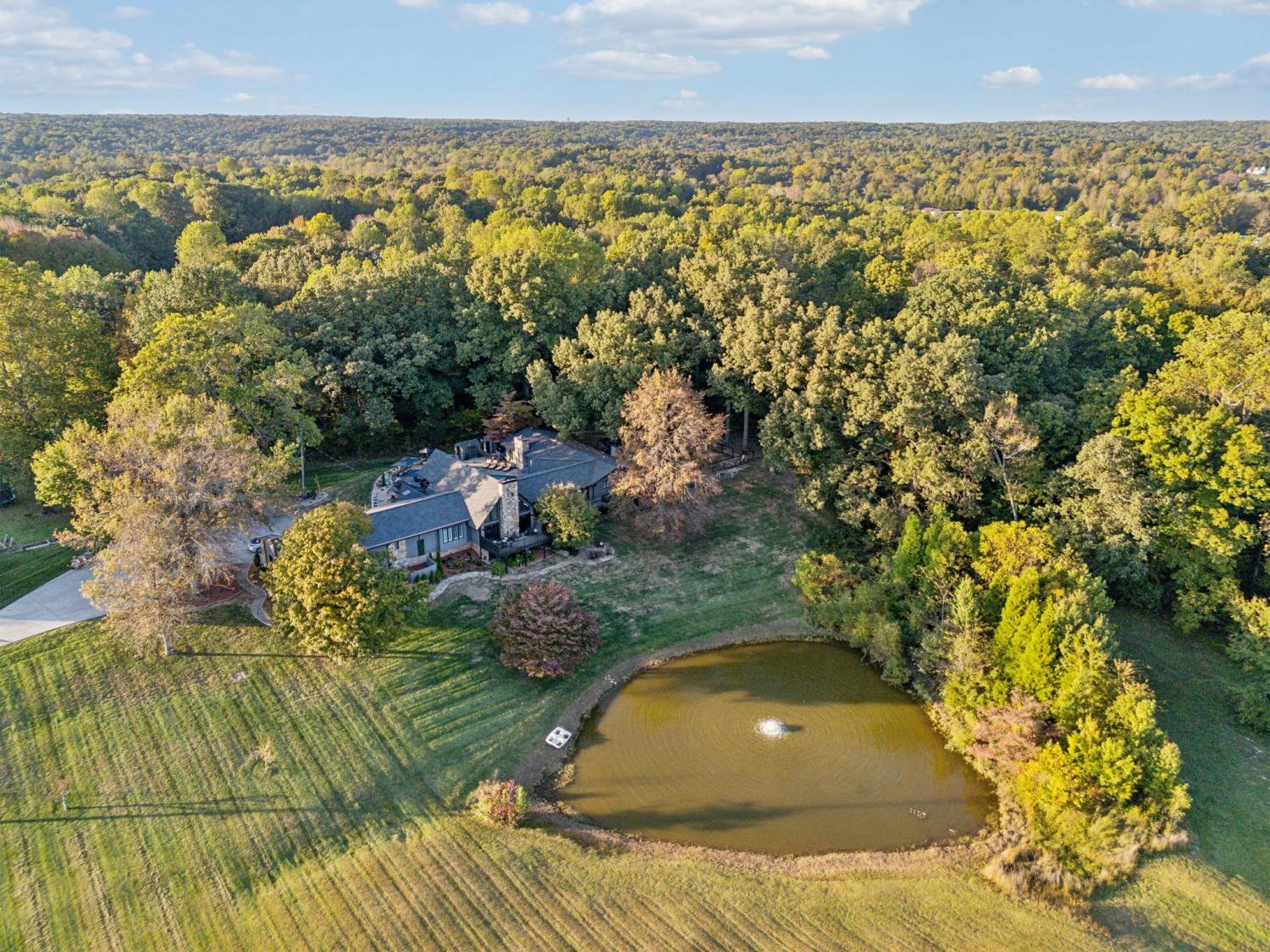 Situated on over 21 acres of rolling hills and peaceful woods, this luxury home offers country living and a resort-like feel, while only being 30 min to downtown Nashville! This one-of-a-kind property seamlessly blends modern elegance with timeless charm, offering a truly unparalleled living experience. From the moment you arrive, you'll be captivated by the meticulous craftsmanship and high-end finishes that define every inch of this home. Step inside of this cedar and stone home to discover an open-concept layout that naturally flows throughout the home. With flooded natural light, beautiful vaulted tongue and groove ceilings with wood beams, soaring 25 foot stone fireplace, and designer fixtures, you are sure to be in awe at every turn! The gourmet kitchen is a chef's dream, boasting built-in appliances, wine fridge, trash compactor and a spacious island - perfect for both entertaining and everyday living. The loft overlooking the great room opens to a screened sleeping porch that is perfect for sitting back after a long day. The primary suite is a complete retreat featuring a Italian marble gas fireplace, a renovated spa-like bathroom with heated tile flooring, oversized walk-in closet, and serene views. Downstairs you will find a fully finished basement apartment complete with its own kitchen, dining space, living room, private patio overlooking the stocked pond - ideal for multi-generational living, or a private guest suite! Upon exiting the home through one of eleven patio doors, you may find yourself strolling down the meandering stone walkways admiring the stone walls and beautiful landscaping! Every detail of this extraordinary home has been carefully curated to offer a lifestyle of elegance, comfort, and modern sophistication. Be sure to check out the features document to see the addition of upgrades! This is truly a home you need to see with your own eyes!