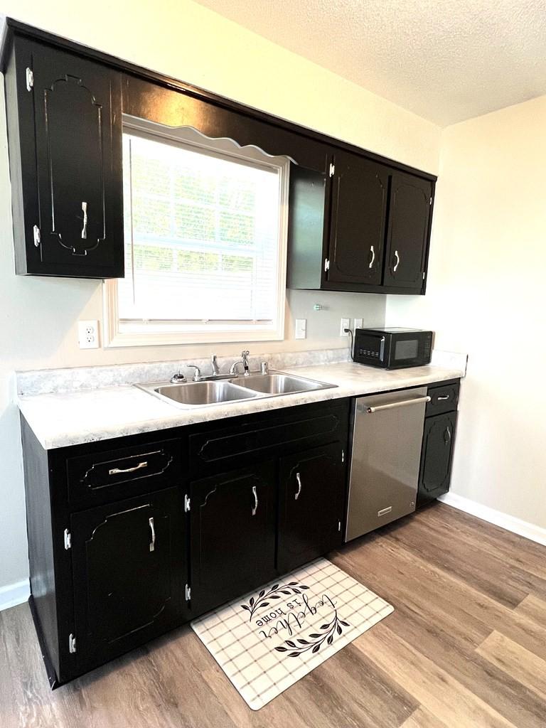 This home is conveniently located to Hopkinsville, Clarksville & Post. 2 Bedroom + 2 Bath Home with laminate flooring in the kitchen , living room, hallway & bathrooms. Kitchen has stainless steel fridge, stove & dishwasher. + small microwave. All on a wooded back yard lot!