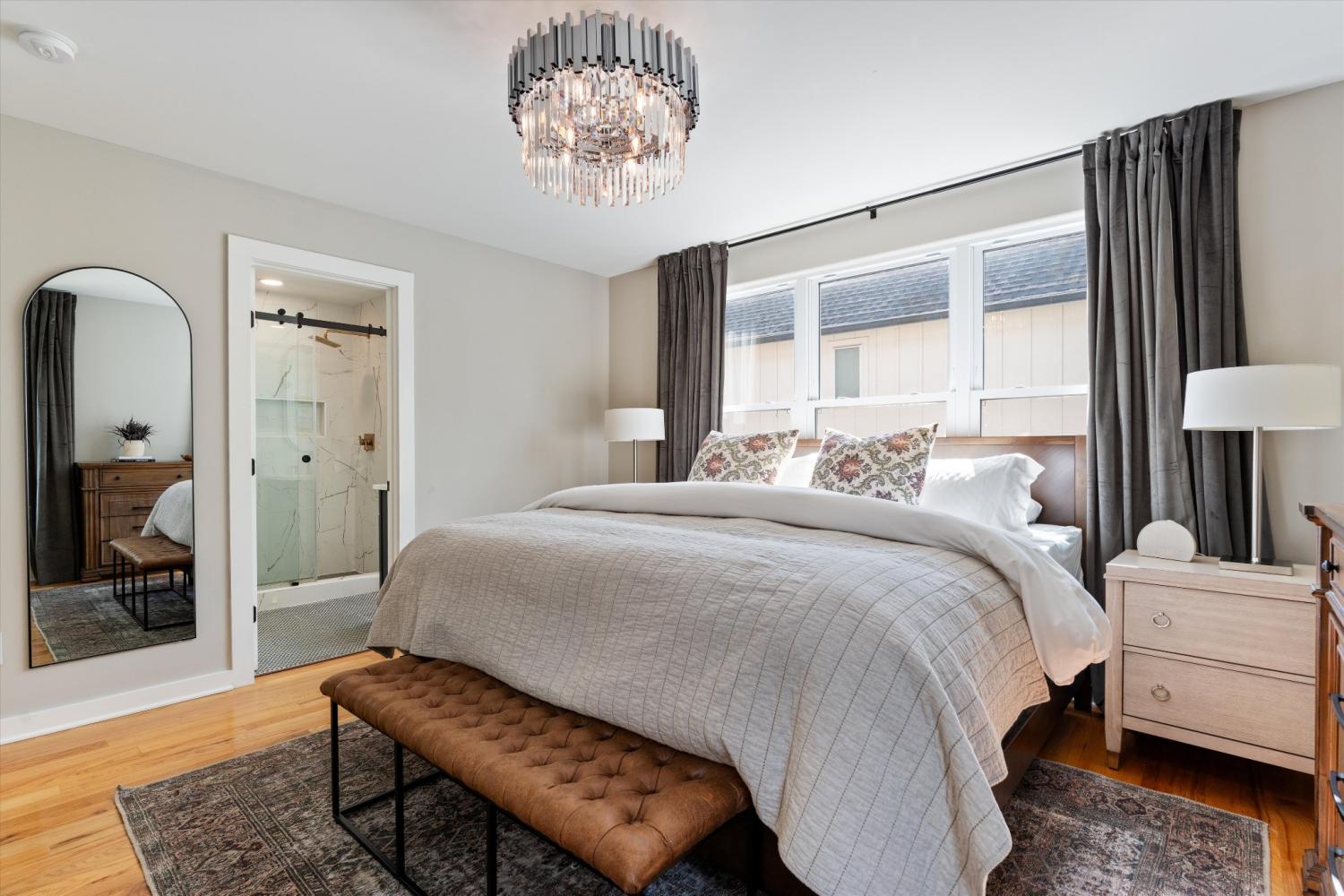 If you've been looking for a beautifully updated home in the Nations within walking distance to some of the best hot spots, THIS IS IT! Step inside this stunning Nations home and experience a perfect mix of style, function, and everyday comfort. From the moment you walk in, natural light pours through the windows, bouncing off the fresh finishes and creating a warm, inviting glow. The main level is anchored by a newly added electric fireplace—ideal for cozy nights in—and a kitchen designed for both beauty and utility. Updated cabinetry, sleek quartz countertops, and a stylish backsplash make it the heart of the home, while the refreshed half bath with modern tile and sink adds a touch of sophistication for guests. Upstairs, the second floor offers three bedrooms, each crowned with beautiful chandeliers that elevate the everyday. The primary suite is a true retreat with a walk-in closet featuring custom built-ins, a spa-inspired bathroom with rainfall shower and double vanity, and a whimsical converted getting-ready station accented by playful donut wallpaper. On the third floor, the home transforms into an entertainer’s dream. A custom wet bar with built-in fridge sets the stage for memorable evenings, while the thoughtful Murphy bed adds flexibility for hosting overnight guests. Step out to the expansive rooftop deck and you’ll find the perfect backdrop for al fresco dining, lively gatherings, or simply relaxing as the sun sets over the city. And the lifestyle doesn’t stop at your doorstep. Just one block away, you can grab a pint at Fat Bottom Brewery or stroll to neighborhood favorites like Brightside Bakeshop and Bringle’s Smokin’ Oasis. Whether you’re entertaining, relaxing, or exploring, this home blends modern updates with the vibrant energy of the Nations—making it the perfect place to live your next chapter.
