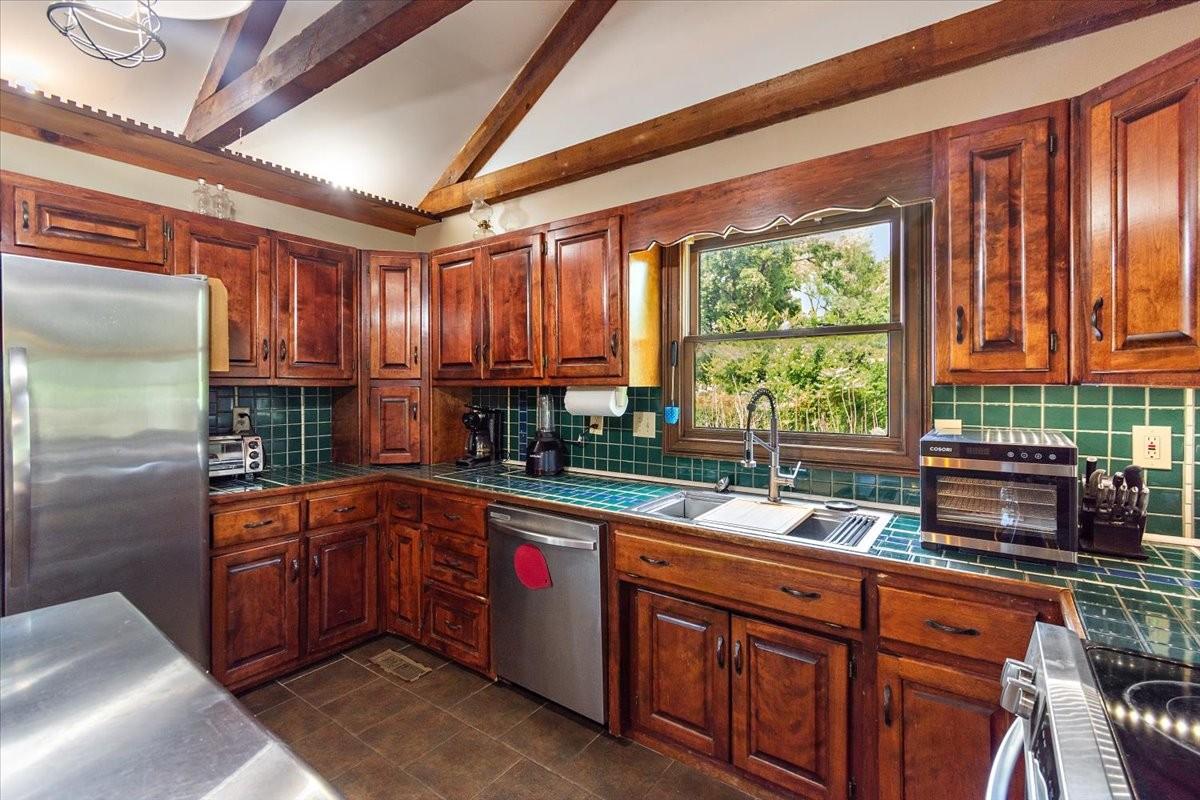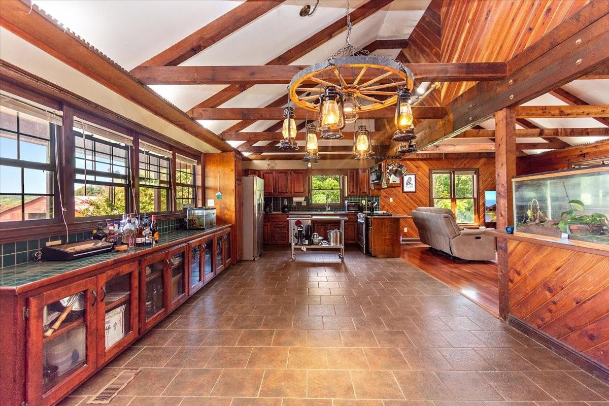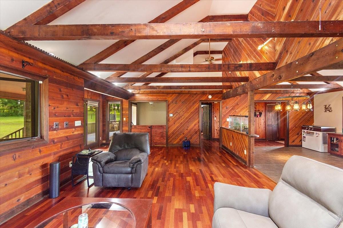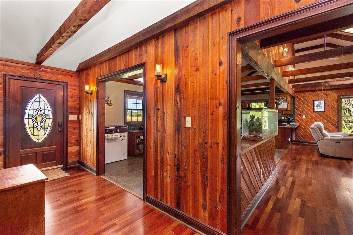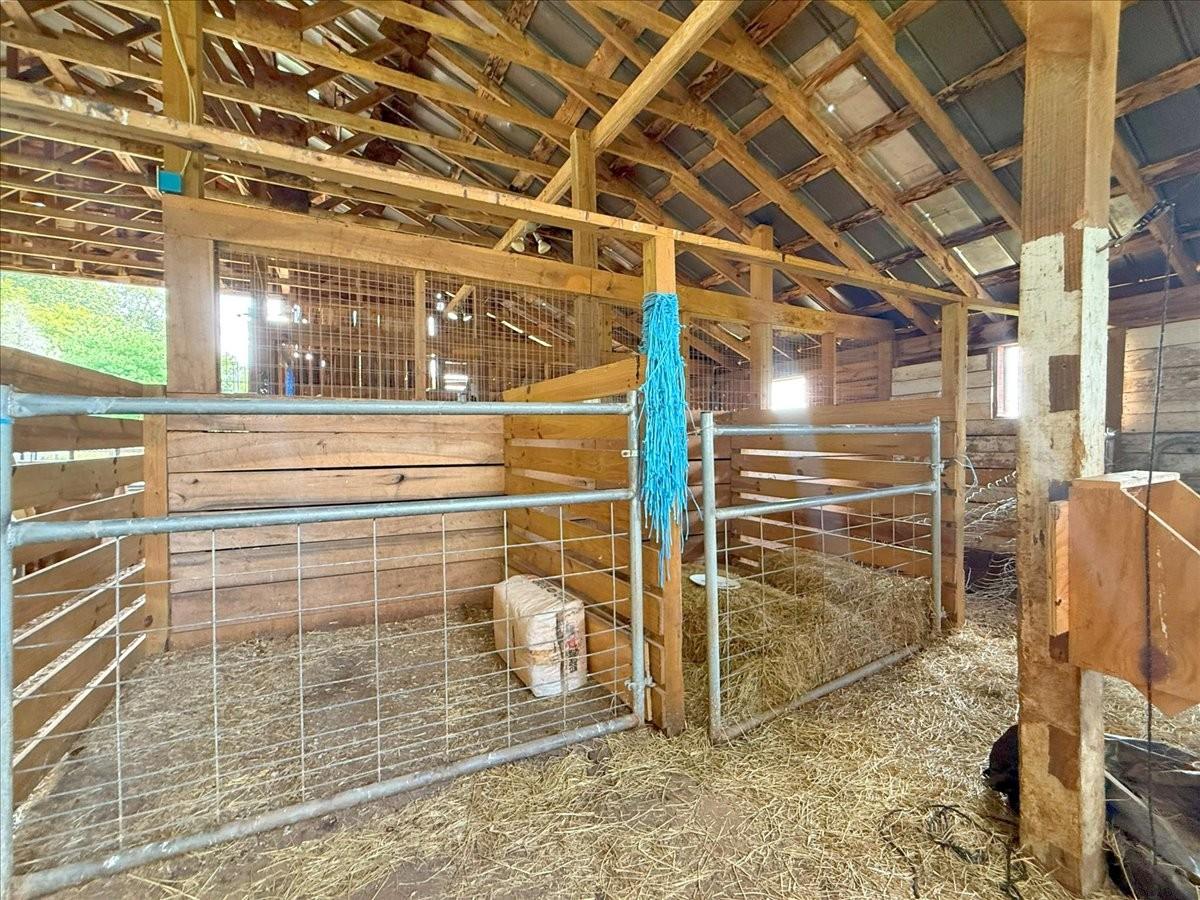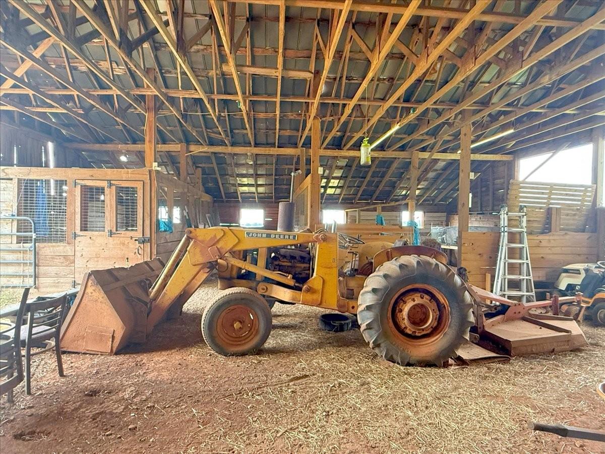 Bring your animals and enjoy the country lifestyle on this 5.2-acre mini farm! The property includes two, separate parceled, fully fenced pastures and a spacious barn with two horse stalls, goat stalls, a tack room, hitching post, and plenty of room for your own plans. The home offers an open floor plan with vaulted ceilings throughout the main level, plus beautiful hardwood and tile flooring—no carpet! Recent updates include a new electrical box, newer HVAC system, and water heater. The kitchen comes fully equipped with all appliances, including the refrigerator, and the washer and dryer will also remain. Plenty of enjoyable outdoor space with a covered front porch and oversized covered back patio. As a bonus, the seller is leaving 50 boxes of new in box LVP flooring, giving you the opportunity to update even further to your style. Running Tractor and Attachments will also remain.