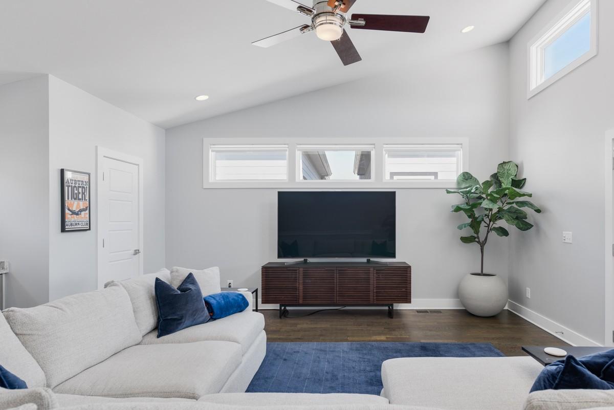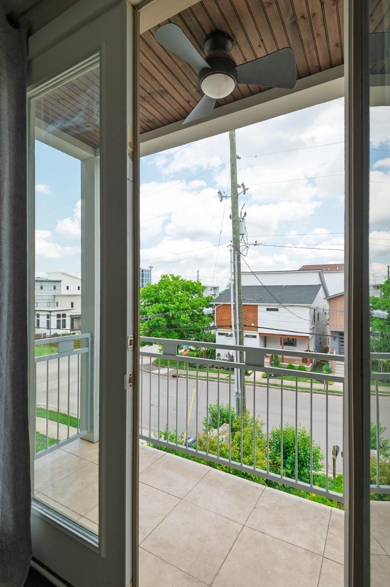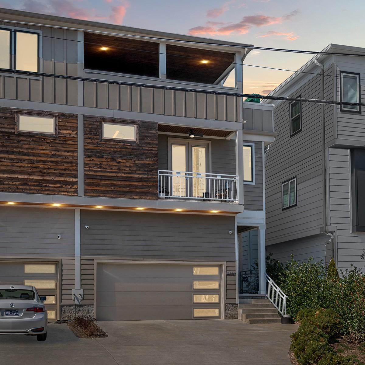 One of the most desirable floorplans in Gulch View—soaring ceilings, wide hallways, and downtown views with walkability to the Gulch and downtown Nashville. The open-concept main level features hardwood floors, a sleek modern fireplace, and abundant natural light. The kitchen impresses with quartz countertops, designer lighting, stainless appliances, and detailed tilework. A rare fenced backyard offers private outdoor space—ideal for pets or relaxing. Upstairs, the spacious primary suite includes double closets and a private balcony. The real showstopper is the top-floor 4th bedroom can also be used as a bonus room that opens to an expansive covered deck—perfect for entertaining or unwinding with a view. Seller is motivated!