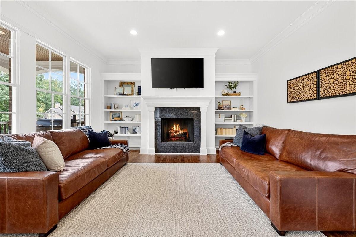 Discover this stunning custom-built home in the exclusive gated community, The Reserve at Temple Hills, designed for both everyday comfort and elegant entertaining. Step inside to a light-filled great room with soaring ceilings, a gas fireplace, and seamless flow into a gorgeous chef’s kitchen featuring marble countertops, dual ovens, wet bar, and an oversized pantry with endless storage. A cozy den with built-ins and a second fireplace offers the perfect retreat. The main floor includes a private office and a spacious primary suite with spa-like bath, dual vanities, oversized shower, and custom closets. Upstairs, you’ll find three large en-suite bedrooms plus a bonus room for flexible living. Designed with function in mind, this home offers abundant storage and oversized closets in nearly every room. Additionally, Beautiful hardwood floors extend throughout the main and second floors, adding warmth and sophistication. Set on a quiet cul-de-sac street, the home also features a flat backyard with expansive deck and covered patio, and even an in-ground trampoline. A 3-car garage provides plenty of storage and space. All of this in one of Franklin's most desirable neighborhoods zoned for award winning Williamson County Schools.