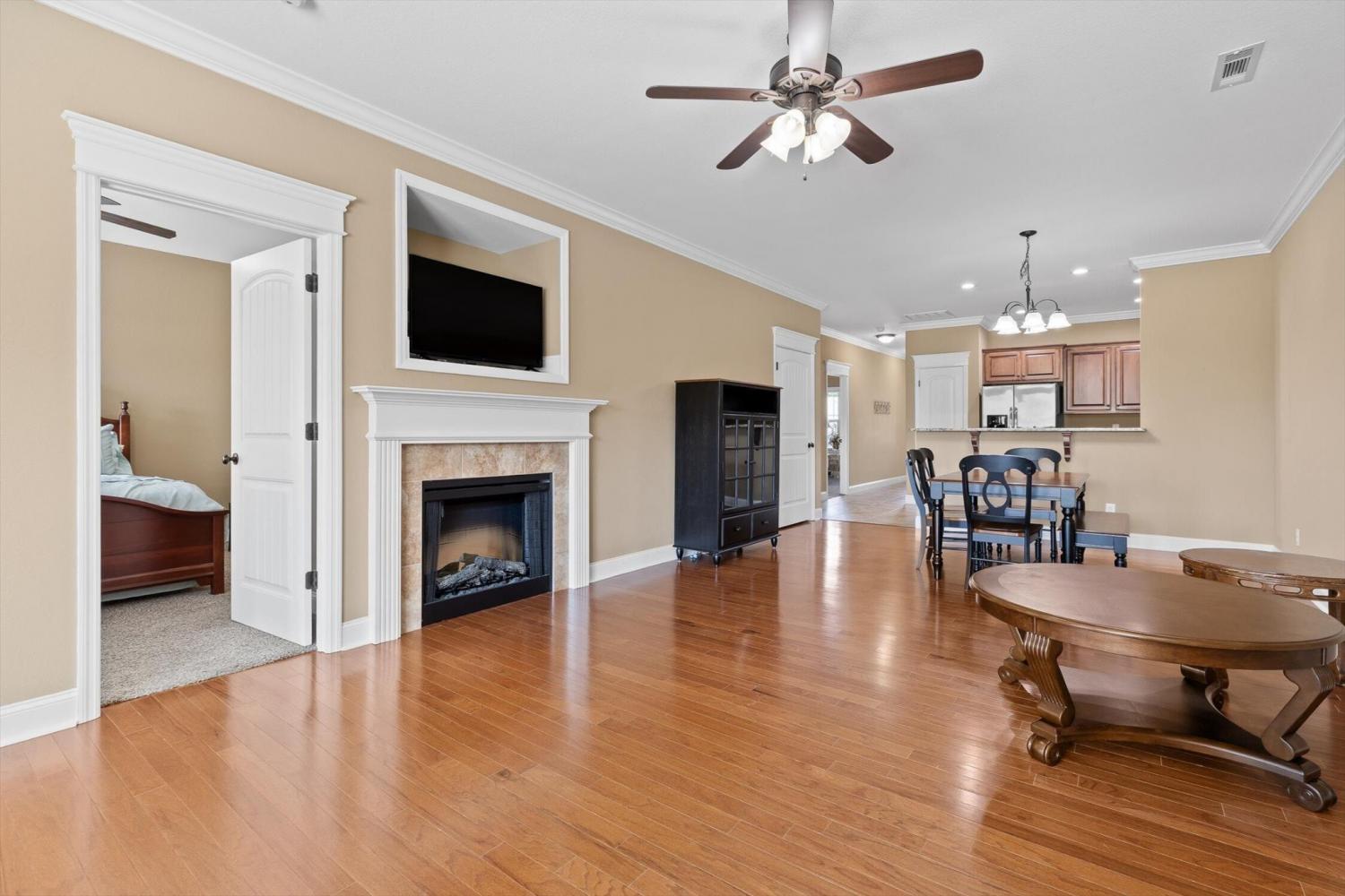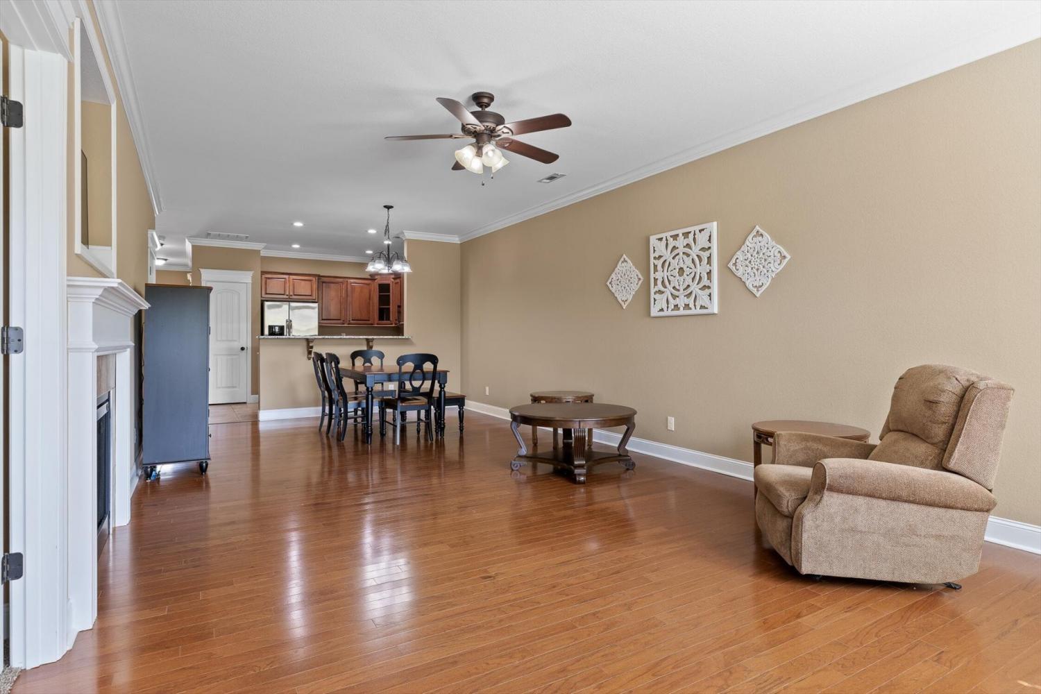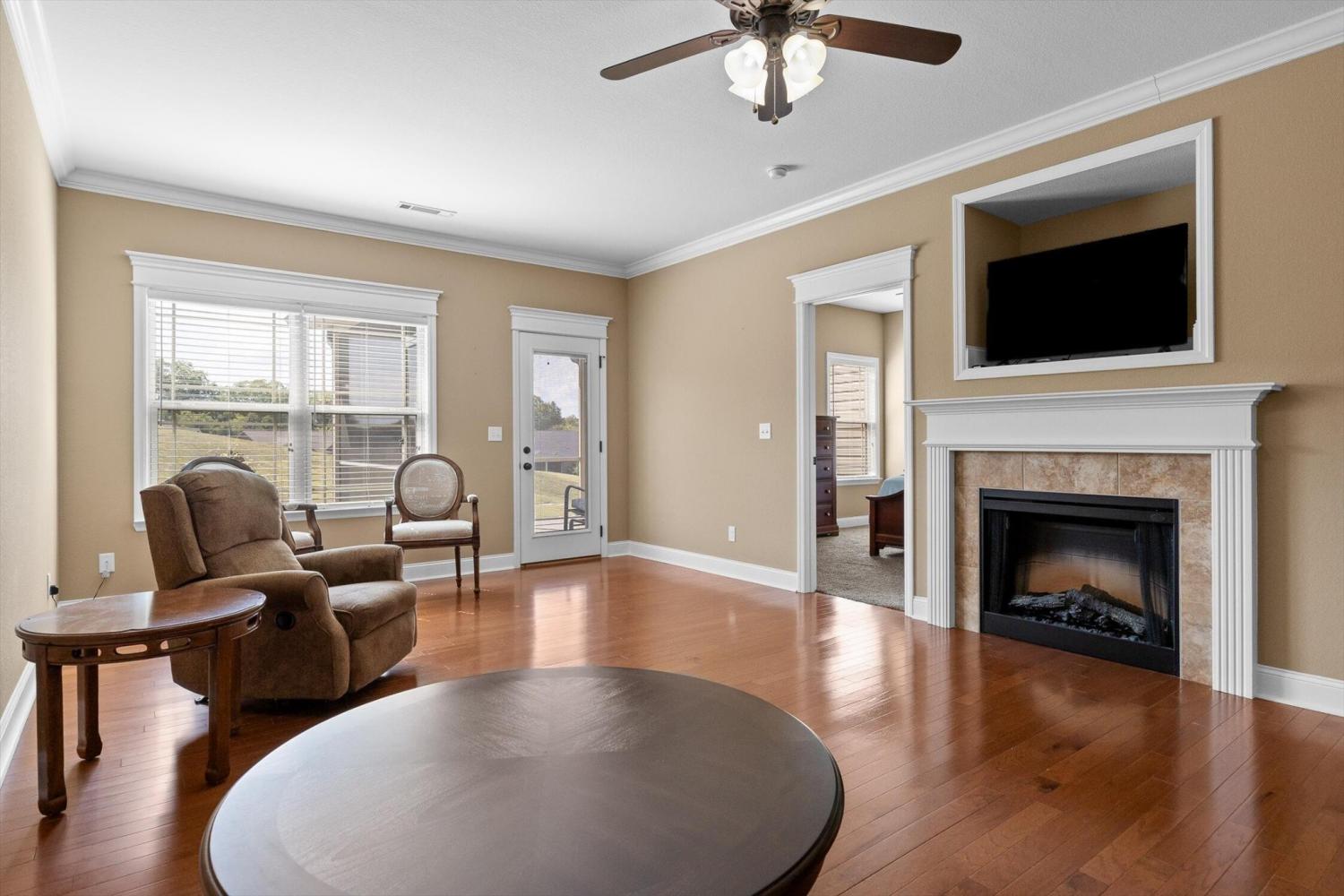 Welcome home to 118 Hillouse Lane in the Highlands Townhome Community! This beautiful one-level townhome offers the perfect blend of comfort and convenience in a gated neighborhood just minutes from I-75. Inside, you'll find an open and inviting floor plan with granite countertops, stainless steel appliances, and a cozy fireplace that makes the living space feel warm and welcoming. The home features a mix of engineered hardwood, tile, and soft carpet in the bedrooms, as well as oil-rubbed bronze fixtures throughout. The spacious primary suite includes a walk-in closet, and the covered back porch is the perfect spot to relax and enjoy the peaceful setting. With charming curb appeal featuring rock, brick, and vinyl exterior, this home truly has it all. As part of The Highlands, you'll enjoy wonderful community amenities including walking trails, a fishing pond, putting & chipping green, gazebo, and clubhouse. Whether you're looking for low-maintenance living, a friendly neighborhood, or a place to unwind, this townhome is a perfect fit.