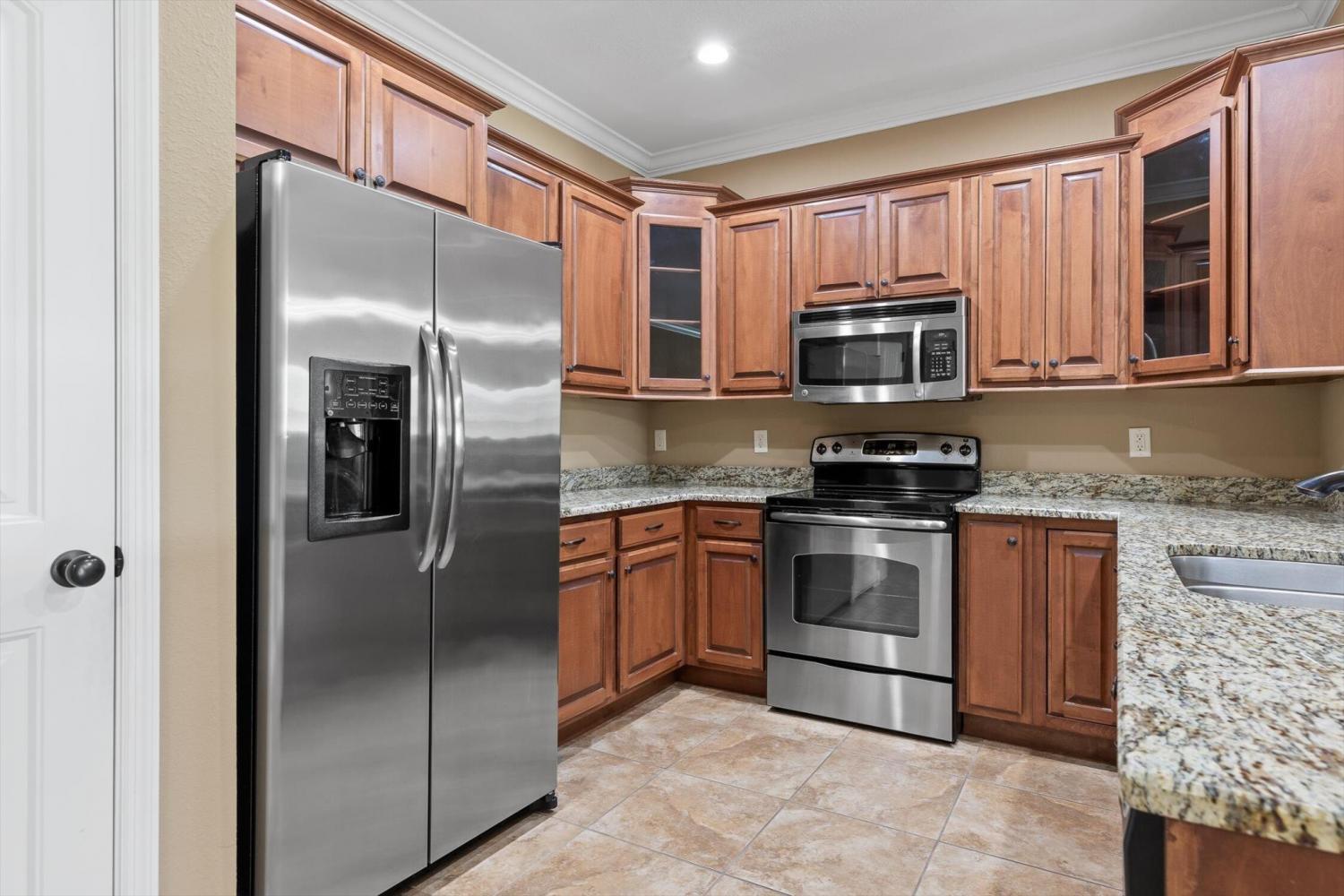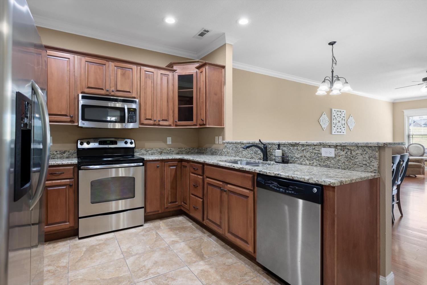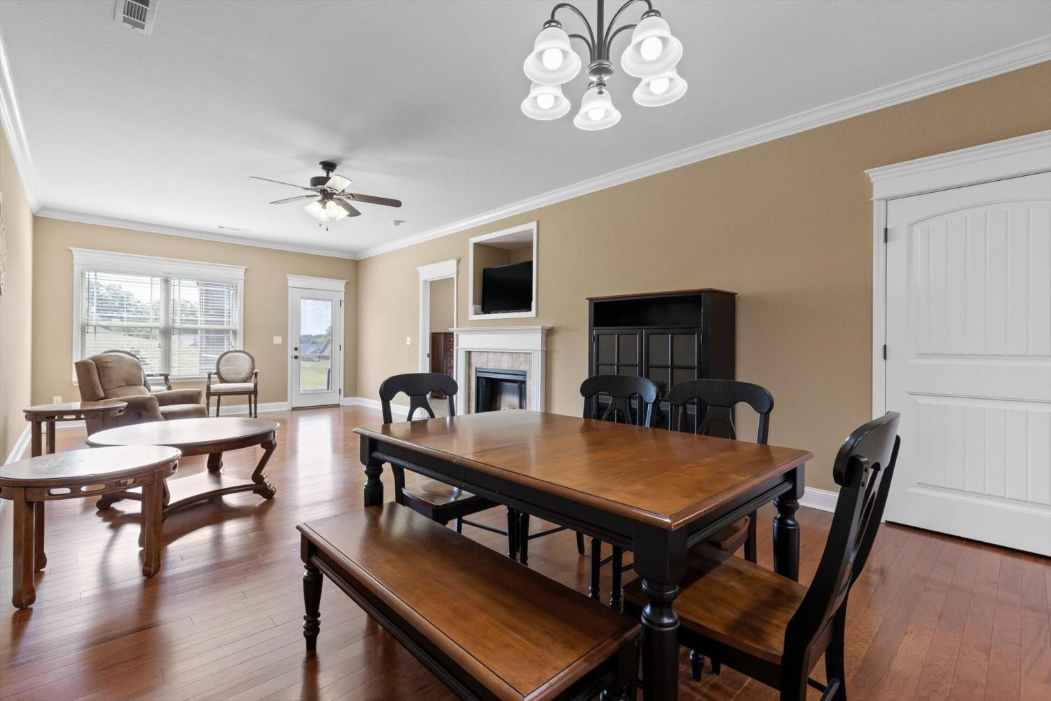 Welcome home to 118 Hillouse Lane in the Highlands Townhome Community! This beautiful one-level townhome offers the perfect blend of comfort and convenience in a gated neighborhood just minutes from I-75. Inside, you'll find an open and inviting floor plan with granite countertops, stainless steel appliances, and a cozy fireplace that makes the living space feel warm and welcoming. The home features a mix of engineered hardwood, tile, and soft carpet in the bedrooms, as well as oil-rubbed bronze fixtures throughout. The spacious primary suite includes a walk-in closet, and the covered back porch is the perfect spot to relax and enjoy the peaceful setting. With charming curb appeal featuring rock, brick, and vinyl exterior, this home truly has it all. As part of The Highlands, you'll enjoy wonderful community amenities including walking trails, a fishing pond, putting & chipping green, gazebo, and clubhouse. Whether you're looking for low-maintenance living, a friendly neighborhood, or a place to unwind, this townhome is a perfect fit.