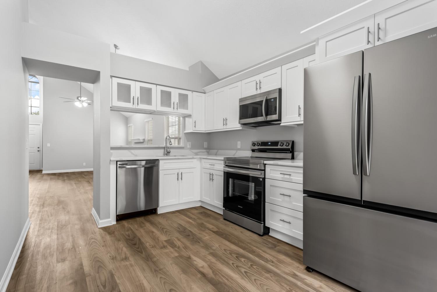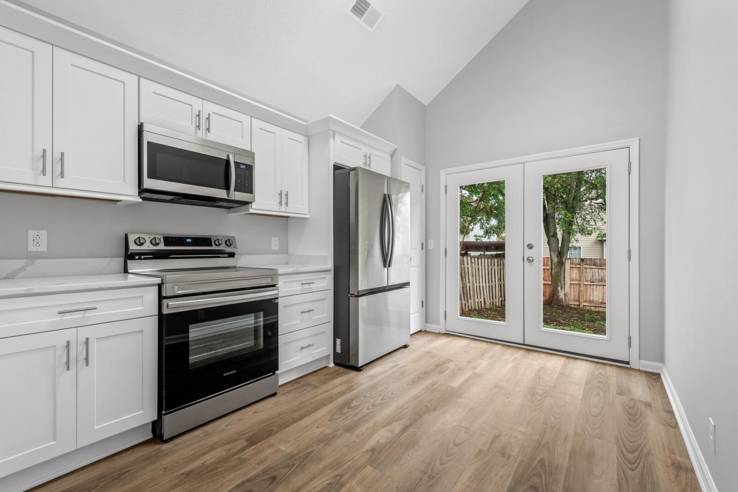 Beautifully renovated 3 bed, 2 bath located in the quiet, no-outlet Wembley Downs subdivision of Hermitage. Mostly one-level living with 2nd floor 3rd bedroom. All new kitchen and vanities with custom Shaker-style cabinetry, stunning quartz countertops and stainless-steel appliances. New washer and dryer. New flooring, lighting, fresh paint and modern finishes throughout. Includes a primary suite with a large walk-in closet. Enjoy soaring vaulted ceilings, an open floor plan and inviting fireplace. New French doors open to a spacious patio and fenced-in back yard. Just 20 minutes from downtown Nashville and less than 10 minutes to Old Hickory and Percy Priest Lakes. Convenient access to interstate, restaurants, shopping, airport, & commuter train. Short distance to Publix, Kroger, Walmart, Aldi's, Lowe's and Home Depot. Move-in ready! Come check it out!
