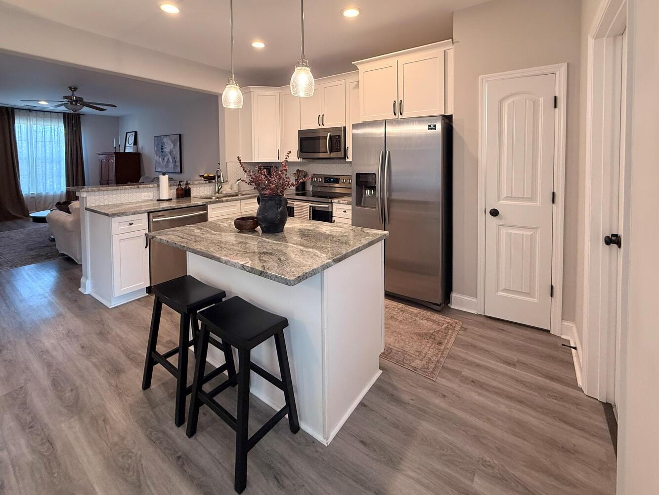 Welcome to 732-G Old Hickory Blvd in the heart of vibrant West Nashville! Built in 2019, this beautifully maintained townhome blends modern design with practical comfort and is truly move-in ready. From the moment you step inside, you’ll notice the thoughtful upgrades, starting with durable vinyl plank flooring that flows seamlessly across both levels down to rounded corner bead walls. The first floor offers a true open-concept design, perfect for entertaining and everyday living. The kitchen is the centerpiece, featuring a center island with an elevated snack counter, ideal for casual dining or gathering with friends. Quartz countertops shine against the white box-style cabinetry, enhanced with custom millwork and accented by rubbed oil hardware for a timeless touch. A decorative tile backsplash and a full suite of stainless-steel appliances complete this chef-friendly space. Just off the kitchen, you’ll find a dedicated laundry room with extra storage—a rare and convenient feature in this style of home. Patio doors lead to your very own private fenced yard, offering plenty of room for grilling, outdoor dining, or a safe space for pets to play. Upstairs, the home provides an incredibly flexible layout with dual primary suites. Both bedroom includes ample closet space and en-suite baths (one with separate tub and shower), making it ideal for roommates, first-time buyers, families needing a large nursery, or anyone seeking a spacious home office. This smart design ensures comfort and privacy no matter how you choose to live. Additional perks include two assigned parking spaces located directly at your front door, with plenty of guest parking for visitors. The community itself is well-kept and welcoming, offering a quiet retreat while still being close to everything Nashville (11 miles to downtown) has to offer. Enjoy quick access to shopping, restaurants, and major commuter routes, with the best of West Nashville right outside your doorstep.