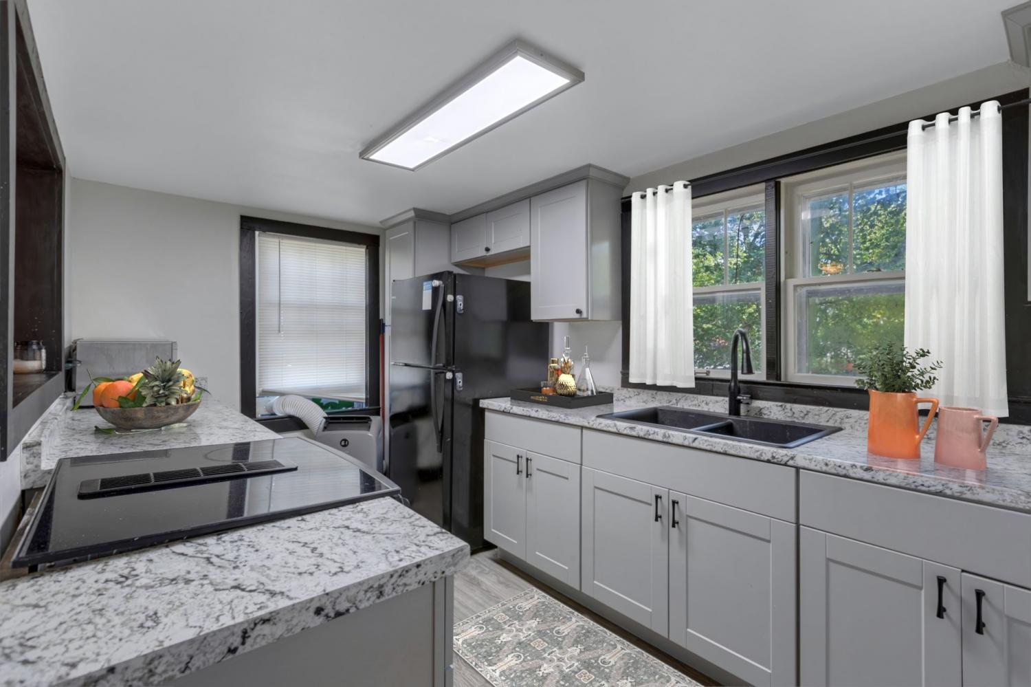 Investor’s Dream with Expansion Potential! Sitting on an extra-large lot with possibility for rare dual street access, this property offers incredible potential for investors or homeowners looking to expand—ideal for building a second home or income-producing property. The existing home has been thoughtfully updated with new flooring upstairs, new railing on the stairs, fresh kitchen cabinets and countertops, a double sink, and all appliances included. The bathroom has been refreshed with tile flooring and a brand-new vanity. Enjoy added charm and curb appeal with a large front porch plus a convenient carport for covered parking. Recent major upgrades include a roof replacement in 2022 with Owen Corning Architectural 3 Dimensional Asphalt Shingles, giving peace of mind for years to come. The outdoor living spaces are just as impressive—a deck perfect for entertaining, a fully fenced and extremely private backyard, and a storage shed that remains with the property. Whether you’re looking to move right in, generate rental income, or take advantage of the oversized lot to build, this home offers endless possibilities.