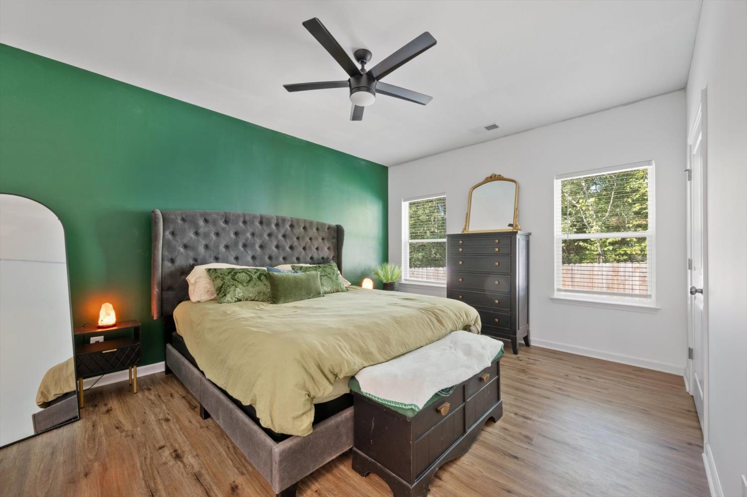 Nestled on a generous ½-acre lot, only 1 1/2 year old meticulous home sits at the end of a tranquil cul-de-sac and offers a private, tree-lined, fully fenced backyard—your personal retreat from the everyday. Inside, the open-concept layout invites seamless living on one level, making everyday life easy and elegantly functional. A covered back patio ensures you can enjoy alfresco moments rain or shine—perfect for morning coffees or evening stargazing. Thoughtful spaces throughout—like ample closet space, double vanities in the primary bath, an oversized primary suite, and a walk-in closet—deliver everyday luxury and convenience. This home is truly move-in ready, meticulously cared for and thoughtfully detailed design. Don’t let this exceptional opportunity pass you by—schedule your visit today to experience it firsthand! Buyer's and Buyer's agent to verify all pertinent information. Whole home freshly painted. Washer, dryer and refrigerator and ring doorbell negotiable. 10-year transferable Builder's Warranty in place for structural defects. No showings until Saturday, September 13th. Seller works from home so showings are M-F from 1 pm - 8 pm and all day Saturdays and Sundays.